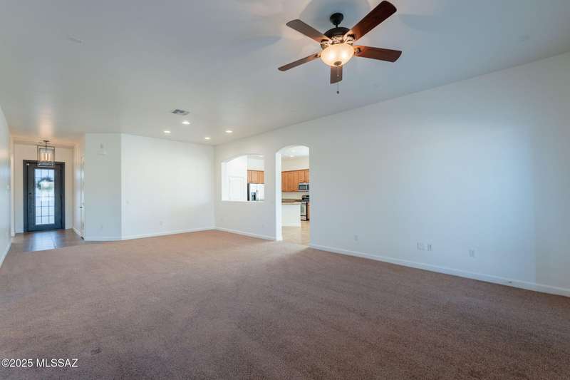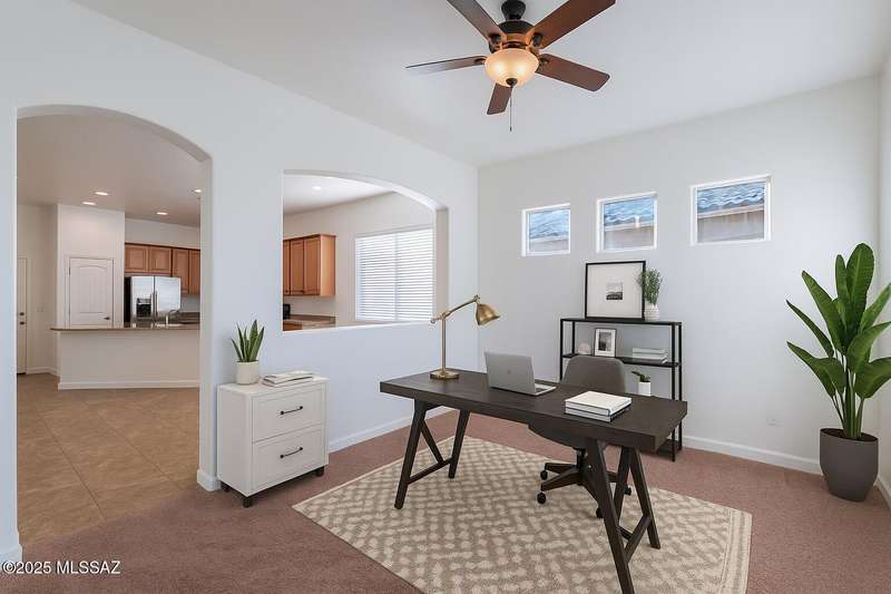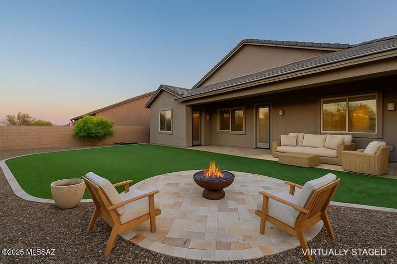 MTN VIEWS! Open floor plan 3BR with mtn views, a dedicated office, bonus living space, and 3-car garage. On a super lot backing eastward to natural open space, this property offers privacy, mountain views, and fantastic outdoor living. Open-concept layout with 10' ceilings and a spacious great room, flowing effortlessly to the eat-in kitchen, with island, granite counters, stainless appliances, and plenty of room for seating. A flexible bonus room provides options for a playroom, media area, or second office. Outside, the east-facing backyard is perfect for shade in the summer evenings and all seasons with a covered travertine patio, built-in grill, and cozy fire bowl where you can watch the mountains turn their sunset colors. Recent HVAC and water heater (2023). H2O softener