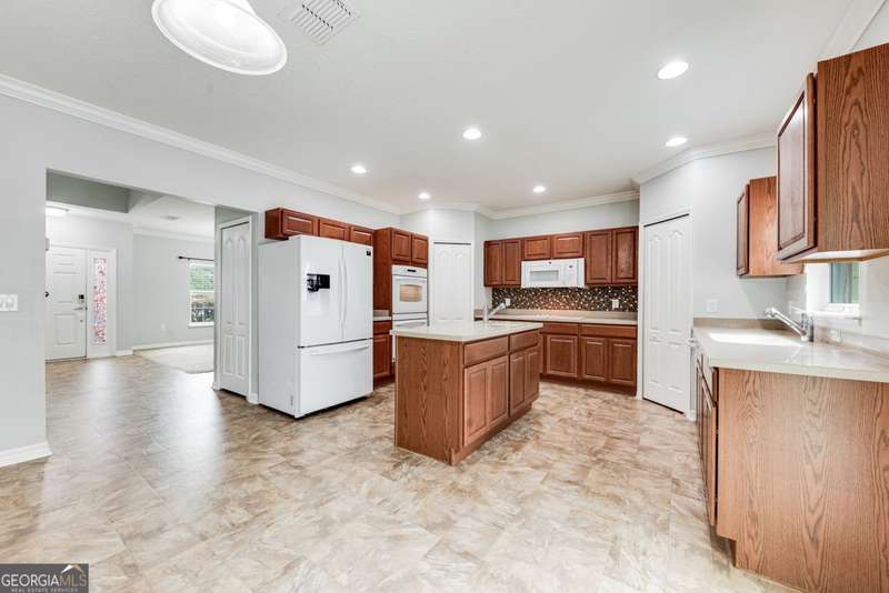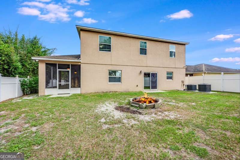 This well-designed two-story home offers 5 bedrooms, 4 full bathrooms, and apx 3,010 square feet of living space. Built with sturdy cinder block construction and finished with a low-maintenance stucco exterior, the home combines function and flexibility across two levels. Upstairs Features: The primary bedroom includes a vaulted ceiling, a large walk-in closet, and a private bathroom with a garden soaking tub, separate shower with built-in bench, water closet, and double vanities. A second upstairs bedroom has its own private bathroom. Two additional bedrooms share a hall bath with a tub/shower combination and double sinks. A loft or den provides additional flexible space. The laundry room is also located upstairs and includes a washer and dryer. Main Floor Features: A two-story foyer opens to a formal dining room or flex space with crown molding. The spacious family room connects to the dining area and kitchen, with access to a screened back porch that includes two ceiling fans. The kitchen offers a center island with a prep sink, a main sink under the window overlooking the fenced backyard, GE Profile appliances including a 5-burner smooth-top cooktop, microwave hood, and double wall ovens. Two pantries and generous cabinet storage provide ample kitchen organization. The downstairs bedroom includes a walk-in closet and private access to a full bathroom, ideal for guests or multigenerational living. Additional Details: Three-car garage with automatic doors. Crown molding in the dining room, kitchen, family room, and downstairs bedroom. Sliding glass doors from the dining area lead to the fenced backyard. Location: Located near I-95 at Exit 1, this home offers convenient access to: Jacksonville International Airport - approximately 30 minutes ,Naval Submarine Base Kings Bay - approximately 14 minutes Fernandina Beach (Main Beach) - approximately 30 minutes, Local shopping and dining, including Chick-fil-A - within 10 minutes
