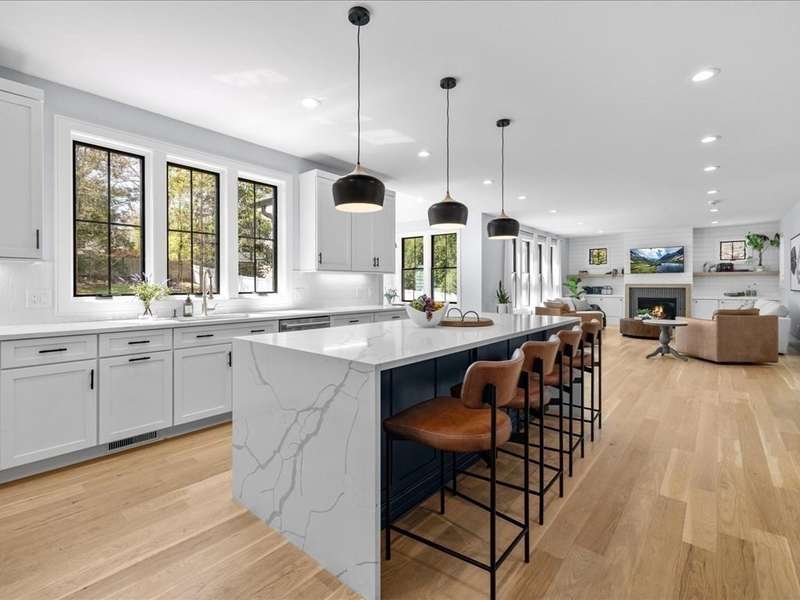 This stunning 2022 Colonial on over acre near Needham Center is better than new construction. A charming farmer s porch welcomes you into a bright two-story foyer. Off the entry, a spacious dining room & a flexible office/living room with French doors offer elegant versatility. The heart of the home features a chef s kitchen with a waterfall island for six, a sunlit eat-in area, & an expansive family room with a sleek wall-mounted fireplace - all overlooking a large patio & level backyard. A generous mudroom with walk-in closet & oversized garage provides everyday convenience. Upstairs, the luxurious primary suite includes a sitting area or office, two walk-in closets, & a spa-like bath. 3 additional bedrooms, stylish baths, & a large laundry room complete the second floor. The 3rd level offers a bedroom, full bath, & bonus space. The finished lower level features a sixth bedroom, full bath, walk-in closet, huge game room, gym space, & ample storage. Close to town, & major routes.