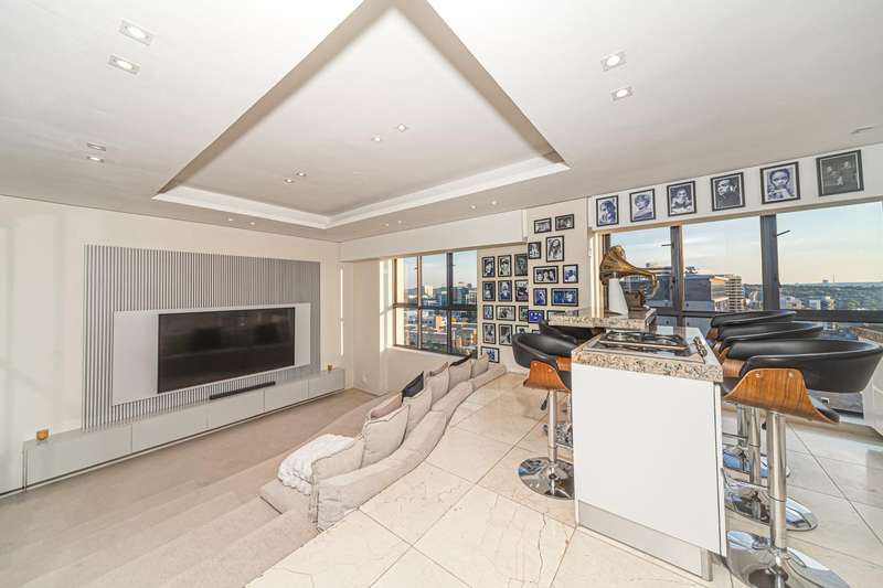 Redefining Distinction: Skyline Living in the Heart of Sandton CBD Experience true lifestyle living in this prestigious four-level penthouse, set within a globally inspired architectural building, in the heart of Sandton?ÇÖs CBD. The Penthouse offers a distinct Central Park ambiance and outlook in the heart of Sandton. Each level is accessed via a private internal lift with secure biometric entry. The Penthouse further features its own exclusive lift to all levels, or access via a striking sculptural spiral staircase. Each room is framed by uninterrupted panoramic views.Expansive floor-to-ceiling windows and sliding doors, complemented by double- and triple-volume spaces, create an atmosphere of openness and light. Luxurious finishes and gentle tones define every corner. First Level: Three gracious en-suite bedrooms, ideal for guests or multi-generational living. One suite can easily be presented as a study, opening onto a private patio overlooking a sea of treetops. Second Level: A bespoke cinema and bar, featuring a sunken lounge with stove-top counter, for intimate entertaining - flowing onto a patio with a plunge pool and poolside dining area. Third Level: The statement level for entertainment offers expansive open-plan living, lounge, dining, and kitchen spaces with granite countertops, luxury finishes, ample storage, and a separate scullery/laundry. Outdoor dining and lounge areas capture breathtaking views across Sandton to the Magaliesberg mountains. Top Level: The grand master suite is a sanctuary of space and sophistication, featuring a private lounge, walk-in dressing room, and a luxurious open-plan bathroom. Finishes and fixtures, of the highest quality, evoking the elegance of a Relais & Ch?óteaux hotel. Residents enjoy unrivalled amenities including a private concierge, spa and wellness centre, gym, indoor and outdoor pools, fine dining, meeting rooms, and 24-hour guarded security. This is more than a home.It?ÇÖs a lifestyle defined by refinement, and exclusivity.