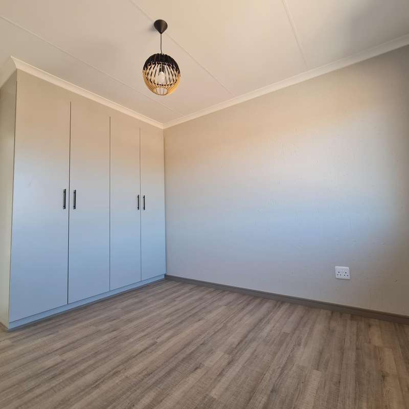 Welcome to this stunning house located in a secure complex, offering a comfortable and contemporary living experience. This spacious home features three bedrooms, providing ample space for a growing family or for guests to stay overnight. With two well-appointed bathrooms, everyone can enjoy their own private space and convenience. The house also boasts two garages, ensuring secure parking for your vehicles and additional storage space. Safety and peace of mind are paramount in this complex, with 24-hour security personnel and an access gate, allowing you to relax and enjoy your home without worry. Step onto the balcony, where you can take in the fresh air and admire the scenic surroundings. The built-in cupboards in the bedrooms provide plenty of storage, keeping your living spaces organized and clutter-free. The dining area is perfect for entertaining guests or enjoying meals with family and friends. Electric fencing enhances the security measures of the complex, creating an extra layer of protection. The en-suite bathroom offers a private oasis for the master bedroom, providing convenience and comfort. As you enter the house, you are greeted by an elegant entrance hall that sets the tone for the rest of the property. The house comes with a beautiful garden, allowing you to indulge your green thumb or simply relax amidst nature. The well-designed kitchen is a chef's dream, equipped with modern appliances and ample counter space to prepare delicious meals. The spacious lounge offers a cozy atmosphere for relaxation and quality time with loved ones. Step outside onto the patio and enjoy outdoor living and dining. The paving adds a touch of sophistication to the exterior and makes maintenance a breeze. For pet lovers, the complex allows pets, so your furry friends can also call this place home. Lastly, a security post adds an extra layer of vigilance, ensuring the safety and well-being of all residents in the complex. With its array of features and secure environment, this house in the complex offers a delightful blend of comfort, convenience, and tranquility, making it an ideal place to call home.