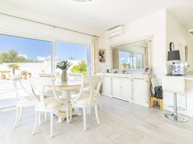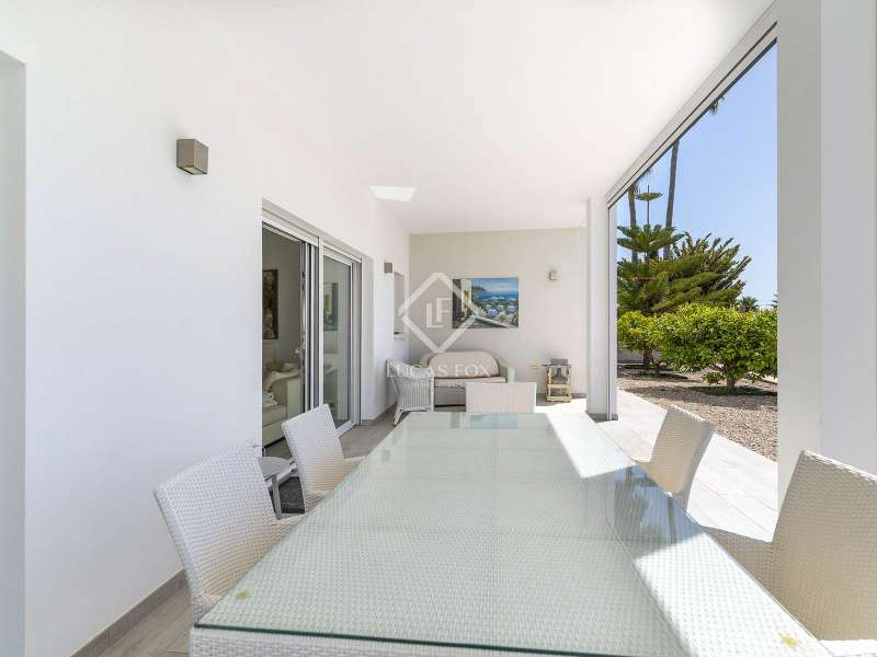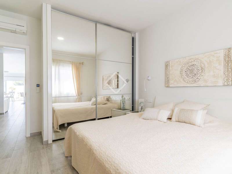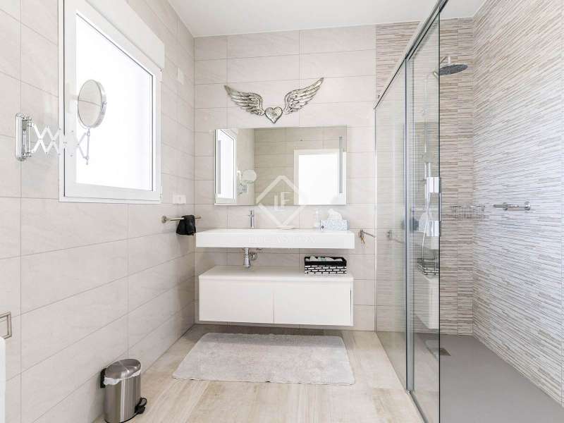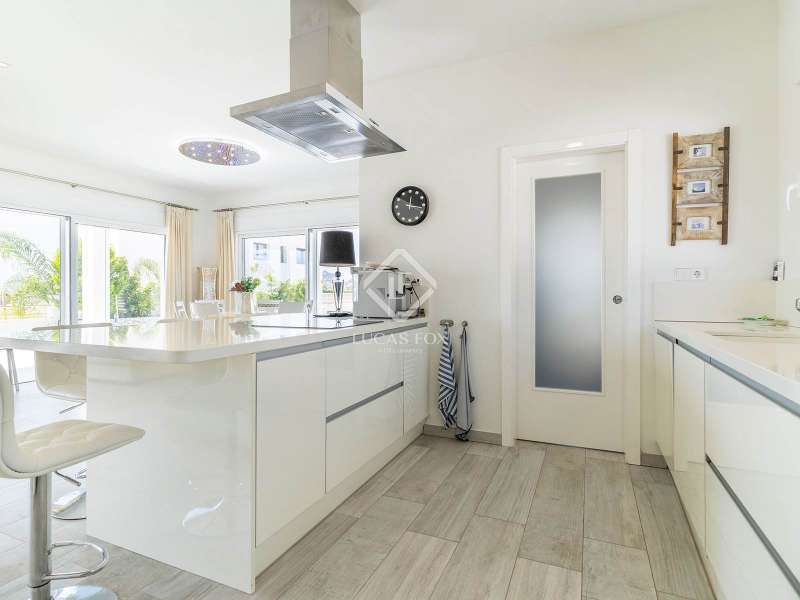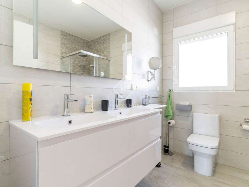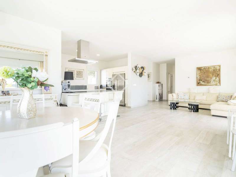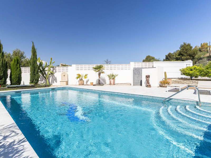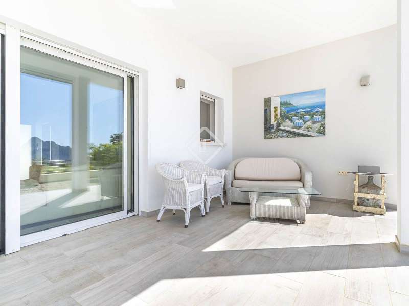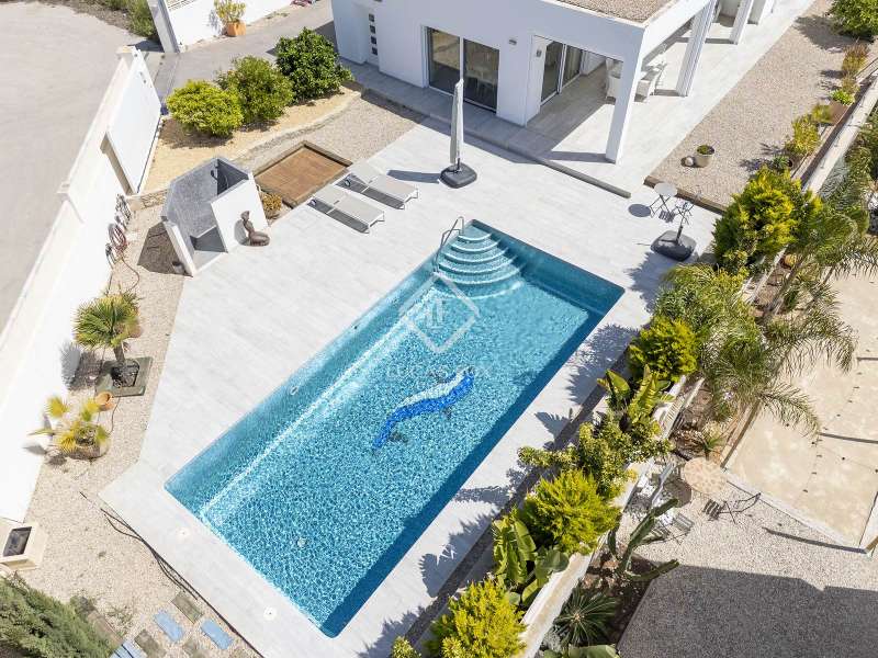 This modern villa, built with high-quality materials in 2016, is designed on a single floor with no steps, combining elegance and functionality in a welcoming environment. Upon entering, a bright lobby leads to the spacious and sunny living and dining room room, equipped with sliding glass doors that access onto the exterior terrace. This relaxation area features automatic fabric blinds that provide shade in the warmer months, making this space an ideal place to enjoy the outdoors in total comfort. The open-concept kitchen is fully equipped with high-end Balay appliances . A discreetly attached pantry offers storage space and a utility room housing the washer and dryer. The bedroom area is carefully laid out to ensure privacy and comfort. The property features three bedrooms, including the main bedroom, which offers stunning views of the sea and the iconic Peñón de Ifach, an en suite bathroom , abundant natural light , and a relaxing atmosphere. The other two double bedrooms are spacious and bright and share an elegant full bathroom , ideal for family or guests. All bedrooms feature built-in wardrobes, electric shutters , and individual air conditioning with split systems, providing personalized comfort year-round. The underfloor heating system throughout the house ensures a comfortable temperature even in winter, and the hot/cold air conditioning allows you to adapt to any season. Exterior, the villa features a 4.5x10m heated pool , surrounded by a low-maintenance garden with an automatic irrigation system, trees, and plants that add freshness and color. It also features an exterior shower and a large parking area with capacity for at least four vehicles. As an added bonus, it includes a 60 m² basement, accessible from the exterior, perfect as a storage room, wine cellar or leisure area as needed. Furthermore, this property has an A energy certificate, which guarantees a highly efficient property with low energy consumption, greater thermal comfort, and a more sustainable long-term investment.