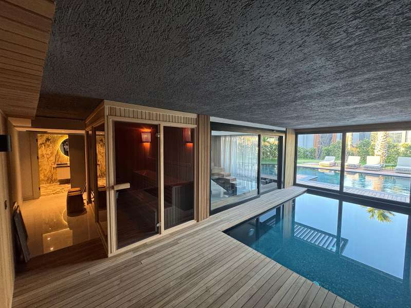 The project features 11.500 m² total plots with 9 villas and apartments. The villas come with 3, 4, and 5-bedroom options. Each of them has a private swimming pool. Some of the villas have an additional indoor swimming pool.