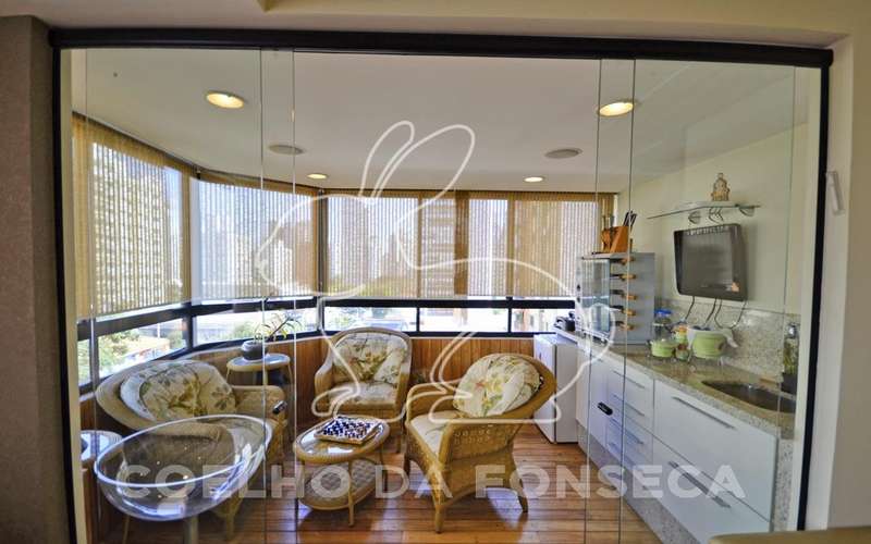 Apartamento com sala de jantar e tv, lavabo, varanda gourmet fechada, dormitórios com armários embutidos, cozinha com despensa, área de serviço com wc. Todos os ambientes tem ar-condicionado e sistema de áudio nos tetos. Piso porcelanato e madeira. Lazer com churrasqueira, piscina, salão de festas e jogos, academia ginastica e sauna. Mezanino.