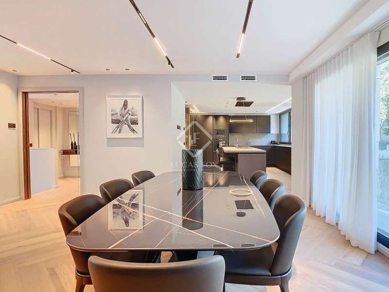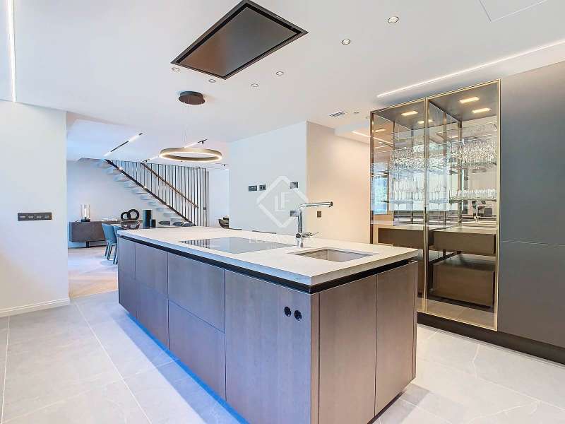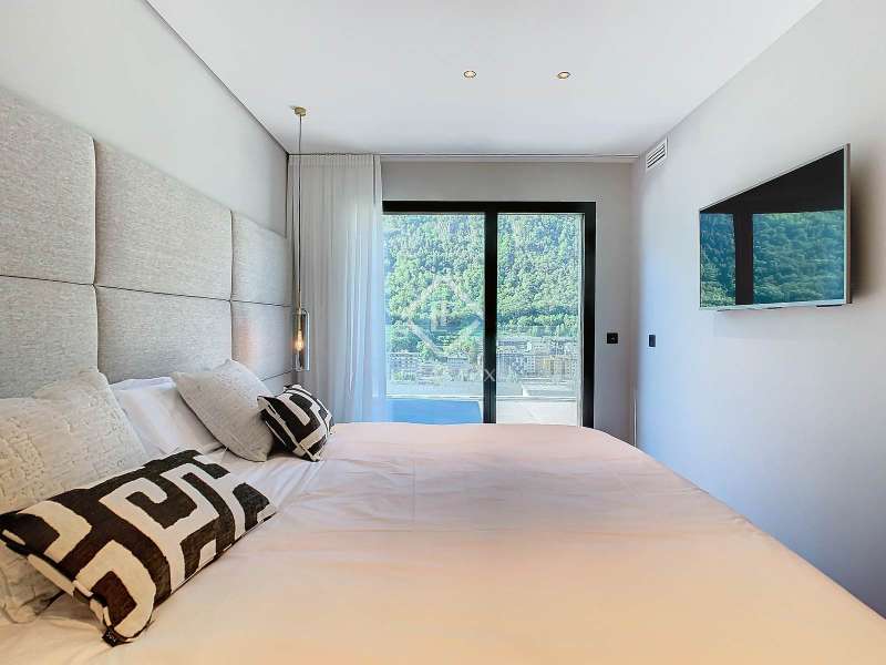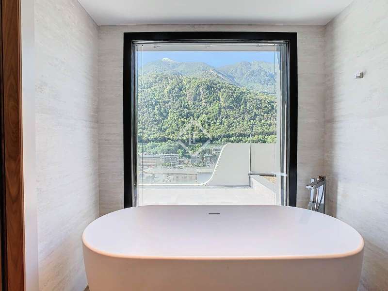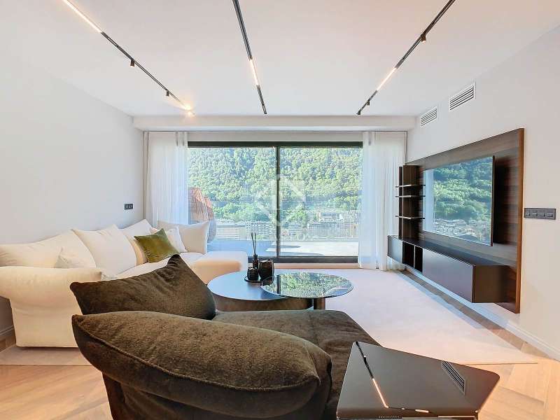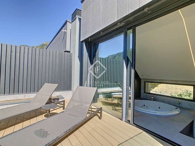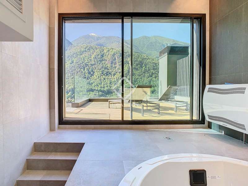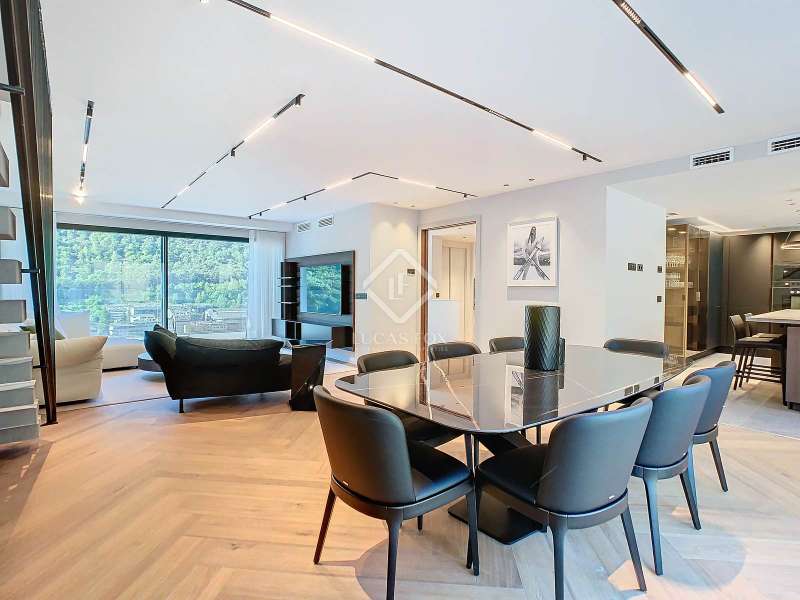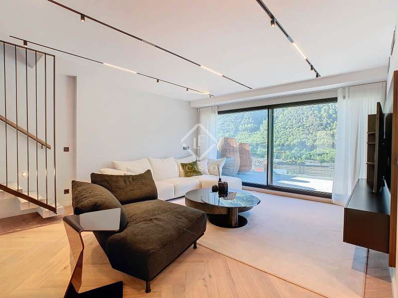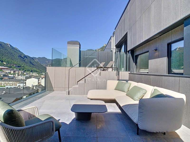 Lucas Fox presents this exclusive luxury property , unique in the area, distinguished by its high-quality finishes and exceptional design. Located on the 8th, 9th, and 10th floors of a newly built building in the centre of Andorra la Vella, it is just a few meters from the main avenue. The property features high-end appliances and premium designer furniture, including televisions, lamps, rugs, and more. With a total area of 544 m², the penthouse is spread over three floors. It also has a lift that connects the property directly to Andorra's main shopping avenue. The property is access via the ninth floor of the building, which is the middle floor of the triplex. Upon entering, we find a spacious entrance hall with a staircase connecting to the upper and lower floors. On this same level, there is a spacious 45 m² living-dining room with access to two large terraces, one at each end of the room. The floor is completed by a fabulous, fully equipped open kitchen with a central island and a guest toilet. The lower floor houses the property 's night area , with five double bedrooms, four of them with en-private bathroom bathrooms. The main bedroom also includes a dressing room and private access to a spectacular 38 m² terrace. This floor also includes an additional bathroom and a utility wardrobe . The top floor offers a shower area, a sauna with views, a spectacular jacuzzi, and access to a beautiful two-level private terrace with a solarium, covering an area of 74 m². The property is completed with a 68 m² enclosed garage, ideal for optimizing space, which is connected to the interior of the property via a lift . This property stands out for its brightness, comfort, and exclusivity, and is ready to be enjoyed by the most discerning clients. For more information, please do not hesitate to contact us.