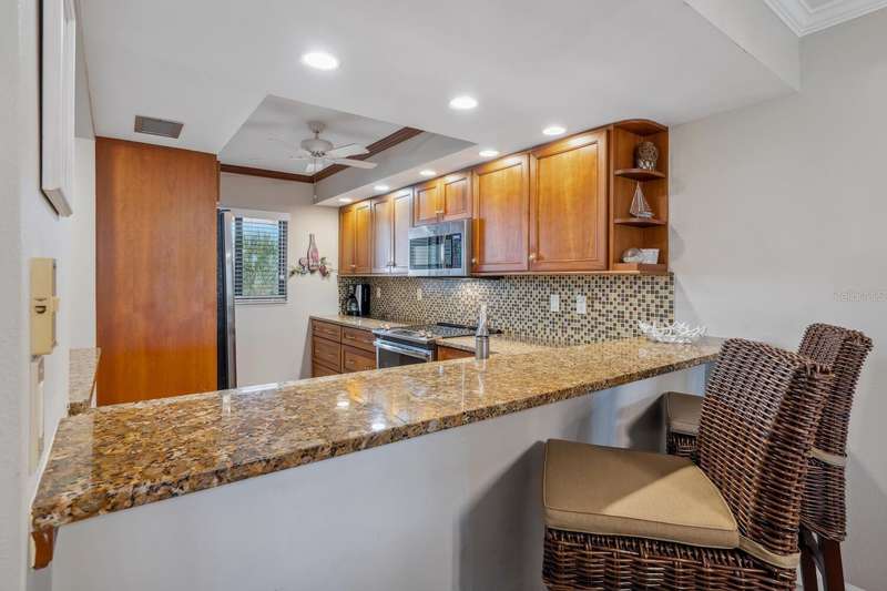 Imagine the perfect Siesta Key getaway or income producing property - this is your opportunity to own at the exclusive Siesta Dunes Condominium. This turnkey furnished, updated two bedroom, two bath unit boasts an open floor plan and lovely views of the Gulf of Mexico. The kitchen is complete with high-end cabinetry, granite countertops and stainless-steel appliances. Relax in the large owner's suite, complete with a renovated bath, a large walk-in closet and access to the screened terrace. The second bedroom is generous in size and is the perfect place to host visiting guests. Set back from the walkway, this unit offers maximum privacy and easy access to the elevator. When you are not enjoying the beach chairs and lounges on the famous white sand beaches, luxuriate in the Gulf front circular pool that is the centerpiece of the property. This complex also is host to the beach side and garden BBQ grills, the beach deck and the pavilion, and the tennis/pickleball court. Utilizing the on-site property management company makes renting the property easy and carefree. Excellent rental history and income projections are available upon request. Don't miss this opportunity to own a move-in ready condominium in the heart of Siesta Key, centrally located near the shops and restaurants of Siesta Key Village.