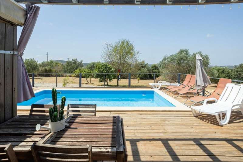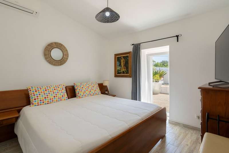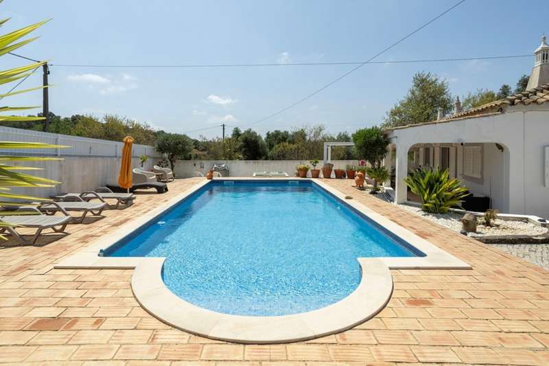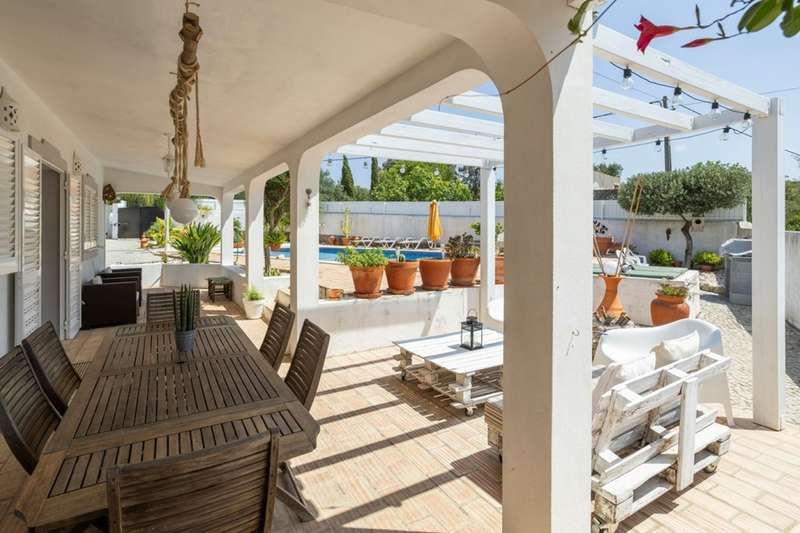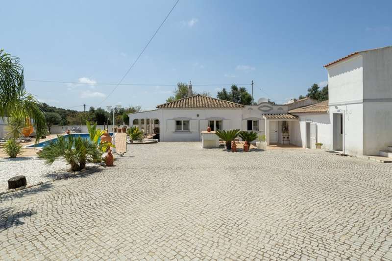 Traditional property with two independent villas, private pools and large wooded plot in Santa Bárbara de Nexe, Algarve Located in a quiet and privileged area of the Algarve, this unique property offers two villas, both with private pools and set in an extensive plot of land with several fruit trees. The main villa, single storey and recently renovated, combines the charm of traditional architecture with the comfort and functionality of modern living. Comprising four bedrooms, including an elegant suite, it has a spacious open-plan area that integrates the living room, dining room and kitchen. A covered terrace , cozy and well-sized, invites you to spend moments of leisure and socializing with family and friends, in total harmony with the surrounding nature. The independent annex, with two bedrooms, has contemporary finishes and is equipped with air conditioning, making it an excellent solution for hosting guests in comfort or for tourism. The property also includes a parking space, ensuring greater convenience. This is the perfect refuge for those looking for tranquillity and privacy, without giving up the proximity to the beaches, Faro International Airport and the main urban amenities of the cities of Faro and Loulé. With a high potential for profitability, this property is an excellent opportunity for permanent residence, vacation home or investment in the Algarve's tourist market. CHARACTERISTICS: Plot Area: 5 960 m2 | 64 153 sq ft Useful area: 157 m2 | 1 695 sq ft Deployment Area: 175 m2 | 1 883 sq ft Bedrooms: 6 Bathrooms: 3 Garage: 1 Energy efficiency: C FEATURES: 2 villas Single storey Main house 4 bedrooms Annex 2 bedrooms Air conditioning Traditional
