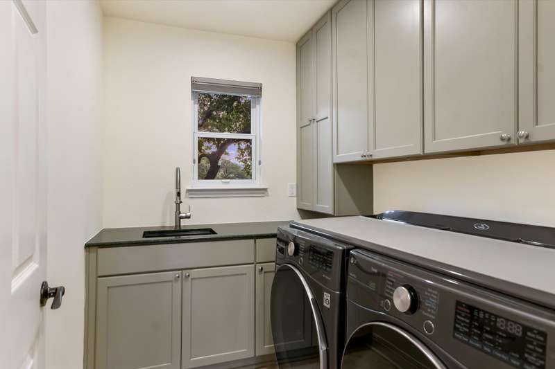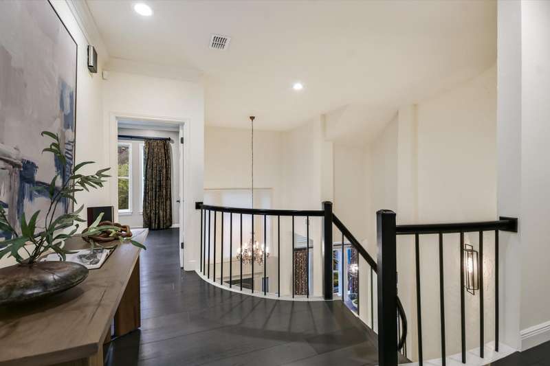 A dramatic curved staircase rises to the upper level, where two bedrooms share a Jack-and-Jill bath. The striking primary suite has been doubled from its original proportions, adding a large, windowed sitting area overlooking the valley. An equally large deck is accessible off the primary bedroom and offers an incredible view of the UT tower and a glimpse of downtown. The updated bath features a custom-tile steam shower, soaking tub & walk-in closet.