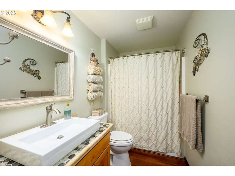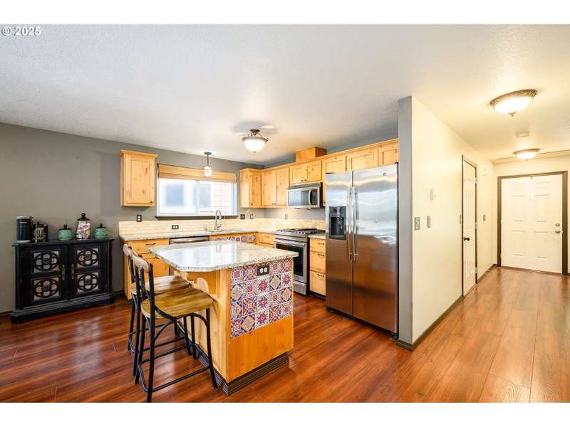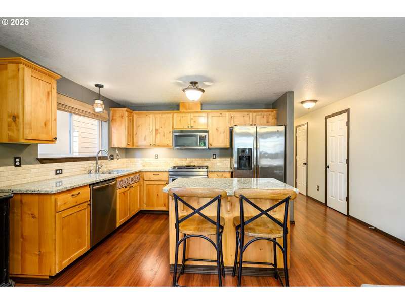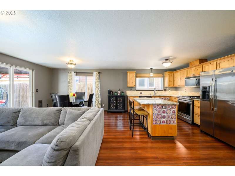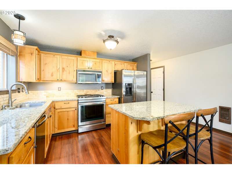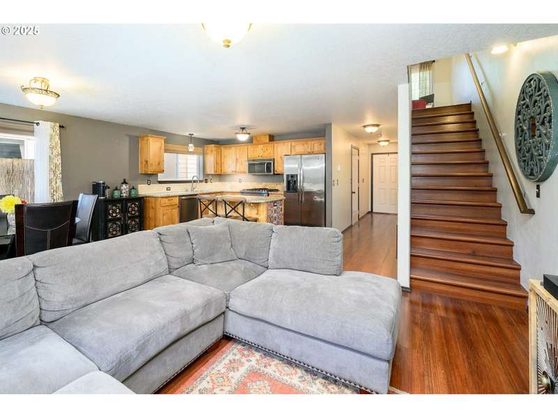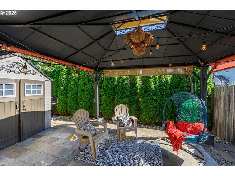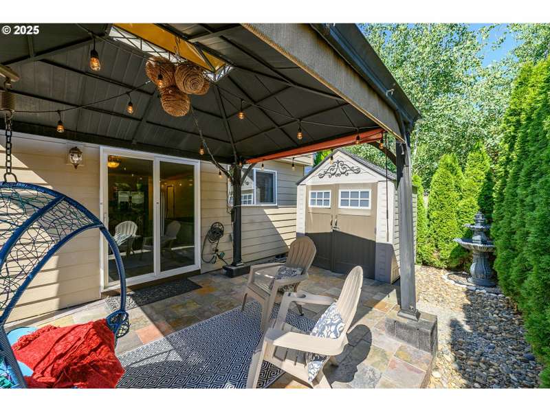 This home is located on a quaint tree-line street with walking trails and close to parks and centrally located in Newberg. Newer luxury laminate flooring throughout the home and an open floor concept on the main. The living room, dining and kitchen flow together, ideal for family fun and gatherings. The guest half bath is located on the main. The dining area has a slider that leads to the backyard patio and the gazebo. The kitchen has granite counter tops, eating bar island, a Jen-air gas top range, built in microwave and decorative tile. The 3 bedrooms are on the 2nd level, including the primary suite that features an attached bathroom and walk in closet. A convenient laundry closet is near the bedrooms for easy access. A flex space at the top of the stairs could be a workstation or reading nook.