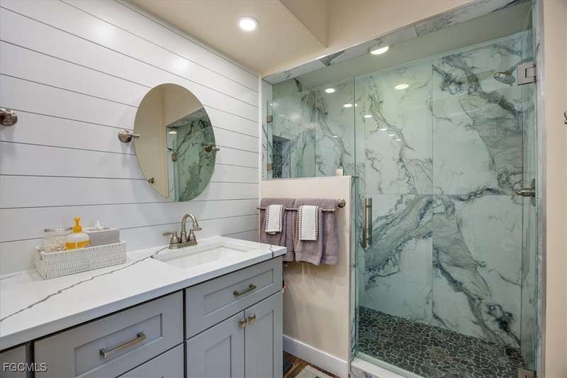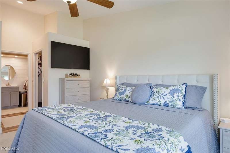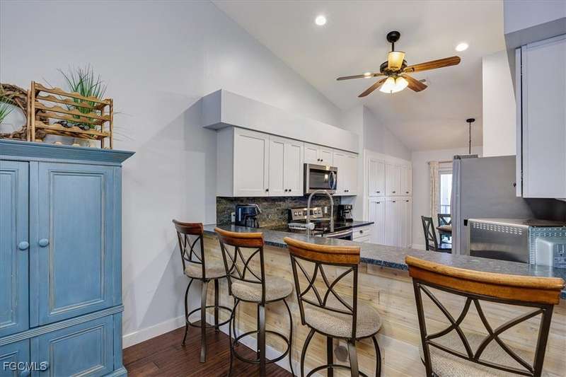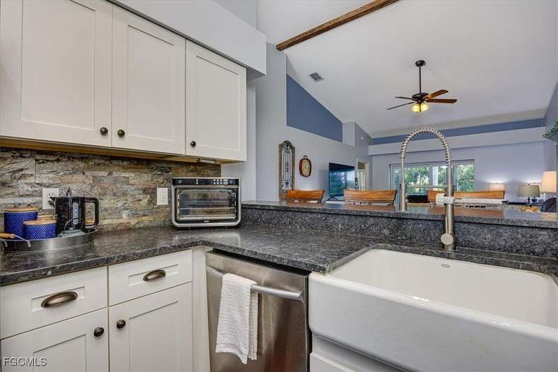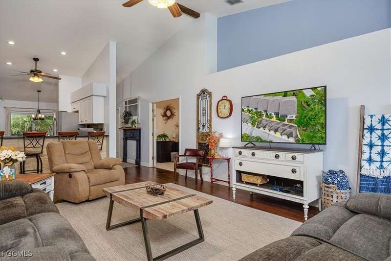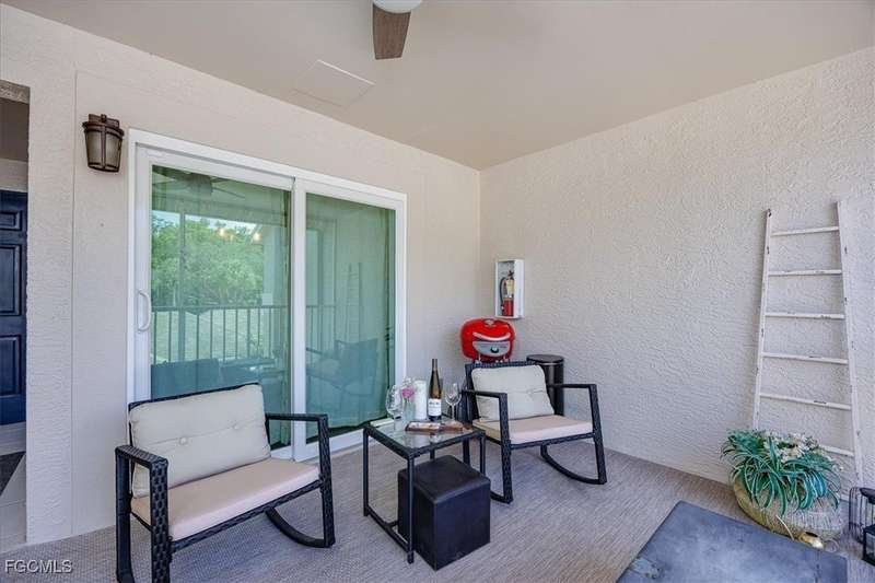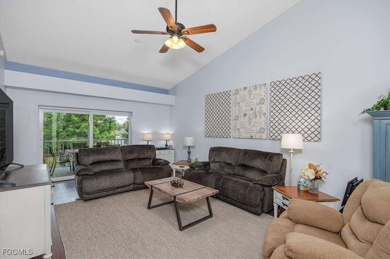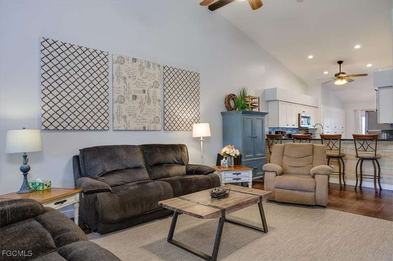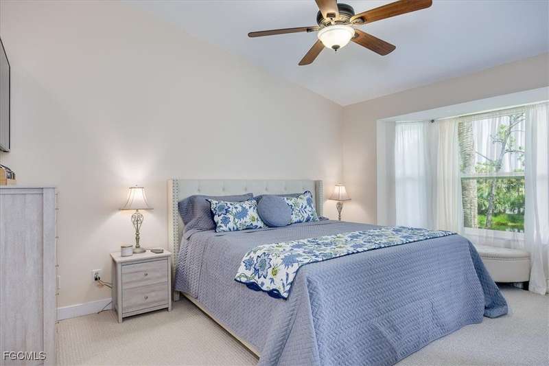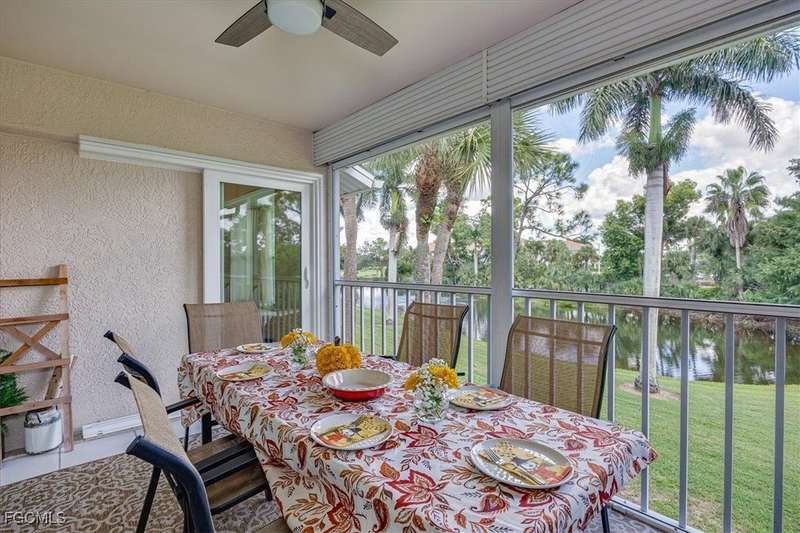 Welcome Home to the best Value in Olde Hickory Golf & Country Club. This updated and well maintained 2 bedroom + DEN (with a closet), 2 bath home is located in the Verandas section of the Olde Hickory community. Step inside to find a bright open floor plan with tasteful upgrades throughout that include new carpeting in the bedrooms and den, newer Bamboo flooring in the main living areas, full main bathroom remodel, guest bathroom remodel, new interior paint throughout, HURRICANE IMPACT WINDOWS AND SLIDERS all in 2025 and new roof in 2021. The recently remodeled Kitchen features white shaker cabinets and a built in cabinet faced pantry, granite counter tops, and stainless steel appliances. The kitchen is open to the living area and screened in lanai, perfect for both relaxing and entertaining. Enjoy coffee on the back lanai overlooking the lake and tranquil views or private front lanai. Olde Hickory is a private, bundled golf community with many available golf t-times even in season. The beautiful recently renovated clubhouse has a large bar and dining area, pickleball, tennis, state of the art work out center and large community pool and many social events. Olde Hickory is centrally located close to I-75, the airport, hospitals, shopping, dining, Jet blue and Hammond Stadiums and the areas best beaches.