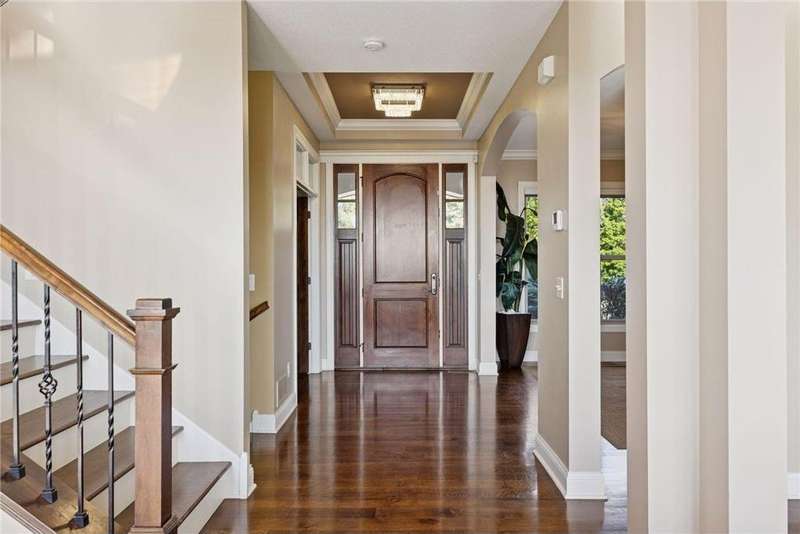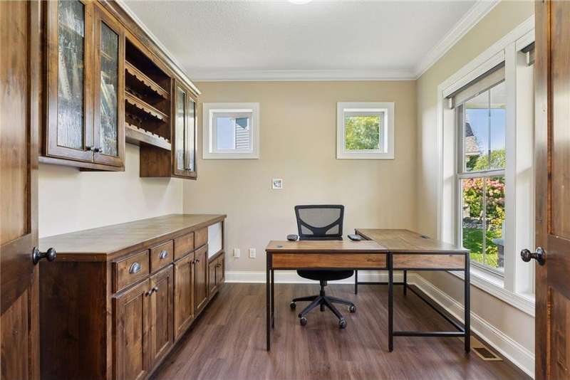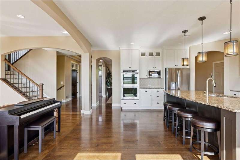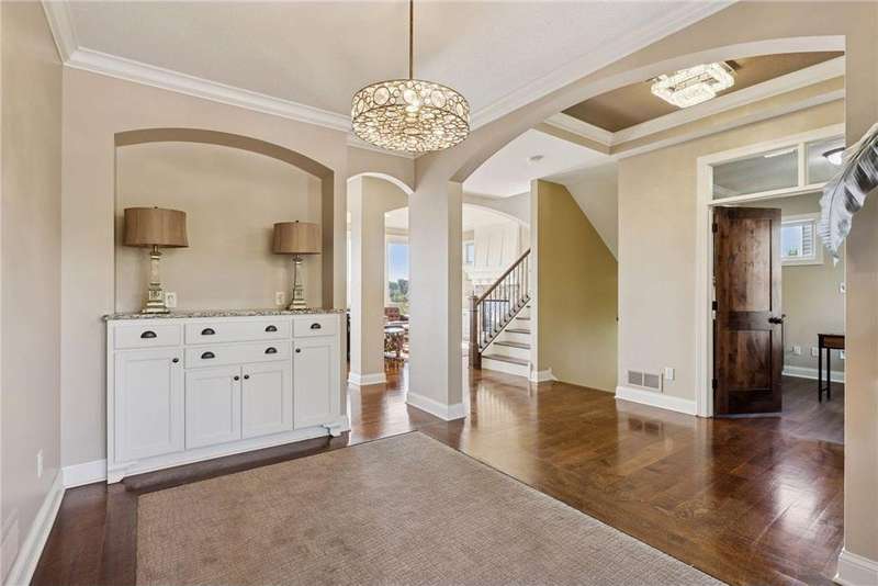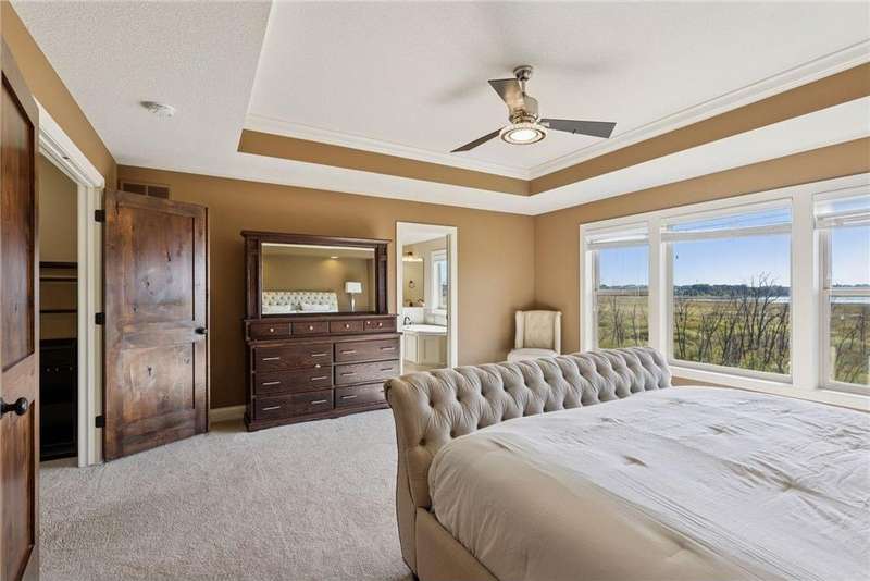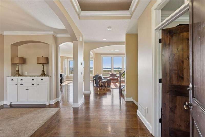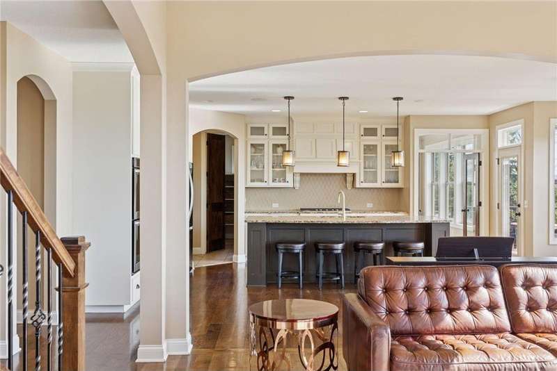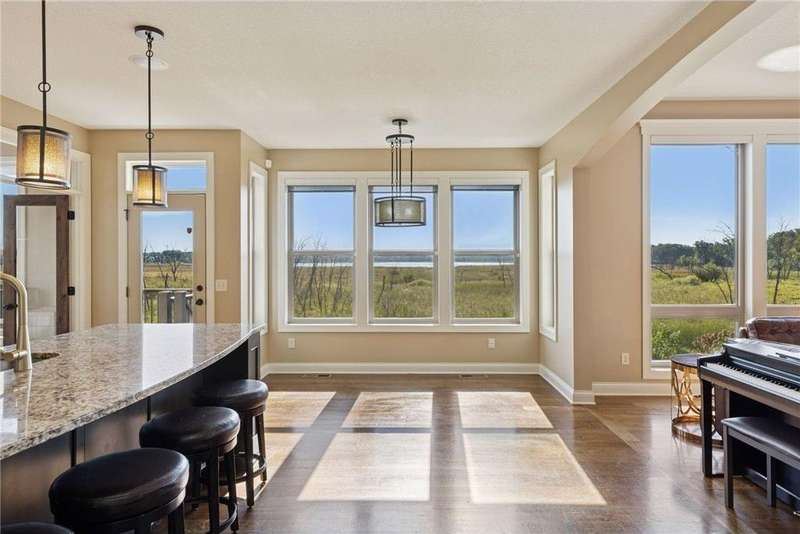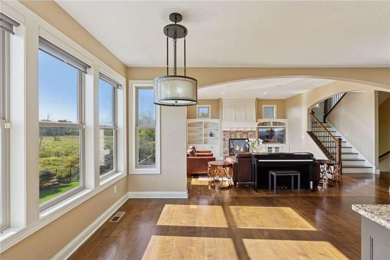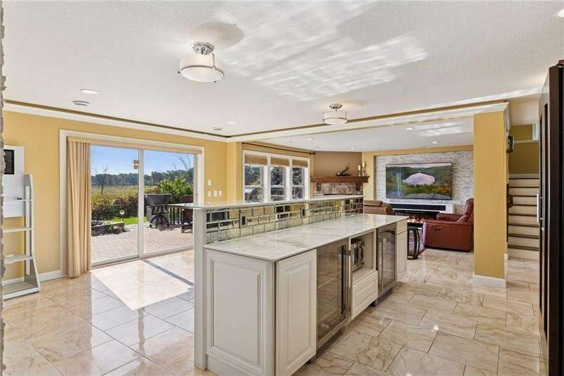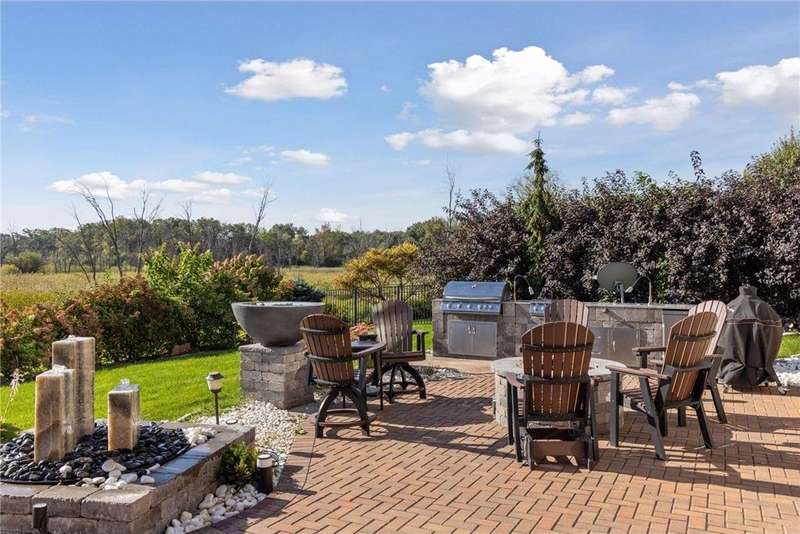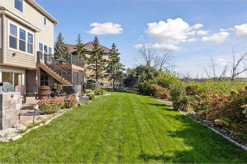 This property offers one of the best lots in the Rapp Farm community—backing directly to 600+ acres of protected nature with trails, grasslands, and two lakes. Perfectly located on a quiet cul-de-sac, the exterior is beautifully finished with Hardieboard siding, stone accents, a concrete driveway, and a paver walkway. The backyard is a true showpiece: expansive paver patios, a built-in fire pit, a bubbling water fountain, a dramatic fire bowl, and a full outdoor kitchen with grill stations, sink, and cold storage. An elevated composite deck, accompanied by beautiful night lighting and a screened-in porch, completes the outdoor retreat. Inside, the main level highlights craftsmanship with hardwood floors, 8-foot doors, arched partition walls, and detailed trim. The family room offers a wall of windows overlooking the preserve along with a gas fireplace and built-ins. The kitchen features granite countertops, a large center island, stainless steel appliances with gas cooktop, and a walk-in pantry. A formal dining room, office with beautiful built-ins, a flex room off the kitchen, a mudroom, and a half bath round out the level. Upstairs, the owner’s suite includes a tray ceiling, majestic views, and a spa-like bath with dual vanities, soaking tub, tiled walk-in shower, heated floors, and a large walk-in closet. Three additional bedrooms and the laundry room complete this level—two bedrooms share a Jack and Jill bath, while the fourth has its own private bath. The lower level is built for entertaining lots of family and friends with a full bar, family room with fireplace, fifth bedroom, full bath, and an exercise room. Sliding glass doors lead directly to the stunning backyard. It's a WOW! Assn neighborhood pool, community room, courts, and playground. Don't miss the virtual tour video.