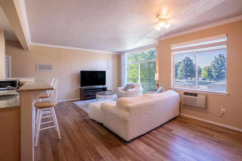 Carefree Condo Living in the Heart of Liberty Lake at Big Trout Villas! Discover easy, low-maintenance living just steps from everything the city has to offer in this beautifully maintained 2-bed, 1-bath condo located on the 2nd floor of the sought-after Big Trout Villas community. Step inside to an inviting open-concept layout with durable LVP flooring, granite countertop, and eat-in bar - perfect for entertaining or cozy nights in. The kitchen features a brand-new refrigerator and dishwasher, while a convenient office nook adds flexibility for remote work or study. Surrounded by 3 golf courses, lush parks, walking trails, restaurants, shopping, and the bustling Liberty Lake Farmer's Market -all just a short stroll away- this location offers unbeatable access to recreation & community. Enjoy exclusive resident amenities including a fitness center, swimming pool & hot tub, all just steps from your front door. HOA fee of $319 covers these amenities as well as water, sewer, & cable. 6mo of HOA paid at closing.