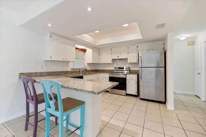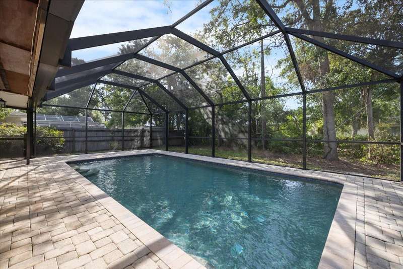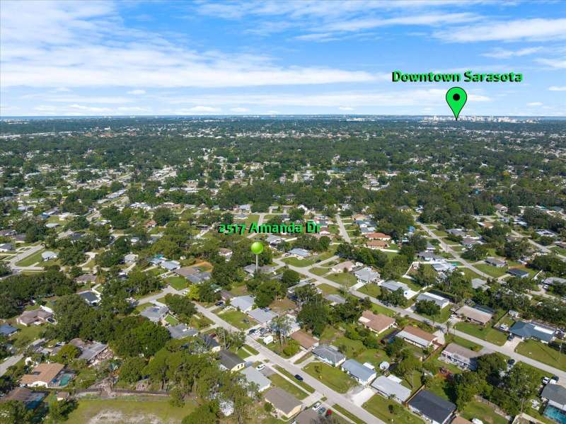 Located in the heart of Sarasota, beyond county flood zones, this pool home sits on an oversized lot with fruit trees and flowering shrubs. Solar panels connected to the grid provide electrical power, and hurricane impact windows offer peace of mind. The split floor plan features 3 bedrooms, 2 full bathrooms, and a laundry room, with 2 flex spaces that can be used as hobby rooms or office space. Solid surface granite countertops, solid wood cabinets, and stainless steel appliances round out the kitchen, which opens into the dining and living areas. A covered lanai connects to the pool, under a screen enclosure. Look for ceramic tile throughout, fresh paint, and a newer HVAC system. This popular Sarasota neighborhood lies a short drive from Siesta Key Beach, Lido Key, and downtown Sarasota--and minutes from I-75 for quick access to the rest of the Suncoast.