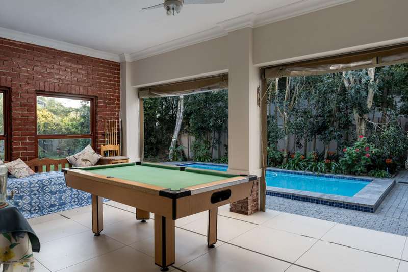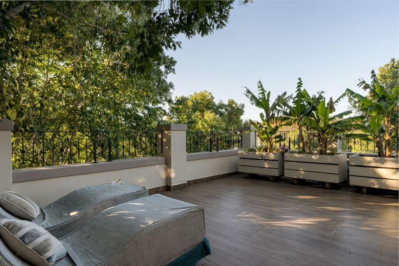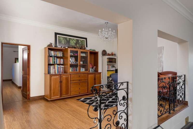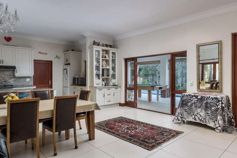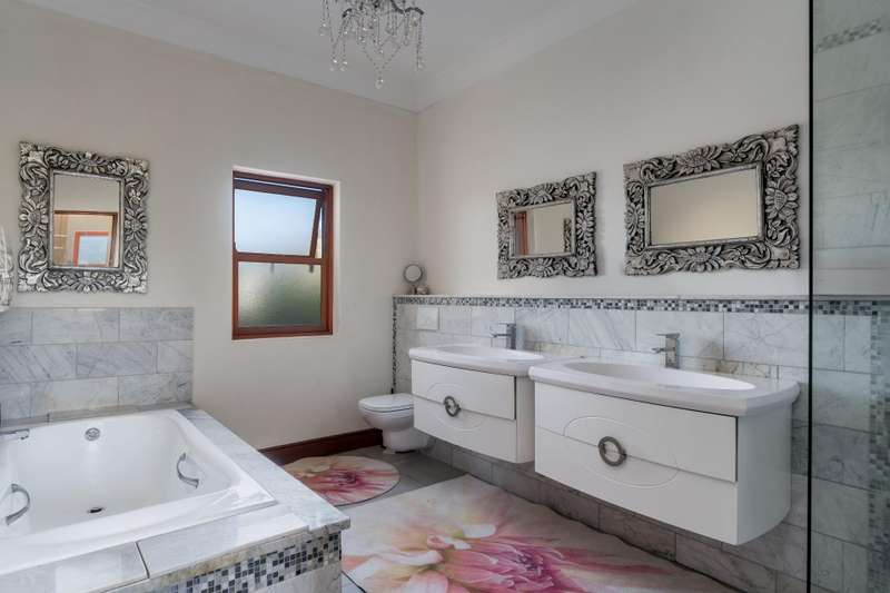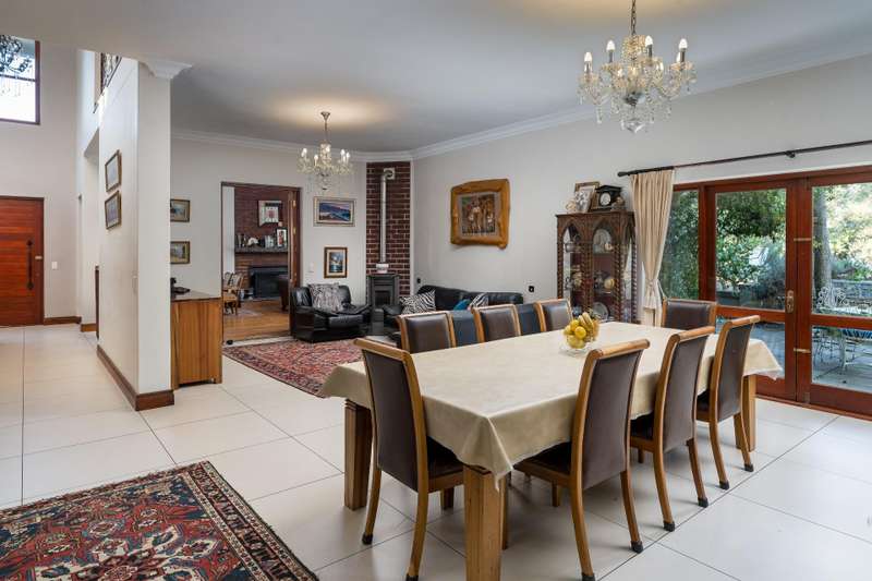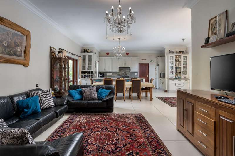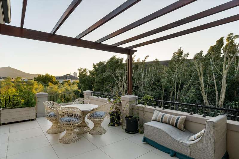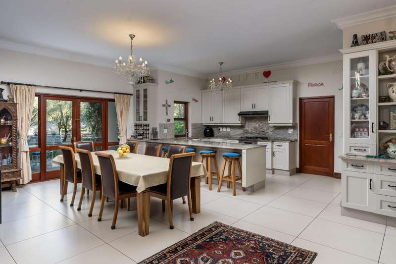 Exclusive Dual Mandate This beautifully private double story family home is set among manicured grounds within the most established part of Val de Vie Estate. This well-designed home offers 4 spacious en-suite bedrooms, as well as a flatlet with its own private lounge, kitchen, entrance and parking. The main home has 2 separate lounge areas, great for year round entertainment. An open elegant floorplan boasts high ceilings and large windows allowing natural light to enter the home. The main living area with fireplace runs parallel to the dining and kitchen area sweeping onto a spacious undercover patio which leads to a lush garden and swimming pool. The upstairs houses 4 en-suite bedrooms with numerous balconies offering lovely mountain views as well as a spacious landing that can be used as an office area or pajama lounge. The house offers 3 garages with the option of converting one of the garages into a second flatlet bedroom. Notable extras include custom made Italian wood doors and window frames, a back up power system, and open greenbelt on 2 sides of the property.