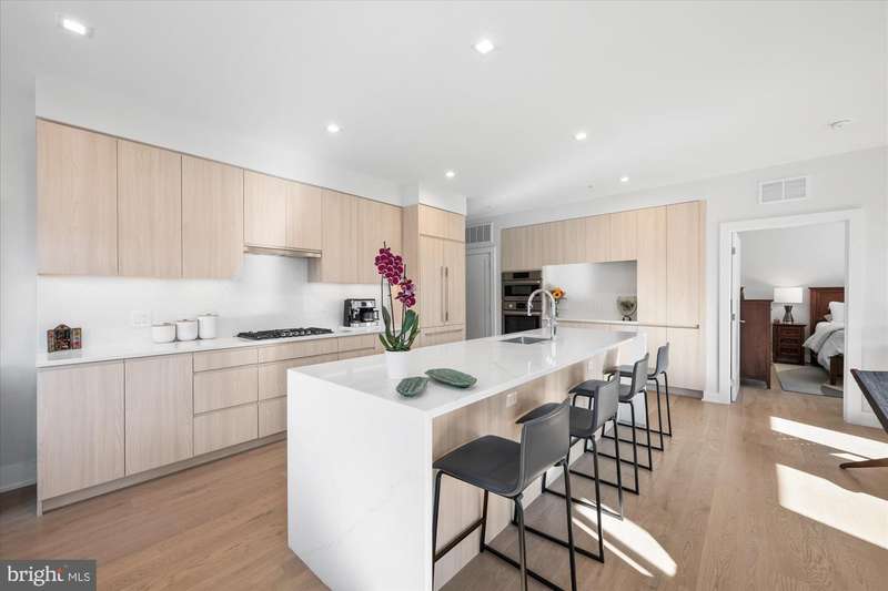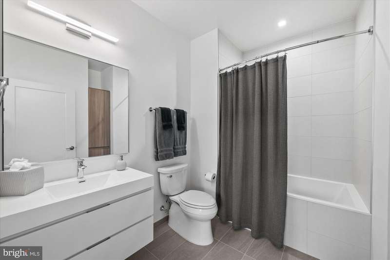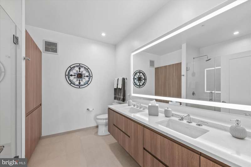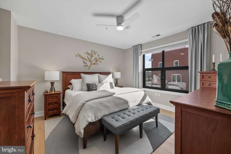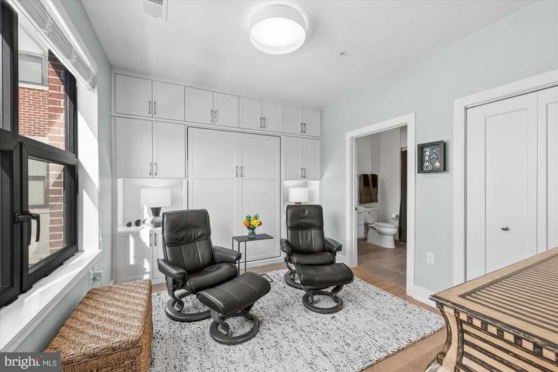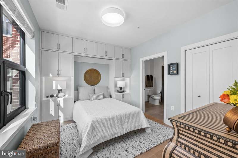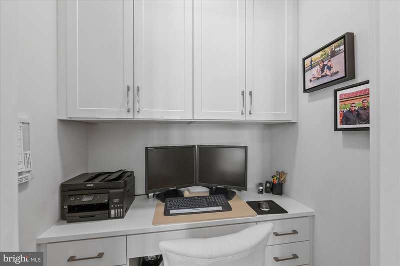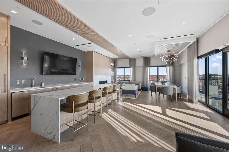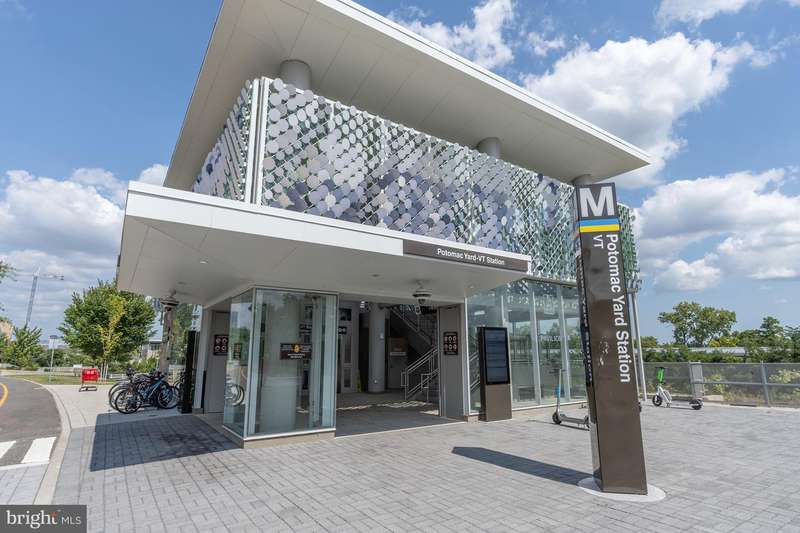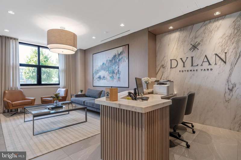 Gorgeous light filled two bedroom condo is the epitome of modern luxury. As the former model this condo features custom trim and lighting. Sited on the quiet, residential side of the building and featuring an open, sun-filled floor plan with 9 ceilings, wood floors, Bosch stainless-steel appliances and Waterworks bath fixtures. The chefs kitchen has imported Italian cabinetry, a large quartz waterfall center island, panelized fridge/freezer and abundant storage. A defined dining area opens to a large balcony offering plenty of seating and overlooking the landscaped courtyard. The spacious primary suite has two custom closets, one a walk-in, a spa-like primary bathroom with dual sinks, LED vanity mirror and modern frameless glass shower. The second bedroom features a built-in Murphy bed and storage, perfect for overnight guests while allowing flexibility to use the room as a den or office. A clever, custom built cloffice allows work clutter to be quickly hidden behind closed doors but can easily be re-converted back to a standard closet. The ensuite bath includes a deep soaking tub. An oversized garage space and separate, large lockable storage are also included. Dylan at Potomac Yard includes a stunning roof-top party room and patio with breathtaking views of Washington DC, National Airport and the Potomac River. The patio has numerous seating areas, a fire pit and a gas grill for cooking. A gym, makers space and dog wash station are also available to residents as well as a concierge (7 days a week!) and on-site management. The condo fee includes water, sewer & gas. Located in the heart of Potomac Yard, you are just steps away from the Potomac Yard Metro station, CVS, Giant, Target, Founding Farmers and a short walk to the charming shops and restaurants on Mount Vernon Avenue in Del Ray. Across the street, Potomac Yard Park offers pickleball, tennis and basketball courts. Dedicated walking and bike paths lead directly to Old Town and National Landing.