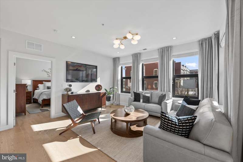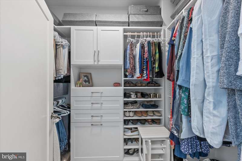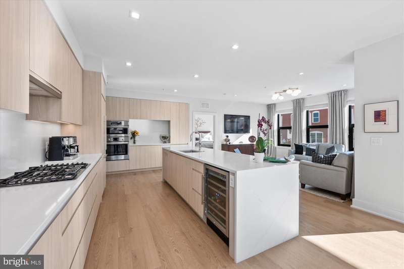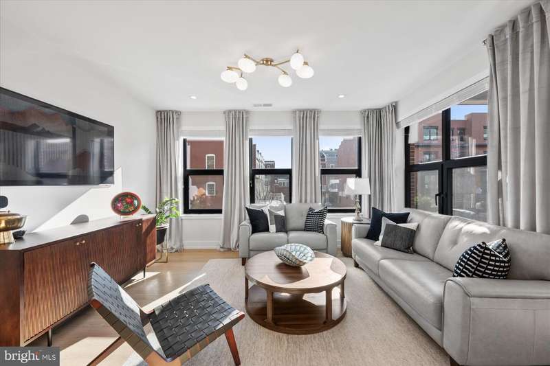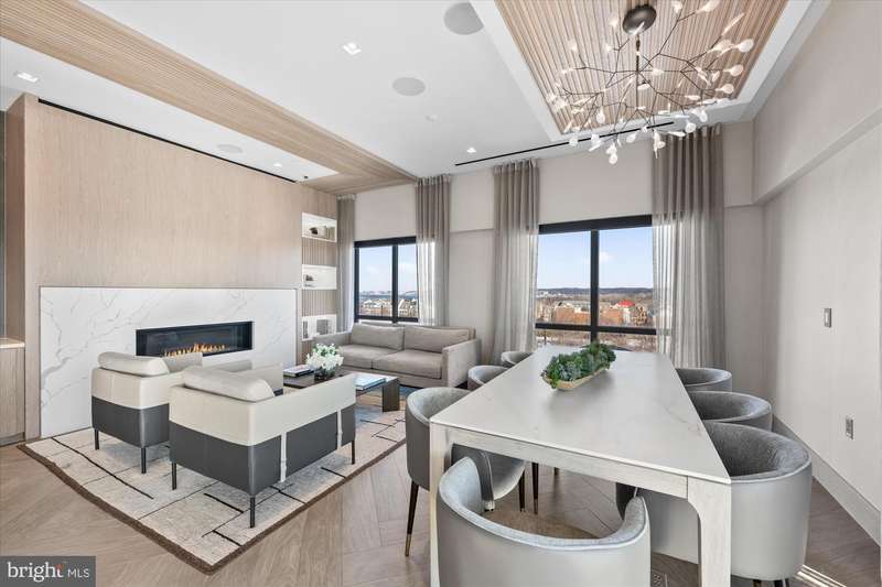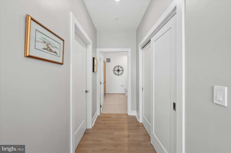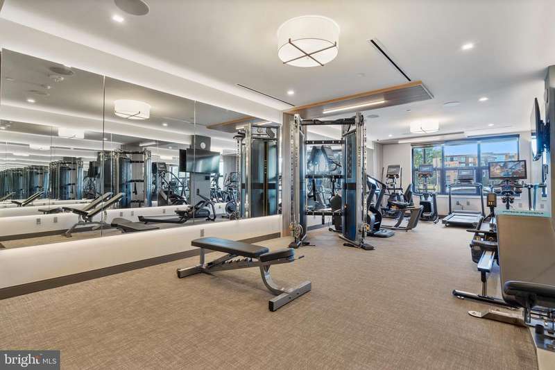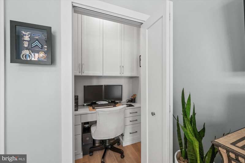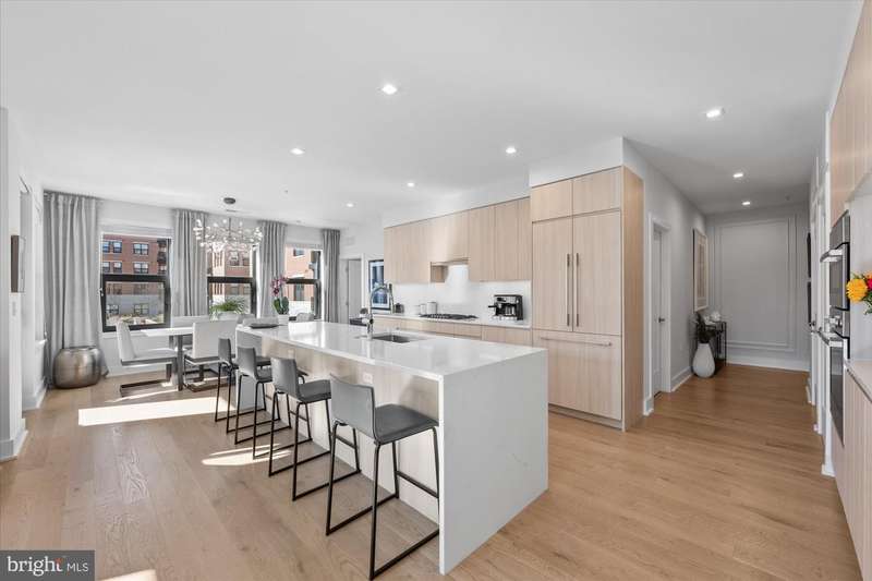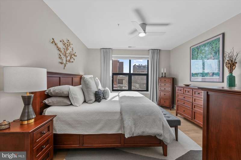 Gorgeous light filled two bedroom condo is the epitome of modern luxury. As the former model this condo features custom trim and lighting. Sited on the quiet, residential side of the building and featuring an open, sun-filled floor plan with 9 ceilings, wood floors, Bosch stainless-steel appliances and Waterworks bath fixtures. The chefs kitchen has imported Italian cabinetry, a large quartz waterfall center island, panelized fridge/freezer and abundant storage. A defined dining area opens to a large balcony offering plenty of seating and overlooking the landscaped courtyard. The spacious primary suite has two custom closets, one a walk-in, a spa-like primary bathroom with dual sinks, LED vanity mirror and modern frameless glass shower. The second bedroom features a built-in Murphy bed and storage, perfect for overnight guests while allowing flexibility to use the room as a den or office. A clever, custom built cloffice allows work clutter to be quickly hidden behind closed doors but can easily be re-converted back to a standard closet. The ensuite bath includes a deep soaking tub. An oversized garage space and separate, large lockable storage are also included. Dylan at Potomac Yard includes a stunning roof-top party room and patio with breathtaking views of Washington DC, National Airport and the Potomac River. The patio has numerous seating areas, a fire pit and a gas grill for cooking. A gym, makers space and dog wash station are also available to residents as well as a concierge (7 days a week!) and on-site management. The condo fee includes water, sewer & gas. Located in the heart of Potomac Yard, you are just steps away from the Potomac Yard Metro station, CVS, Giant, Target, Founding Farmers and a short walk to the charming shops and restaurants on Mount Vernon Avenue in Del Ray. Across the street, Potomac Yard Park offers pickleball, tennis and basketball courts. Dedicated walking and bike paths lead directly to Old Town and National Landing.