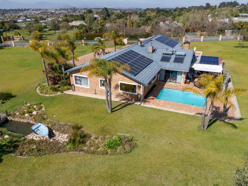 Escape the ordinary and step into your own private countryside retreat in sought-after Vierlanden, Durbanville. This fully landscaped, low-maintenance smallholding blends the charm of farm-style living with the ease of being just five minutes from Durbanville’s hub, top schools, and premier amenities. Unwind in the spacious open-plan living areas, complete with cozy fireplaces, air-conditioning, and a built-in bar — perfect for family living and effortless entertaining. The modern kitchen with gas stove, refreshed cupboards, and seamless flow to the outdoors ensures every moment at home feels special. Enjoy year-round entertaining with an under-roof patio, pergola with blinds, extensive decking, and a sparkling pool. Overlooking the large pond with its windmill feature, this home is made for gatherings — big or small. Bedroom Comforts: Luxurious main suite with walk-in closet, dressing area & indulgent en-suite (bath, shower, bidet, double basin, toilet). Two additional air-conditioned bedrooms with built-in cupboards. Family bathroom (bath, shower, bidet, double basin, toilet) + guest toilet. Dedicated study/office for work-from-home or quiet retreat. Outdoor Lifestyle: Manicured gardens with vegetable tunnel for homegrown produce. Children’s swing & sandpit area. Under-roof pool patio, braai room & bar, plus cozy wood storage for winter fires. Garaging & Storage: 3 garages with loft storage & ample built-in cupboards. Key Features That Make This Home Future-Ready: Full off-grid solar system (100 kW) with 3 inverters, 7 batteries & solar panels, plus 3-phase electricity. 3 boreholes with UV-filtered drinking water & water tanks. Solar-powered pool pump + 2 solar geysers with Geyserwise system. High-speed fibre internet. Top-class security: electric fencing, alarm, beams, cameras, solar floodlights & armed response. Monthly Rates: R3,539 This property offers a lifestyle that’s hard to match — serenity, space, and sustainability all in one. Your Vierlanden haven won’t wait — call today to secure your viewing before it’s gone!