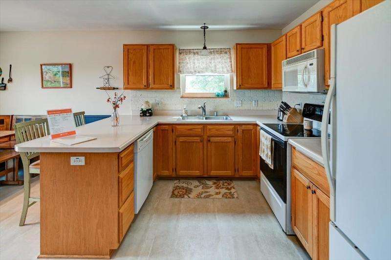 Main-level primary bedroom seekers- this is it! Two more bedrooms on the upper level and another on the lower level. Vaulted ceilings, updated flooring, freshly painted neutral walls, eat-in kitchen opens up to walk-out deck. Main level primary bedroom w/ walk-through full bath & walk-in closet. Walk-out LL family room w/ wood-burning stove & stone surround, large 4th bedroom, full bath & addit'l storage space. Beautiful landscaping can be enjoyed from both deck & patio areas. Walking distance to vibrant Mount Horeb restaurants, & shopping & minutes to Epic/Madison. Updates include fenced-in back yard, radon mitigation system, LVT kitchen & primary bedroom flooring. Roof 2021, windows 2017, AC 2017, water heater 2019, water softener 2021. Seller including UHP "Ultimate" Home Warranty.
