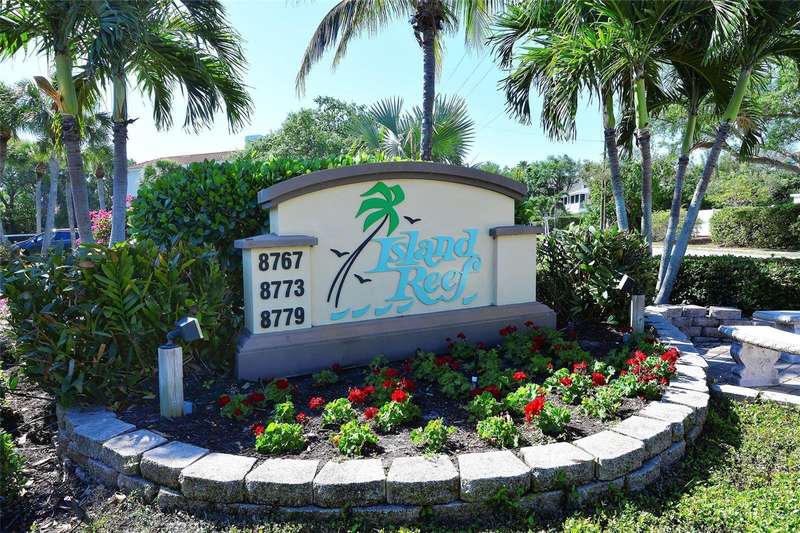 Reserve your place in the sun for this Winter and years to come! ENJOY THE BAY VIEWS FROM THIS UPDATED HOME! Kitchen with Granite countertop, Laundry in Residence. Partially Furnished! Carport! Island Reef is a serene waterfront community, one of the few Gulf to Bay community that offers many desirable amenities including: Beach, Boat Docks (lifts allowed) two lit tennis courts, pickleball, 2 fitness rooms, Kayak Storage, Library, Billiards, game room, clubhouse, two heated pools and Gas Grills, PET FRIENDLY! Tropical Gardens add to the appeal of Island Reef and this wonderful community is close to two of Siesta Key’s popular restaurants. Complimentary trolley to Siesta Beach, Siesta Village for dining, shopping, ice cream, mini donuts, cute brunch spots and dancing and live music every night of the week!