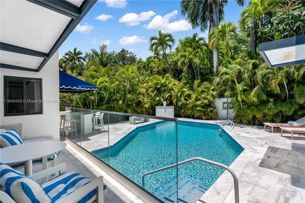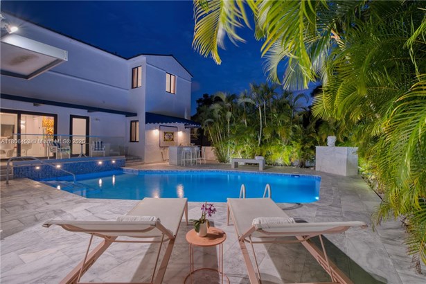 Exquisitely remodeled to perfection, this stunning move-in- ready single-family home offers 4 bedrooms & 3.5 baths. Featuring a new durable metal roof, high-impact windows/doors, brand-new AC, and upgraded plumbing/electrical, this residence combines modern comfort and elegance. The European-style kitchen is a chef’s dream, equipped with premium Wolf & Liebherr appliances, gas cooktop, wall oven, double-door refrigerator/freezer/wine cooler, and drinking water filtration system. Step outside to your private oasis, where a beautifully modernized pool and marble deck are surrounded by lush landscaping & outdoor shower. Located within walking distance to the beach & La Gorce Country Club, and close to premier dining/shopping/entertainment options, get ready to enjoy the best of coastal living