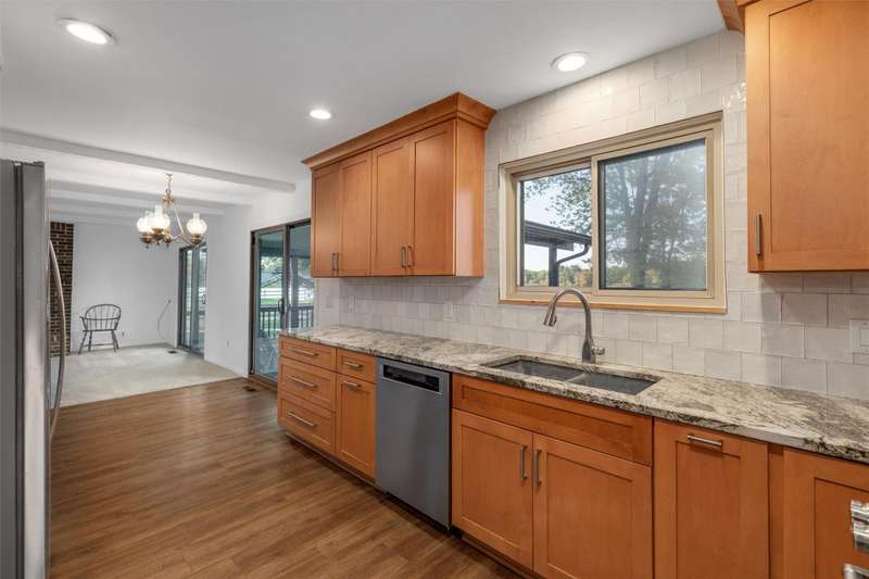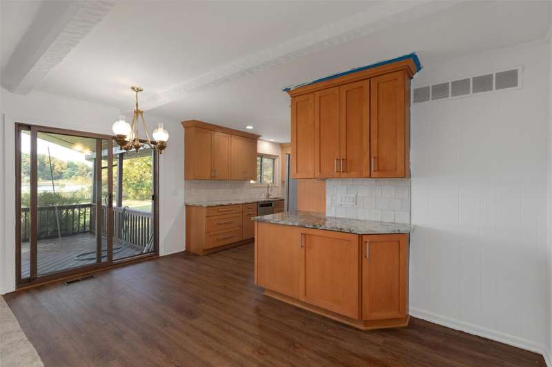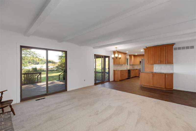 Waterfront home located on Woodruff Lake! Brick Ranch with covered porch and attached 2+ car garage is located at the end of Ford Rd. New carpet (9/2025), home is freshly painted, with updated Kitchen and Bathrooms! Step inside to the Living Room which leads to the Family Room – complete with Brick Fireplace and Door Wall to covered Deck. Open concept connects the Family Room/Dining Space and Kitchen. The Kitchen offers: Maple Cabinetry (42” Upper Cabinets), with soft close drawers; granite counters; and Stainless-Steel Appliances. Large, covered Deck is also accessed from the Dining Area. The Primary Bedroom Suite – with views of the lake - is sure to please and features Walk-in Closet and remodeled Bathroom with Granite Topped Vanity; Jetted Tub; and Toto Toilet. 2 Additional Bedrooms and Full Bathroom off the Main Hall. Screened Porch is conveniently accessed off Kitchen. First floor Laundry Room and attached Garage with extra storage above.
