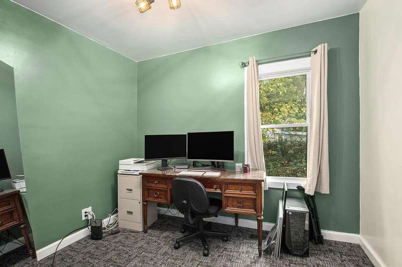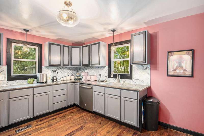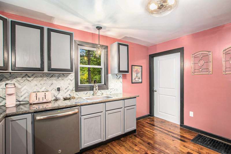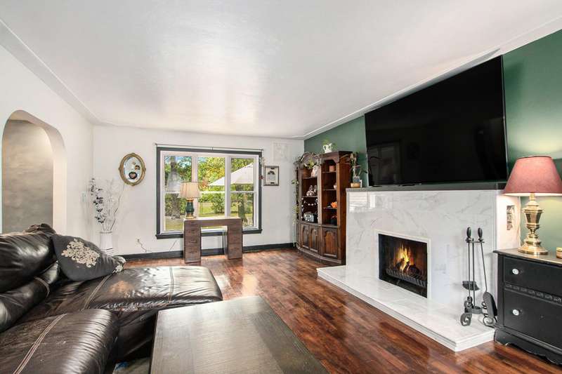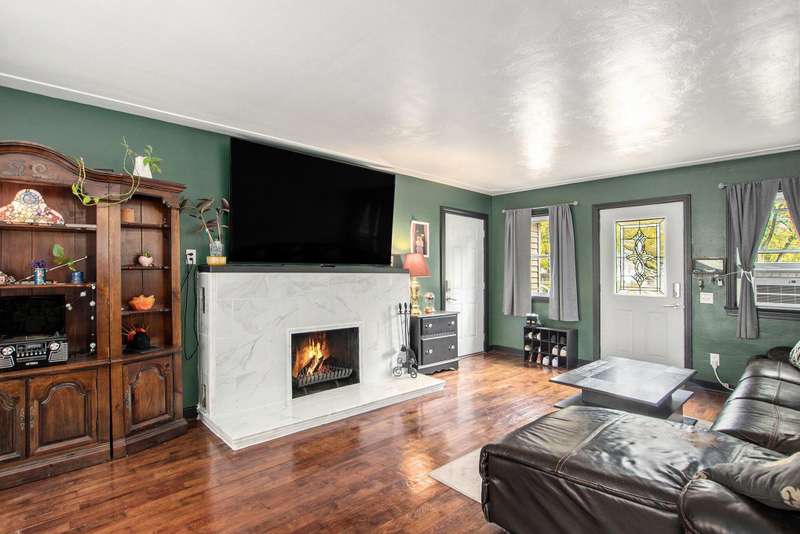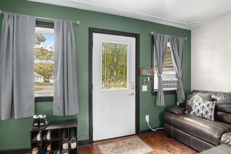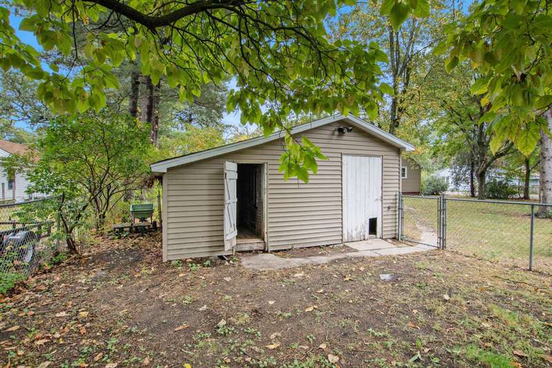 This home sits on a huge corner lot that is about 300 feet deep, so lots of room for backyard entertaining. Home offers hardwood floors, beautiful marble fireplace, updated kitchen with GE appliances, unique poured concrete countertops, nice walk-in pantry, ceramic tile backsplash. Large dining room with new lighting. Bath has been updated with ceramic tile floors and tiled walls around the jacuzzi style tub & shower. 2 bedrooms on the main with another and family room on the lower level. Attached two car garage with convenient backyard entry door. Shed with concrete floors offers even more storage space or would be great as a garden shed or work shop. Chain link fence in back yard is great for pets. The property extends out another 100' or so beyond the fence to the berm.