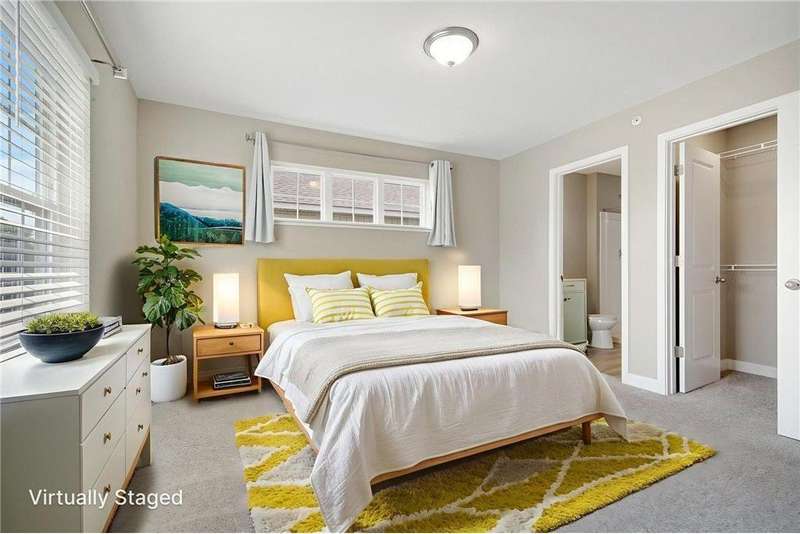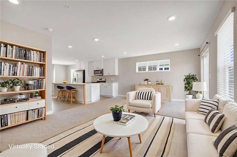 Welcome to this wonderfully bright, sun filled end unit townhome built in 2022 and includes many upgrades! Buyers will love the natural light in the open floorplan main level, featuring a large kitchen, dining area, family room with fireplace, and deck for outdoor enjoyment. Upstairs boasts 3 bedrooms, a primary suite with walk-in closet and 3/4 bath, and a laundry room. Finished lower flex room is perfect for guests, a home office, or a fitness room. This home also includes a smart home package, private Dog Park nearby, playground, and a professionally managed HOA. Close to every amenity you can think of from shopping to golf.