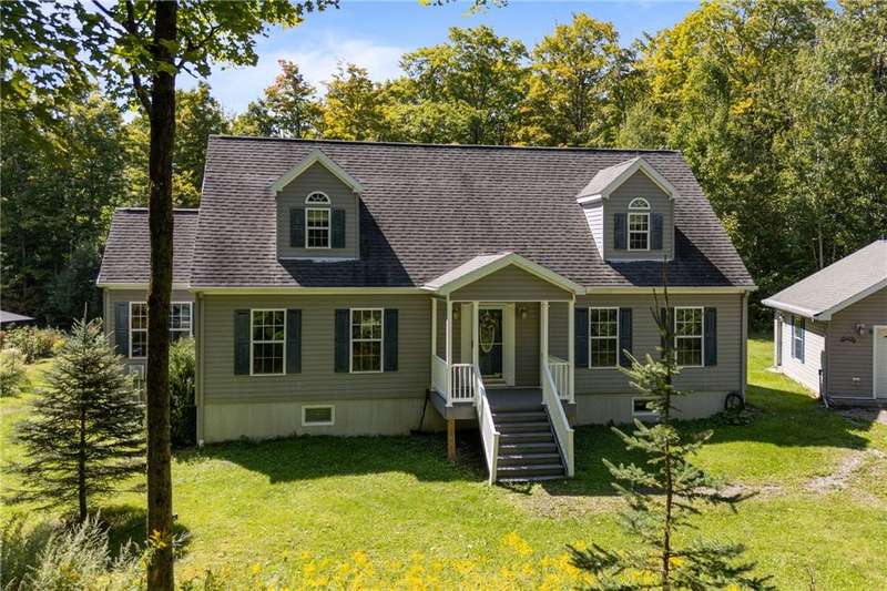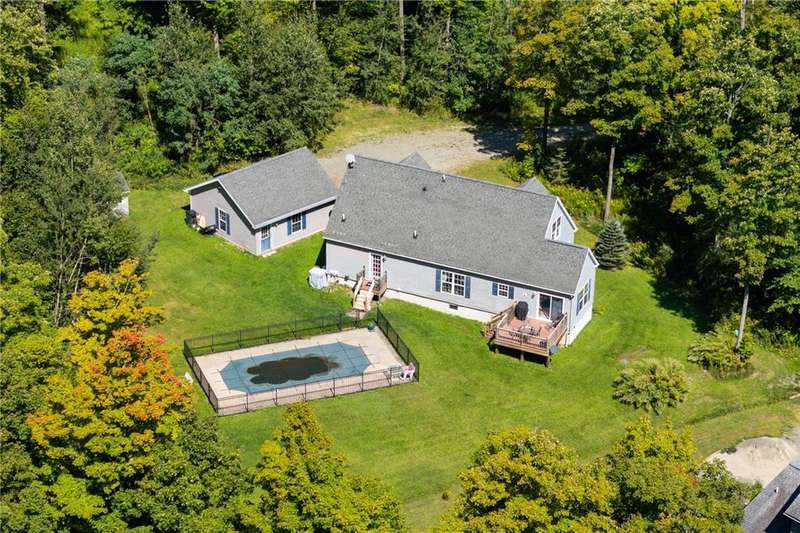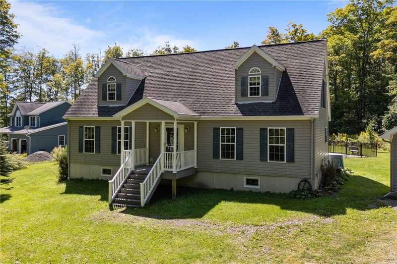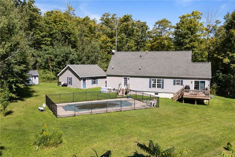 Nestled on a quiet road, this charming home is surrounded by breathtaking views of the seasonal changes, making your drive an enjoyable one to and from home. The morning room provides a bright and cozy space to start your day. The main level features a spacious primary bedroom complete with an ensuite and a walk-in closet, along with a 2nd bedroom that is currently being used as a mudroom but could easily be converted back into a bedroom, and a layout that flows seamlessly. Upstairs, you'll find two additional bedrooms and a bathroom, offering comfort and privacy. Relax on the covered front porch or enjoy the serene lot outback that includes a fiberglass heated in-ground pool with a lifetime warranty for summer fun. The detached two-car garage offers ample storage space. Located just minutes from Cornell, Ithaca, and Dryden, this home combines tranquility with accessibility, offering the best of both worlds.