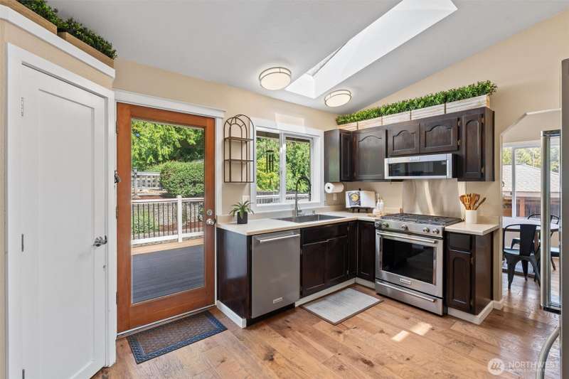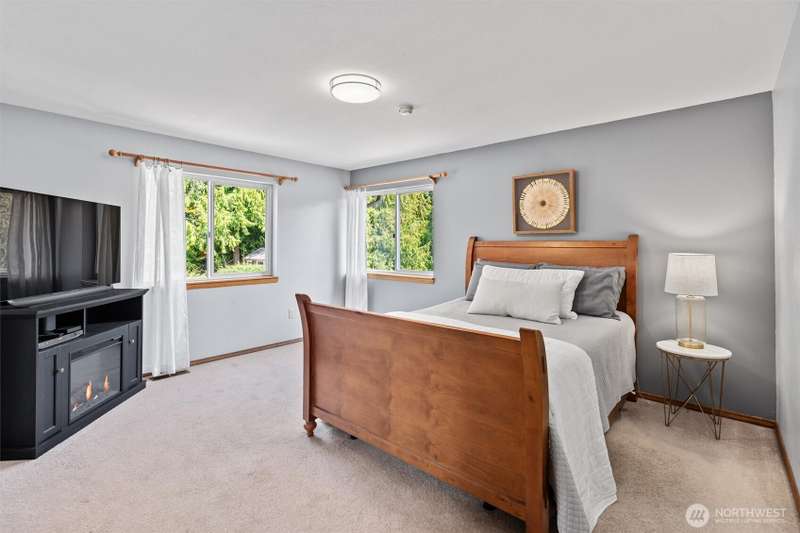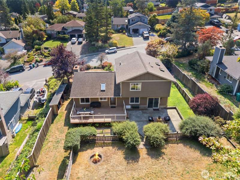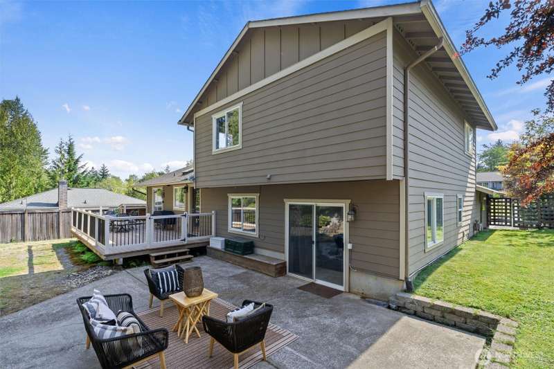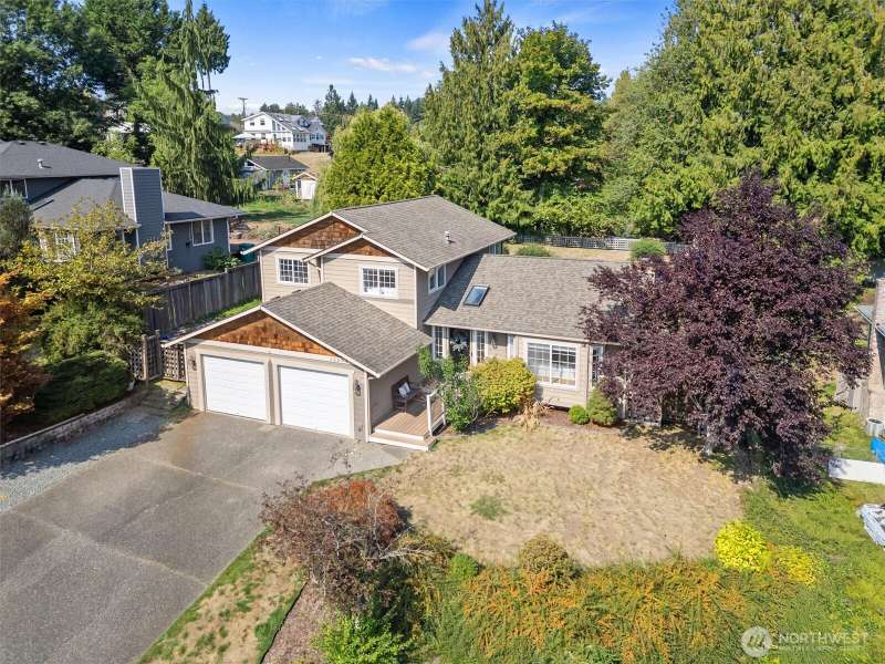 Ideally located within walking distance of Downtown Lake Stevens, this home is a curated blend of charm & craftsmanship on a lush quarter acre lot. 3 BEDS + OFFICE w/family room make this an ideal floor plan. Engineered hardwoods flow through the main living space, anchored by a wood burning fireplace, vaulted ceilings & built-in bookcase. Custom white millwork, oak doors, stained trim & wrapped windows add timeless warmth. Kitchen features KitchenAid appliances, Gas range, pantry, wainscoting, and a glass door leading out to expansive Trex decking that offers seamless indoor outdoor living. Primary suite w/tiled shower & private bath. Tiered level lawn, large patio, fire pit, detached shed, level drive, and 2-car garage. [WELCOME HOME]