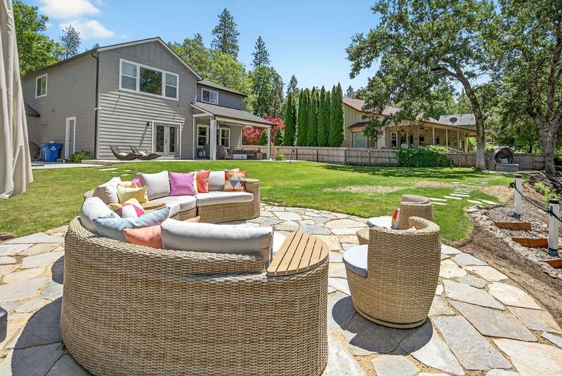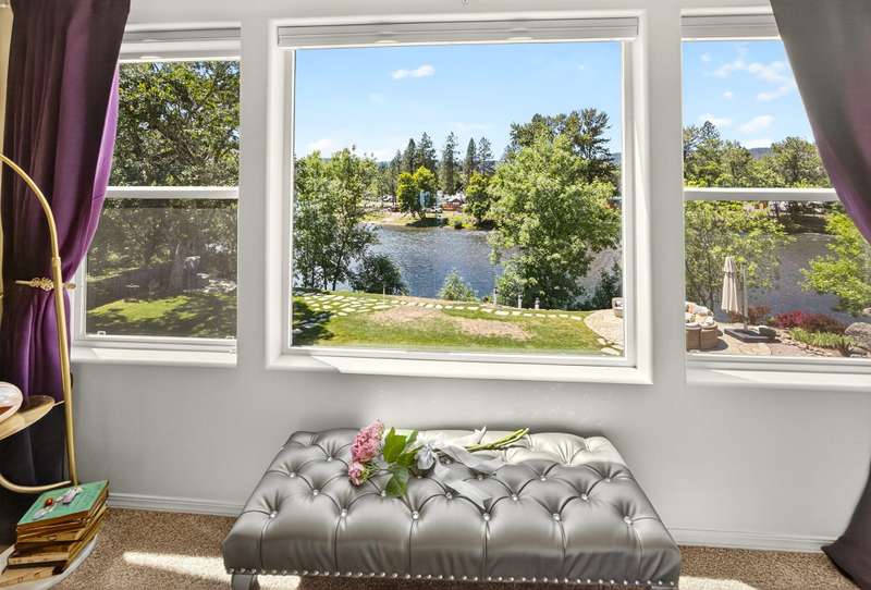 Better than new and perhaps the best Rogue Riverfront value available in Southern Oregon today, this rare offering is absolutely packed with hard-to-find features, various usable spaces inside and out, and situated on a gorgeous stretch of the Rogue. Custom built in 2021, the home offers 5 bedrooms, one of which functions well as an office or den, 2 primary suites, 3.5 baths, 2,992 SF, an island kitchen, pantry, mud room and a 3 car garage. Abundant windows allow for exceptional natural light and gorgeous views throughout. Outside you'll enjoy expansive patios including a covered patio with electronic shades and 2 heaters, flagstone walks and sitting areas, and a fully irrigated .41 acre lot with a level, usable yard. It all overlooks the river with a view of the bridge providing a unique architectural backdrop. Truly a one-of-a-kind package with too many extras to list here. Inquire for more details. Listing agent is related to seller.