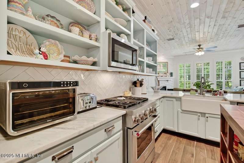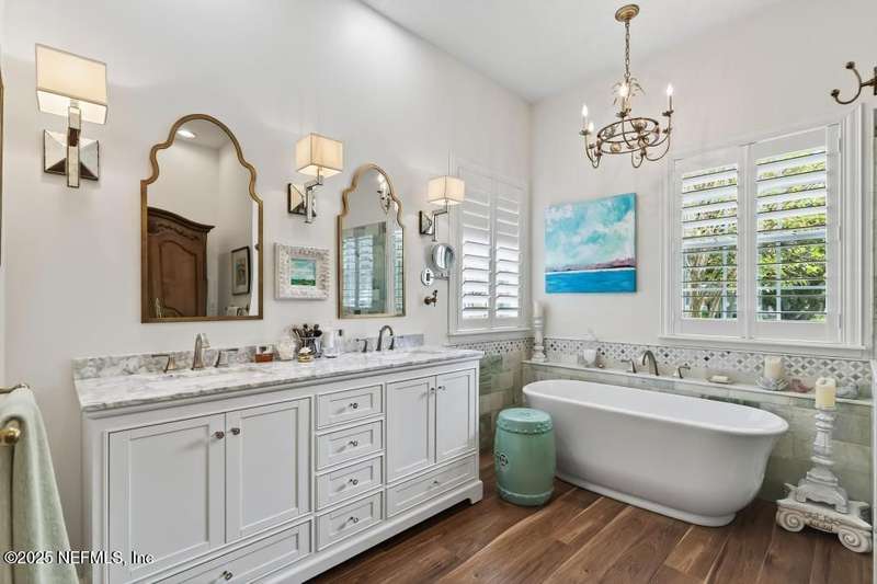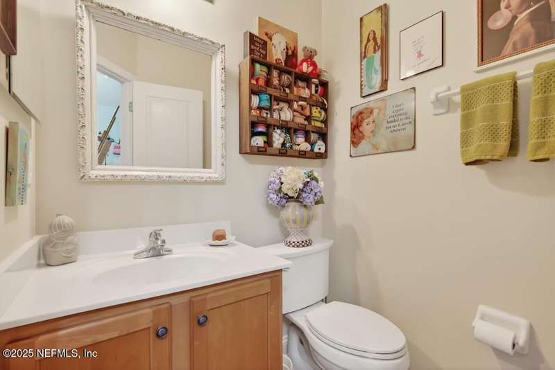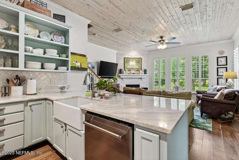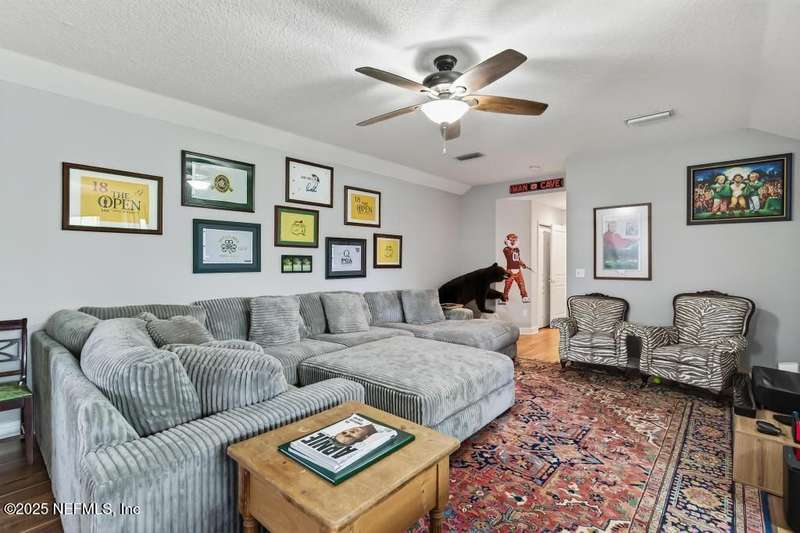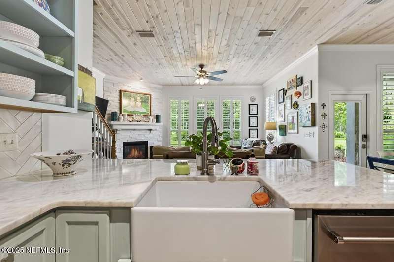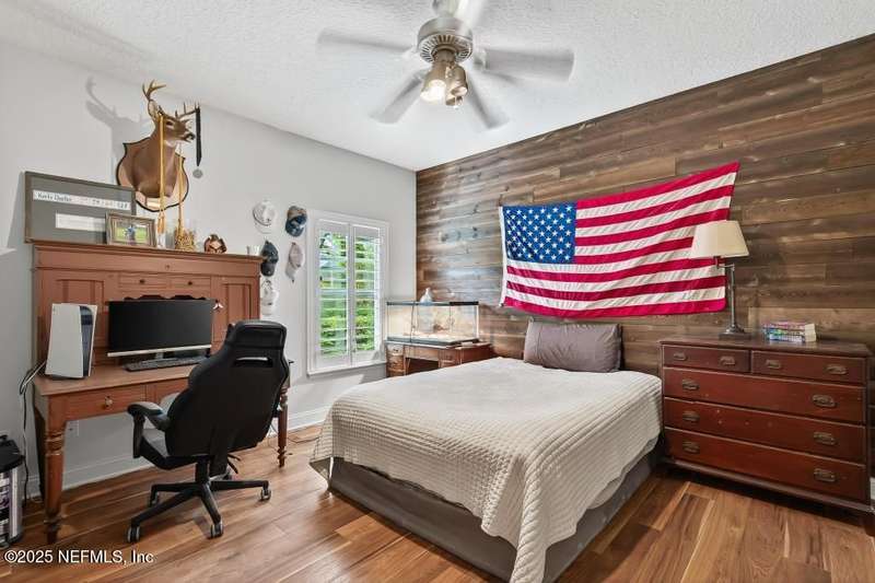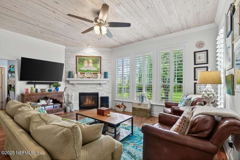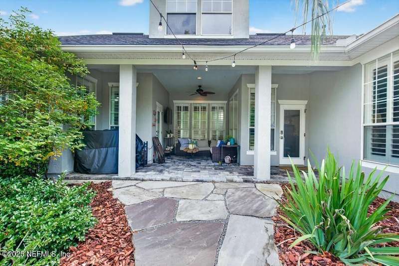 Beautifully Updated Home on the Golf Course!This spacious 5-bedroom, 3.5-bath home offers 3,587 sq ft of flexible living space with thoughtfully designed updates throughout. The versatile floor plan includes a large bonus room with full bath, an office (or 5th bedroom), a craft room with half bath currently used as an art studio, and separate formal living and dining rooms-all set on an oversized 0.36-acre golf course lot in desirable St. Johns Golf & Country Club.The gourmet kitchen showcases stainless steel KitchenAid appliances, a gas cooktop, marble countertops, tile backsplash, a center island, and plantation shutters. A tongue-and-groove ceiling flows seamlessly from the kitchen into the family room, complemented by beautiful wood-look flooring throughout and a cozy gas fireplace.The primary suite overlooks the golf course and features a fully renovated bathroom with a stand-alone soaking tub, dual marble-top vanity, and elegant upgraded fixtures. Step outside to the expansive backyard, a private retreat complete with a custom paver firepit patio surrounded by lush landscaping that attracts butterflies and hummingbirds a true nature lover's paradise.Additional highlights include a newer roof, paver driveway and patio, updated front columns, and an oversized two-car garage with Shark-coated floors and built-in shelving.SJGCC is one of St. Johns County's premier communities w/ lots of elbow room and gorgeous, mature trees! SJGCC is golf cart friendly and features championship golf, newly renovated clubhouse w/ indoor & outdoor dining on the cocktail deck, tennis, state-of-the-art fitness center, Olympic pool w/ slide and splash park for the kids, sports fields, basketball courts and more! All this + Top rated St. Johns County schools! Don't miss this opportunity to own a home in one of the area's most desirable neighborhoods. Schedule your showing today! HOA includes cable and internet!