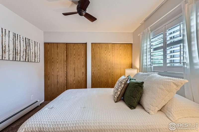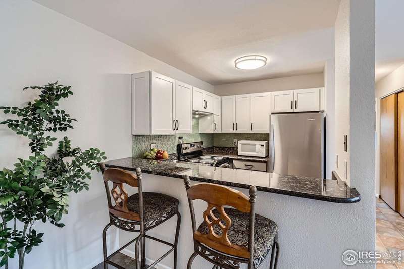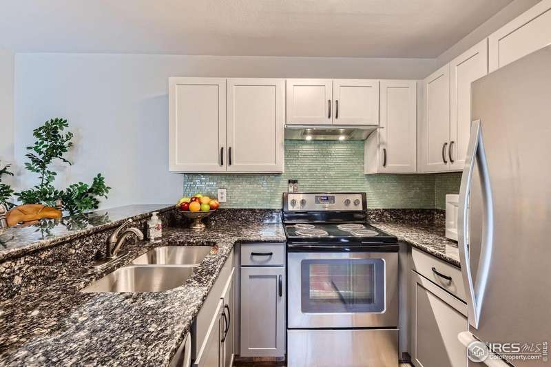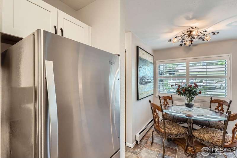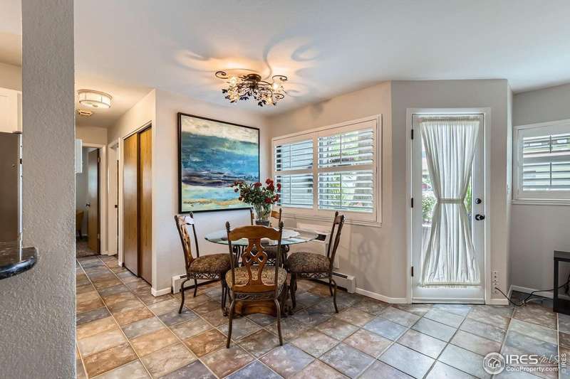 Inviting and move-in ready 2-bedroom, 2-bath condo perfectly located in the heart of Boulder! Meticulously maintained by the original owner, this bright, sun-filled garden-level unit offers easy access with minimal stairs--combining comfort with unmatched convenience. The stylish tuxedo kitchen features new cabinetry, granite counters, a vibrant glass tile backsplash, and brand-new stainless steel appliances. Adjacent is a charming eat-in dining area highlighted by a one-of-a-kind chandelier, adding a touch of personality and warmth. The spacious living room features a cozy, wood-burning fireplace--perfect for those crisp Colorado evenings. Thoughtful upgrades include energy-efficient Renewal by Andersen windows, elegant plantation shutters, and hot water, baseboard heating (covered by the HOA)--great for your comfort and your budget. Both bathrooms showcase sleek, glass vessel sinks. The primary bedroom includes double closets, while the second bedroom features a built-in organizer, making it an ideal office or flexible guest space. Doing laundry is a breeze when using the new Bosch washer and dryer. For garden lovers, the sunny south-facing patio is perfect for growing flowers and vegetables. All of this just minutes from Boulder's top restaurants, shopping, parks, and trails.