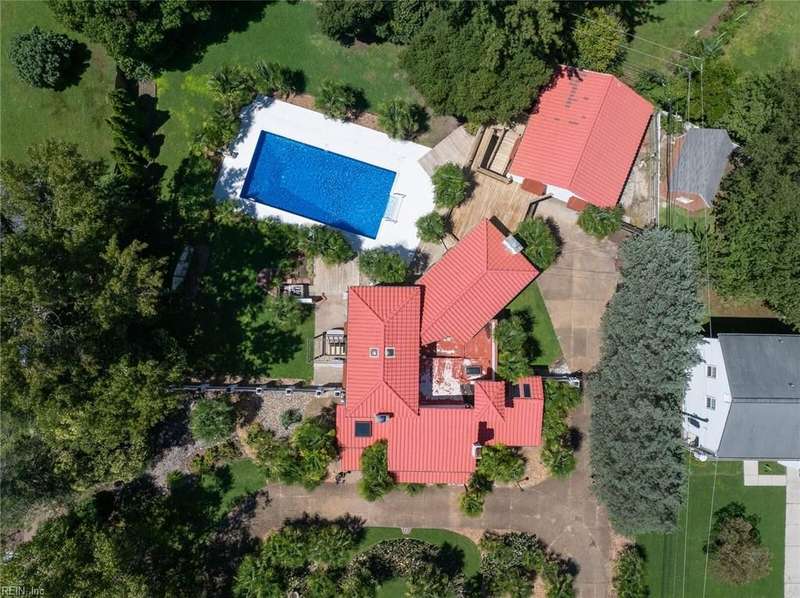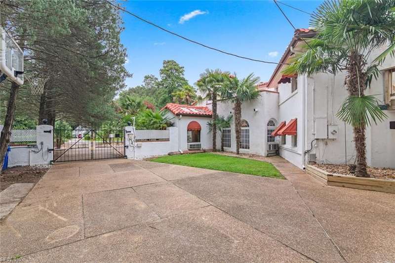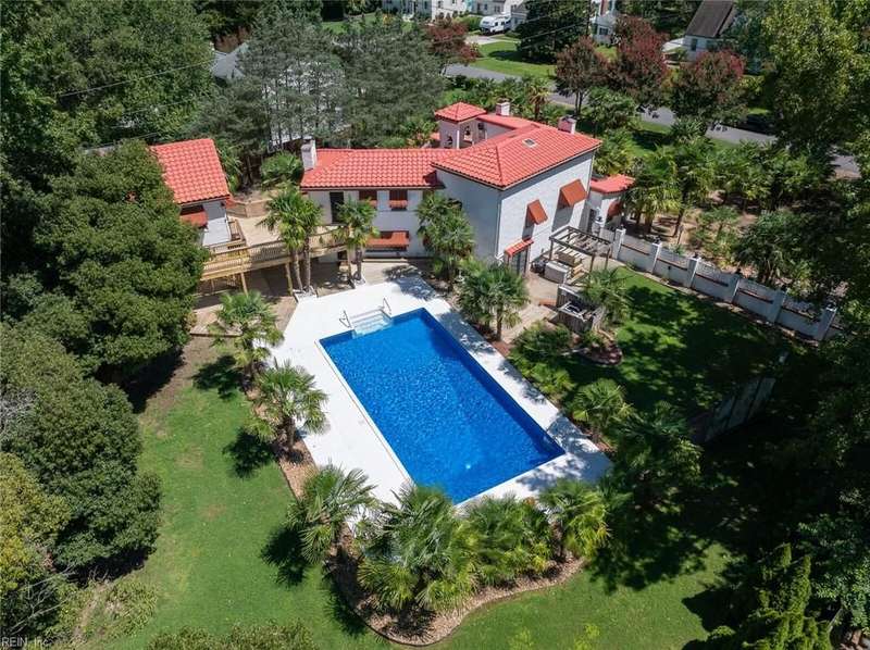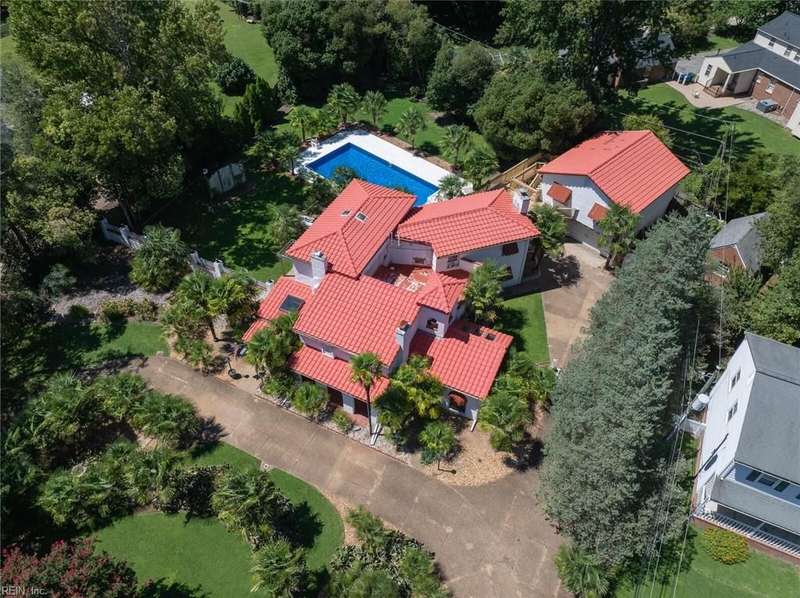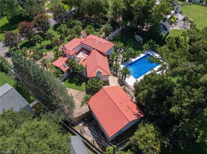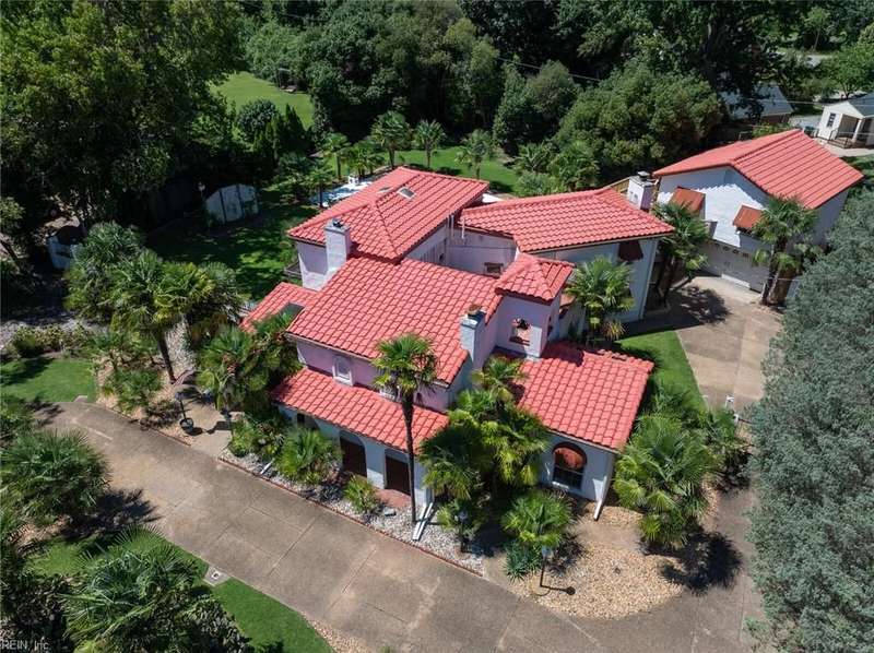 Here it is! Beautiful Spanish/Mediterranean style villa with white stucco exterior and red tile roof. 3 bedrooms, 3 baths, large kitchen w/full appliance package, trash compactor and wine cooler, also FP plumb for propane gas. Step down den and office/study, large living room w/gas fireplace. 1st floor bathroom with claw-footed tub and exposed copper plumbing. New window/wall A/C units Jul-Aug 2025. 40'X20' salt-water ingound pool relined in 2021, also has brand new motor and chlorinator. 600SF room/storage above detached garage has a wall A/C unit that is heated and cooled. Also has a walkway that goes directly from second floor primary bedroom to the room above detached garage. Lot is .62 acres with plenty of palm trees. This is a home you truly have to see to really appreciate!! Hurry!! Won't last long!