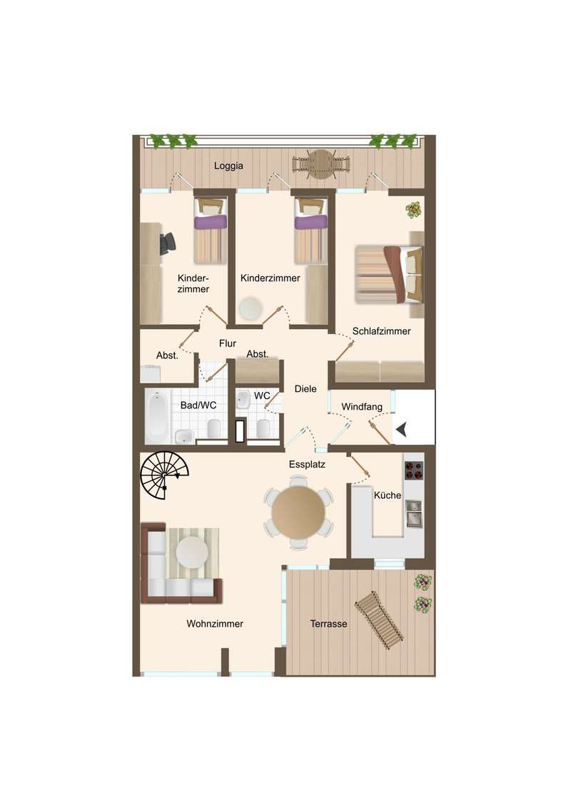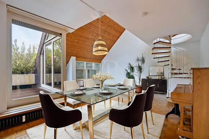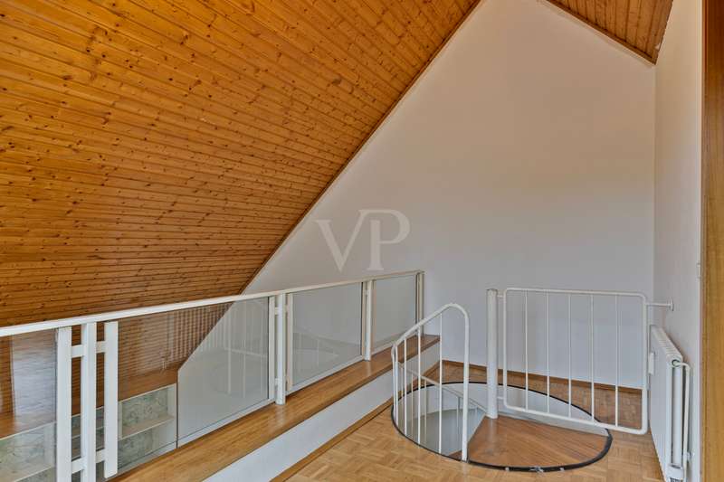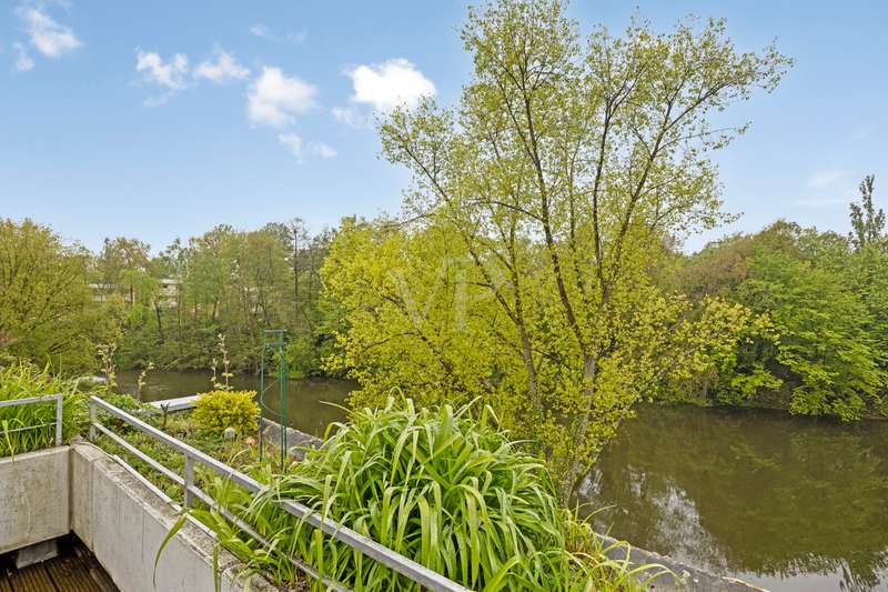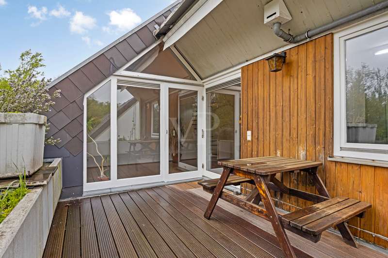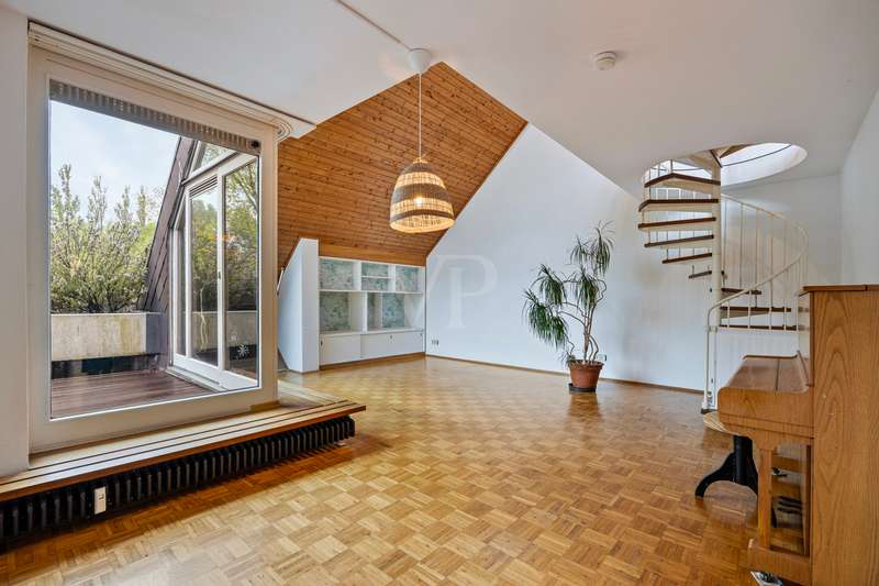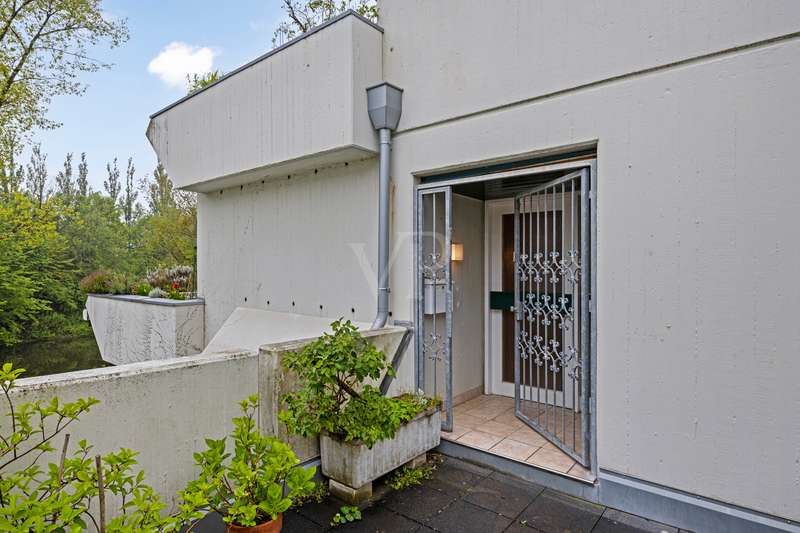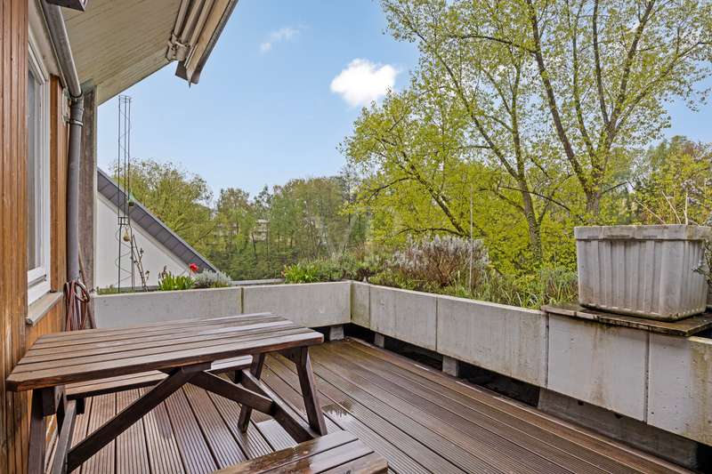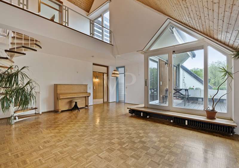 You don't want to do without the privacy of a detached house and at the same time enjoy the advantages of a community of owners? Here you can experience both in perfect harmony! This exclusive maisonette apartment on Bonn's Heiderhof inspires with a unique house-within-a-house feeling on a generous living space of 142 m² and offers the perfect family home on two functionally designed living levels. Light-flooded rooms, a well thought-out floor plan and the fantastic lake view make this property a very special living experience. The open-plan living and dining area with direct access to the first terrace creates a seamless transition between indoor and outdoor areas - ideal for relaxing hours or sociable evenings. The beautifully designed kitchen next door offers plenty of space for culinary creativity. Three cozy bedrooms with access to the shared balcony invite you to linger - flooded with light and with a wonderful view of the greenery. The first, interior bathroom with bathtub provides the necessary comfort and a separate guest WC is available for your visitors. The elegant spiral staircase takes you to the upper gallery level of the apartment: a wonderfully private retreat with another spacious bedroom and en-suite bathroom. Whether as a parents' area, home office or guest zone - your individual furnishing wishes can be easily realized here. Another absolute highlight is the spacious roof terrace with picturesque views of the lake and the Siebengebirge mountains. Here you can enjoy sunny hours or relax in the open air at the end of the day - a special place for peace, enjoyment and quality of life. The offer is rounded off by a practical utility room in the apartment, a lockable cellar room and a convenient single garage right next to the house. In addition, new plastic windows with modern triple glazing are currently being installed and will provide even better heat and sound insulation in the future. Don't hesitate to arrange a viewing appointment today to see the many advantages of this exclusive home for yourself! **An energy certificate is being processed and will be available at the time of viewing.
