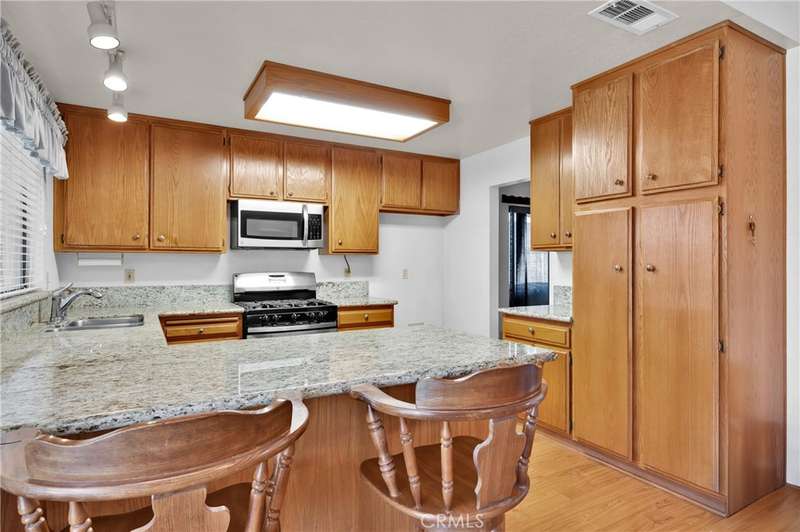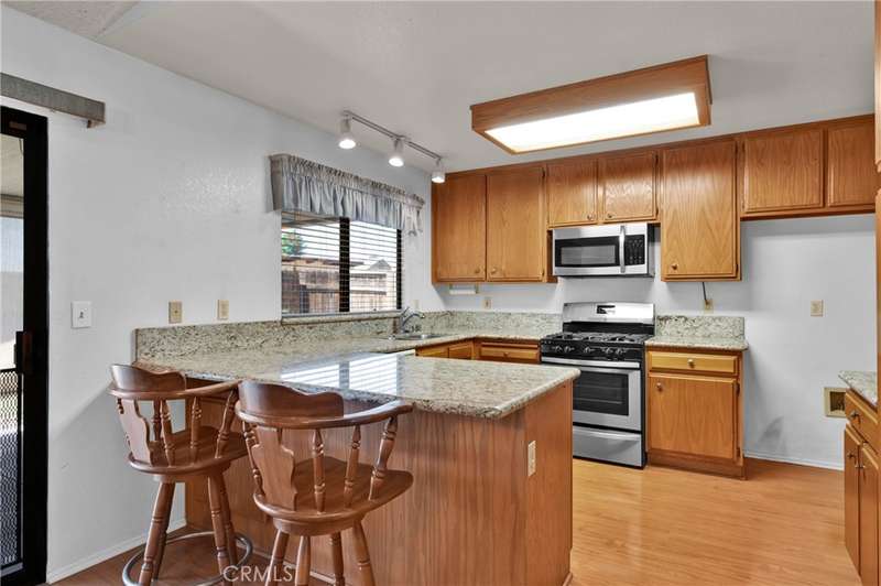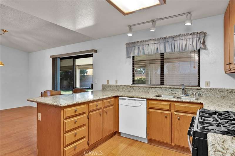 Welcome to this beautifully maintained 3-bedroom, 2-bathroom home situated in a peaceful neighborhood near the local high school. Step inside to find a spacious kitchen featuring plentiful cabinets, granite countertops, and a convenient breakfast bar, perfect for casual dining. The home boasts stylish wood laminate flooring throughout the kitchen, dining room, entry, and hallways, creating a warm and inviting flow.