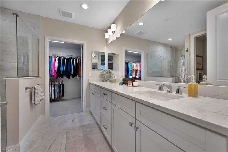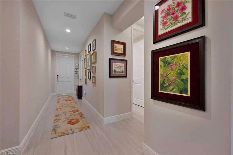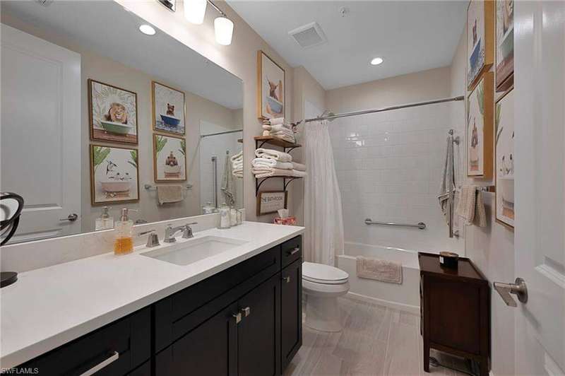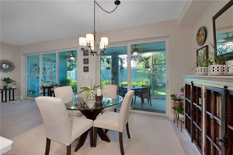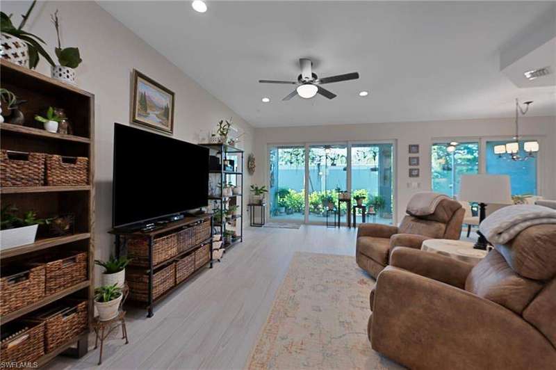 Recently constructed, first-floor carriage home in the gated community of Seychelles, close to downtown Olde Naples, vibrant 5th Avenue, and Gulf beaches. Inspired by British-West-Indies architecture, this 2-bedroom, 2-bath residence offers a light and airy design with volume ceilings, expansive tile flooring, and a screened lanai that spans the length of the home for seamless indoor-outdoor living. The kitchen features gleaming quartz countertops, stainless steel appliances, crisp cabinetry, and a pantry. The open-concept layout connects the kitchen, dining, and living spaces, creating the perfect setting for entertaining or relaxing. The spacious primary suite offers a spa-inspired ensuite bath, while the guest bedroom and bath provide comfort and privacy for family and friends alike. A 1-car garage adds convenience and extra storage. Resort-style amenities include a 4,500 sq. ft. clubhouse, sparkling pool and spa, fitness center, fire pit gathering area, and an event lawn for socializing and enjoying Naples' stunning sunsets. With its prime location, exceptional finishes, and vibrant community atmosphere, this home is the perfect blend of coastal elegance and modern comfort.