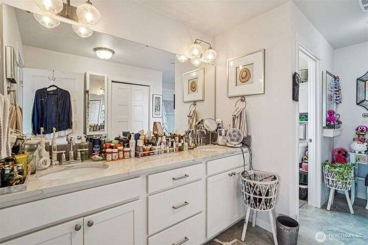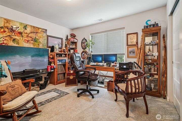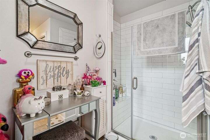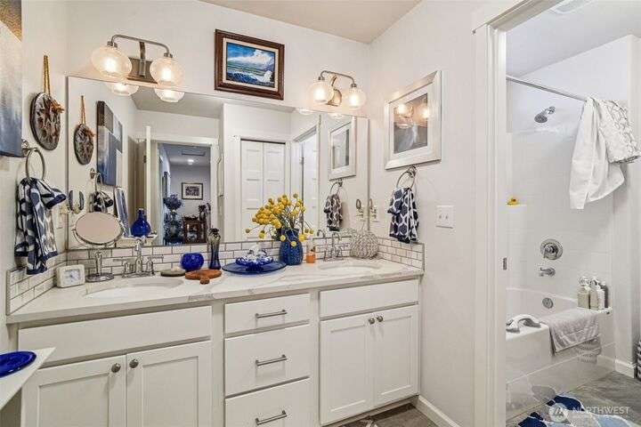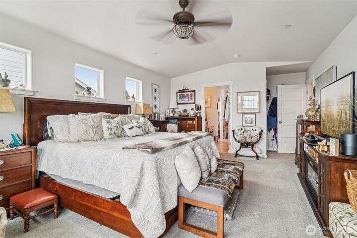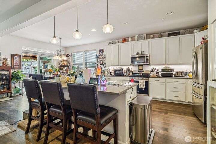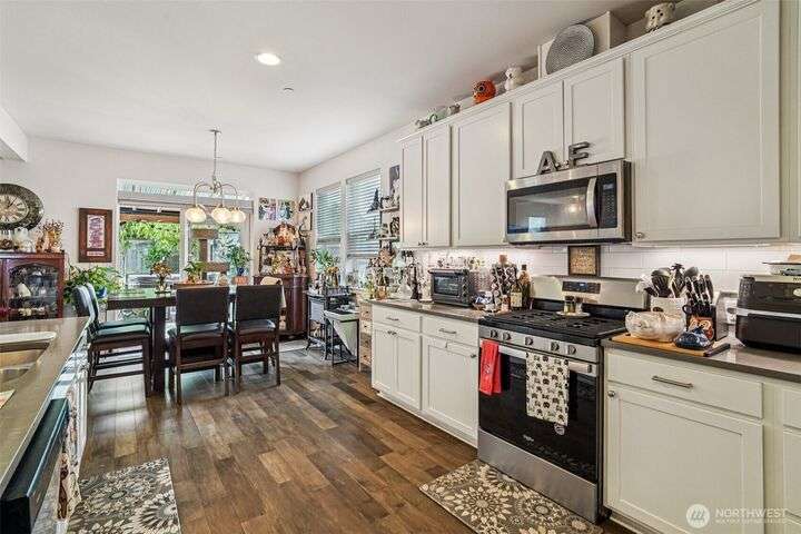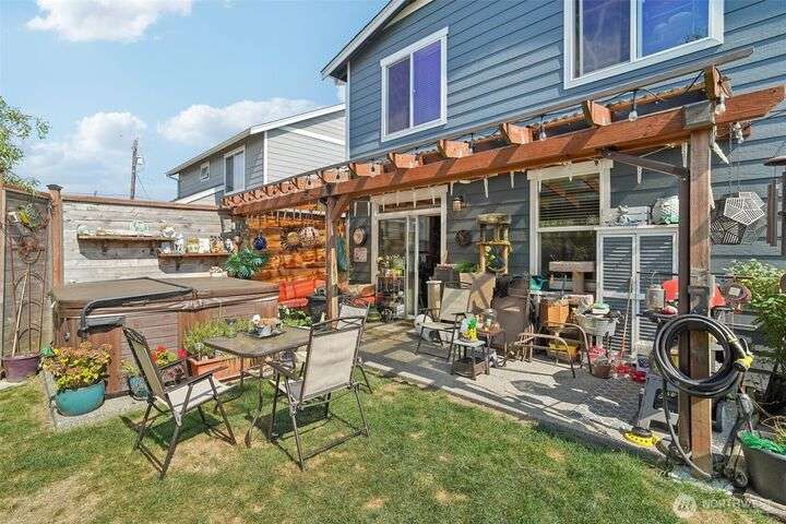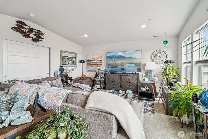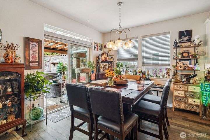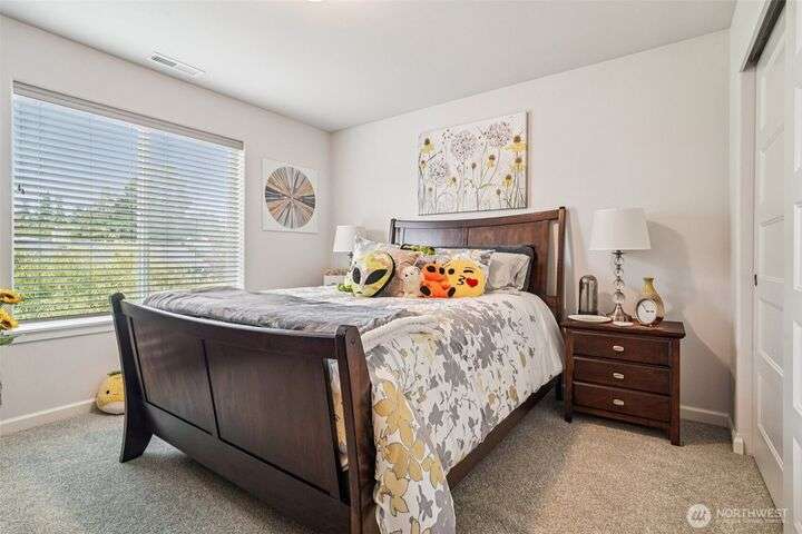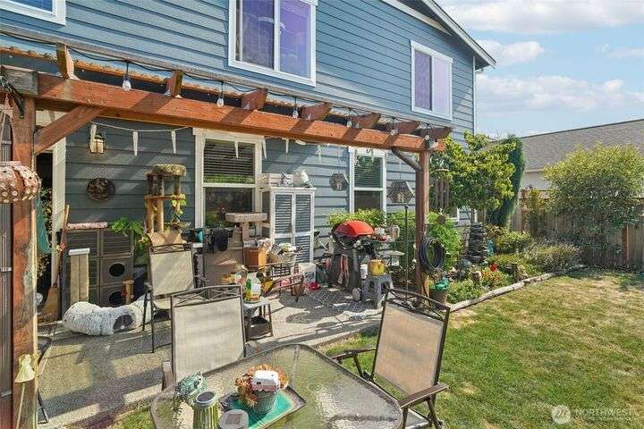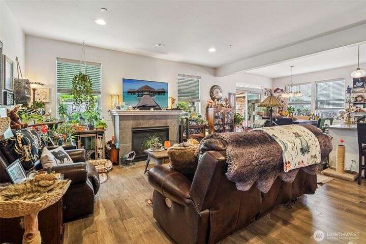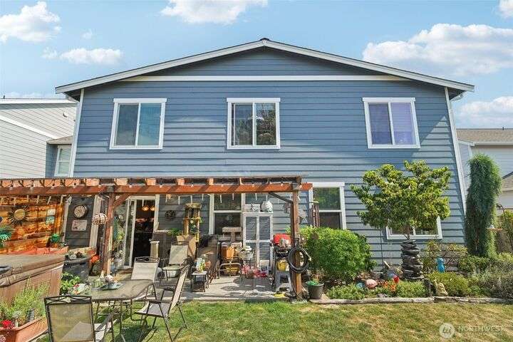 Beautifully crafted, this home blends modern comfort w/relaxed PNW charm. 6 bedrooms and 2.75 bathrooms, the two-story layout is ideal for anyone seeking extra space. The main floor features an open-concept living area filled with natural light, perfect for everyday living and entertaining. A bonus room and full bath provide flexibility for a guest suite, office, or hobby space. Upstairs, the private primary suite w/ en-suite bath is joined by three additional bedrooms, a second full bath, and laundry area. Hardwood floors and premium finishes add elegance, while the covered patio sets the stage for BBQs or quiet evenings outdoors. Enjoy serene water views, a two-car garage—all just minutes from schools, parks, and amenities.
