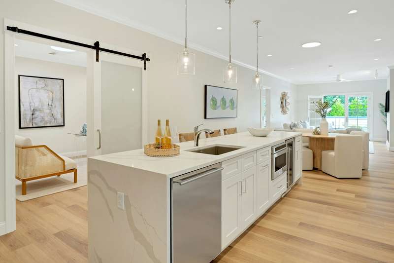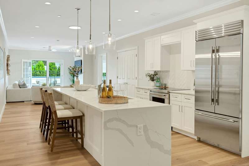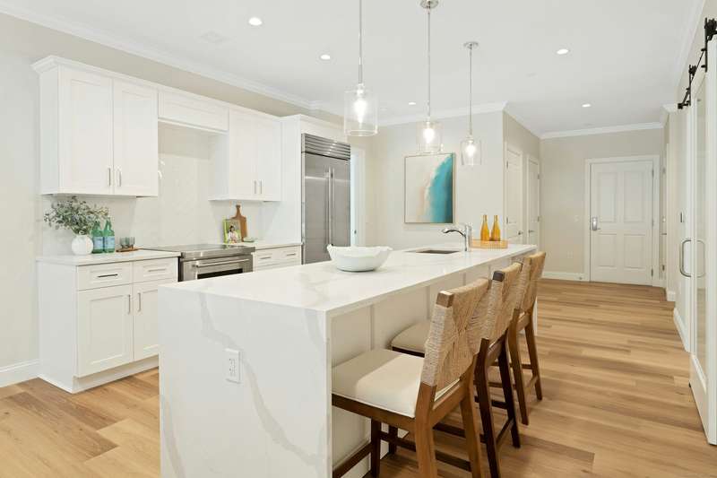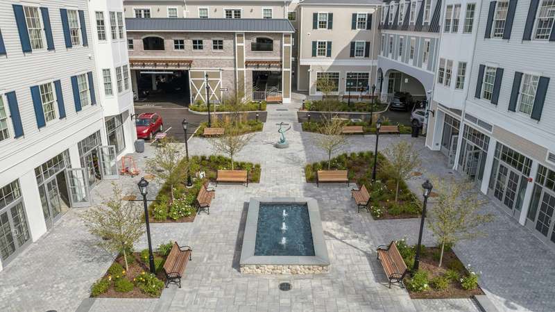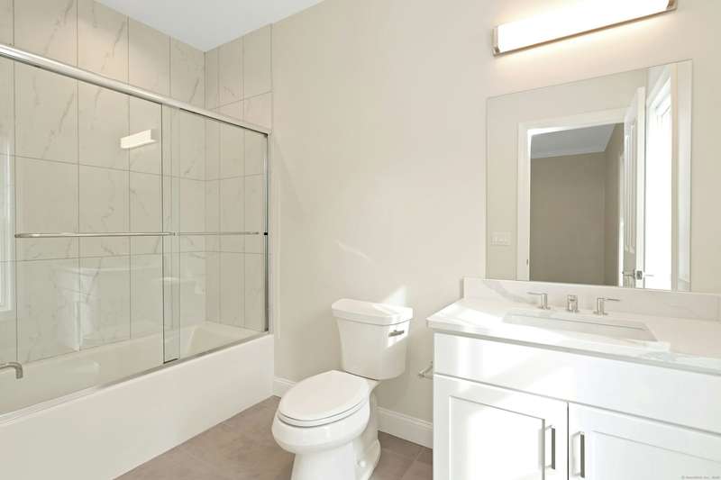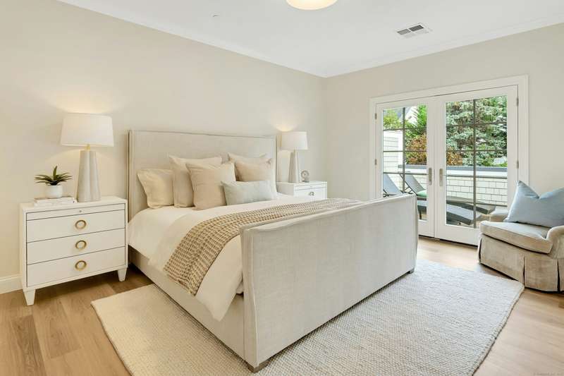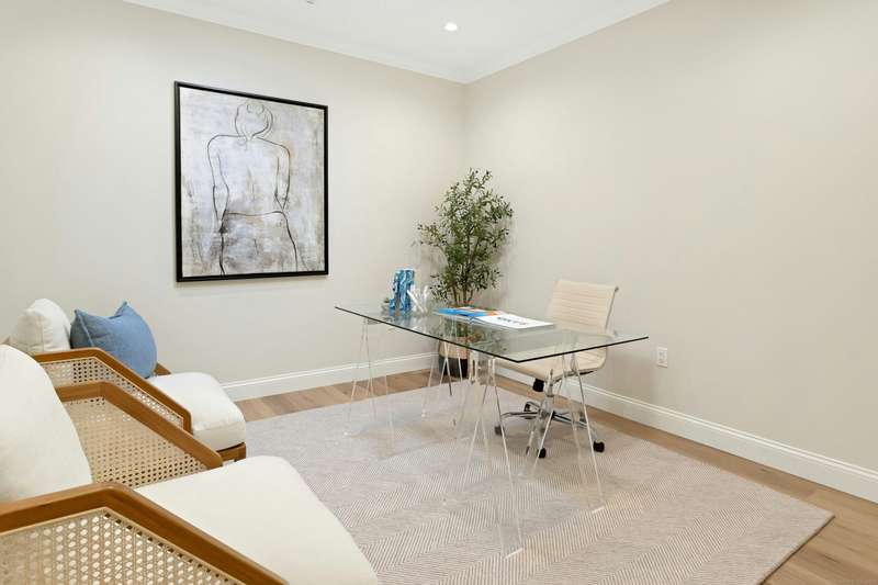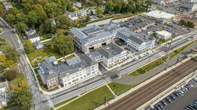Welcome to this expansive 2,000 sq ft corner residence at Heights Crossing-Darien's premier new development offering elevated coastal living across the street from the Metro North station. This 3-bedroom, 3.5-bath home features three private en-suite bedrooms, a dedicated office, and a spacious open-concept layout filled with natural light from skylights and full-sized windows or French doors in every bedroom. The gourmet kitchen is outfitted with Wolf and Subzero appliances, a quartz waterfall island, and flows seamlessly into the living and dining areas, anchored by a gas fireplace and soaring ceilings. Step through French doors in the living room or primary suite to your expansive private patio-perfect for entertaining or unwinding outdoors. A formal foyer, walk-in closets, luxurious baths with separate full-size showers or tub, and an in-unit laundry room with washer and dryer complete the well-appointed interior. Enjoy covered parking, a dedicated storage locker, and access to premium amenities including a fitness and wellness center, golf simulator, breakout office spaces, and a fireside resident lounge and event space. Retail shops, restaurants, a grocery store, and pharmacy are moments away-with Darien's beaches and parks minutes from your front door. Luxury, location, and lifestyle-all in one. Available now.
