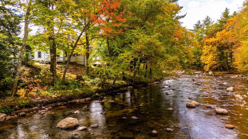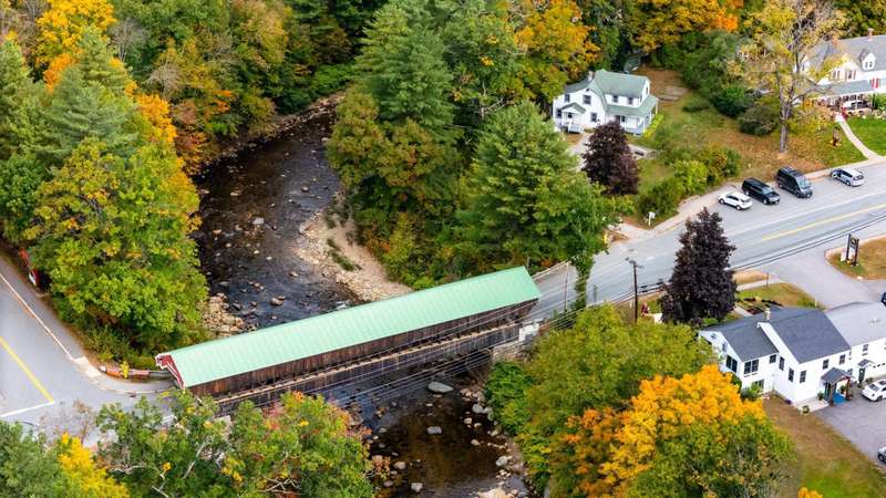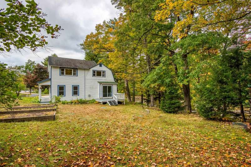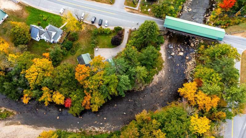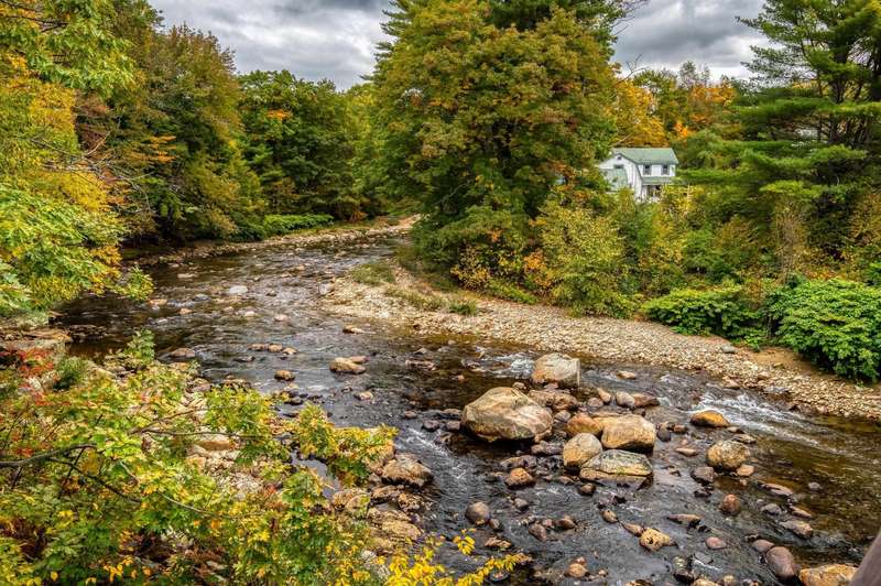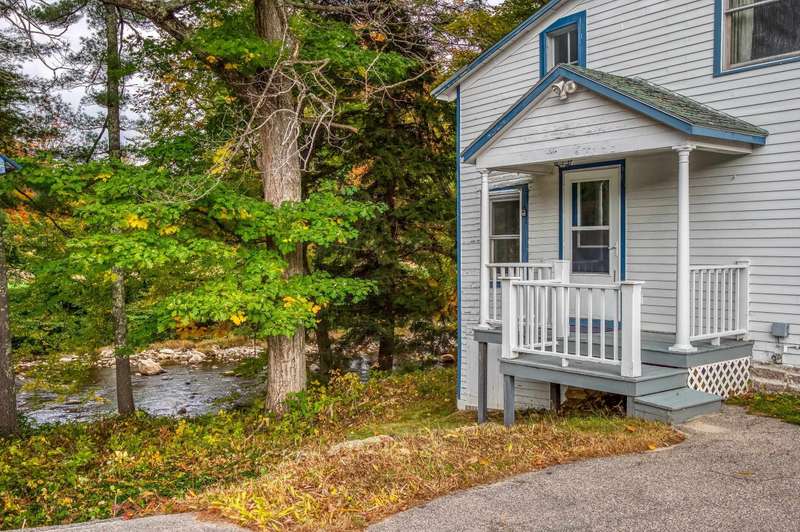 Riverfront in Jackson. Classic cottage overlooking the iconic covered bridge, on the bank of the Ellis River, and the Village Walking Loop. Imagine fly fishing from your own section of the river, splashing in the water on a hot day, strolling to the golf course, restaurants and galleries, enjoying a walk in a town park, or the groomed ski trails of Jackson XC in winter. Inside the classic 1928 cottage, you will find HW floors and views of the river from most rooms. The porch and deck might be the perfect place to watch travelers pass by, or to admire the river. The full basement offers ample storage or room for expansion. A detached 1+ garage could easily be converted to a yoga studio or hobby room. If a lifestyle in the heart of Jackson is what you have desired, look no further.
