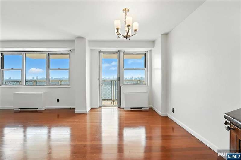 Mint condition corner Apt. with unobstructed views of NYC skyline and Hudson River. Live in luxury in this spacious SE -facing home. The full -amenity high-rise offers a 24/7 concierge, a full equipped GYM,and a heated Olympic -sized pool, and a sprawling promende area perfect for BBQ and outdoor entertaining. This prime location ensures an easy and quick commute to NYC, and is surrounded by a vibrant neighborhood full of upscale restaurants, cafes, health spas and botiques, Trader Joe's, Whole Foods, Mitsuwa and so much more! Short distance to parks, lake, pickleball, basketball and tennis courts. Monthly fee covers all utilities and a parking spot. GYM and cable internet are extra fee.