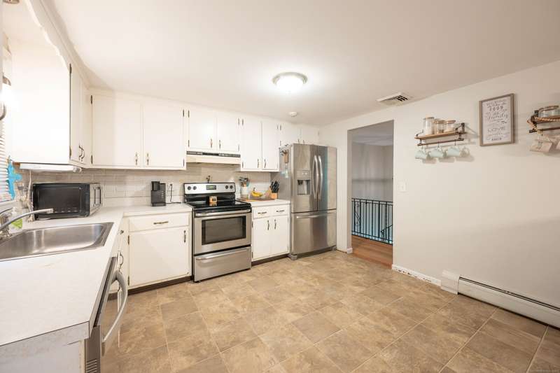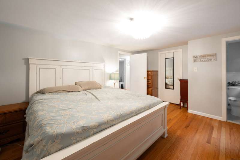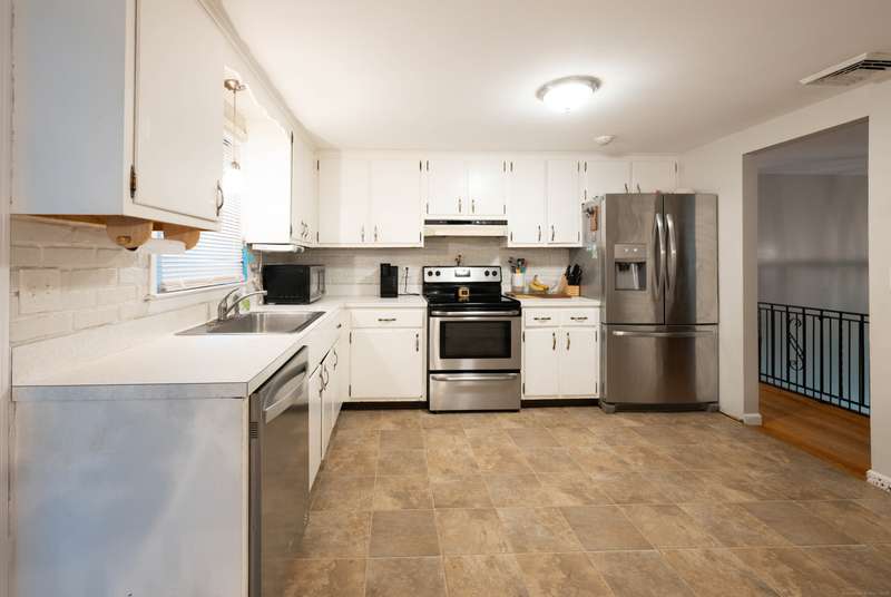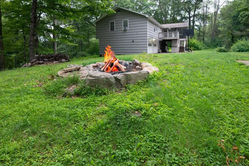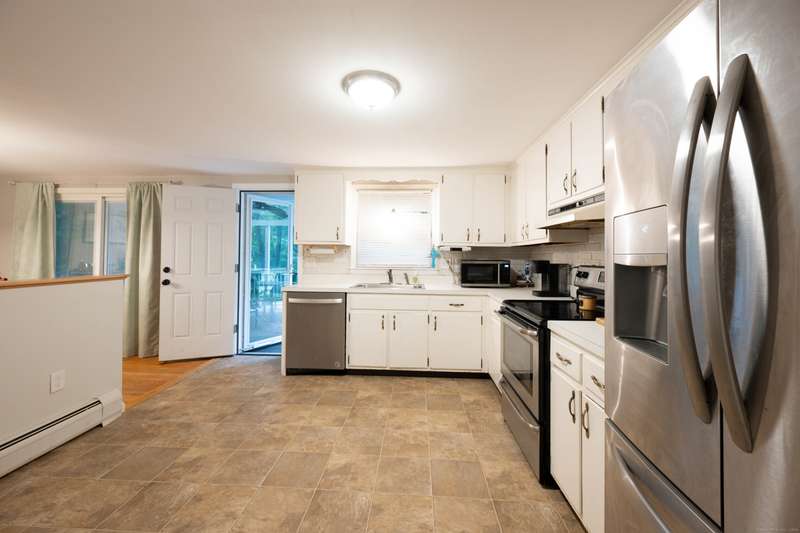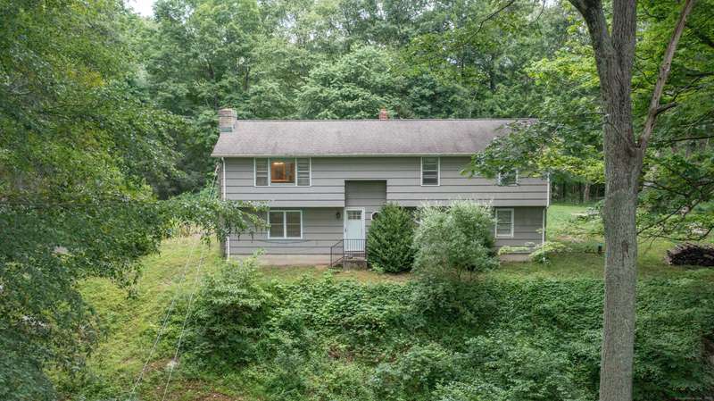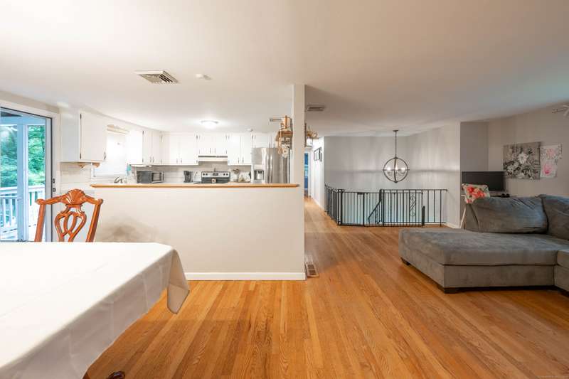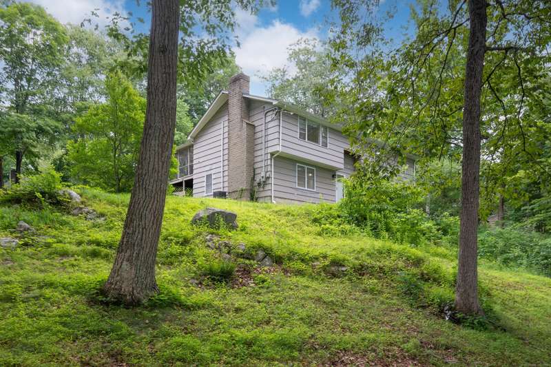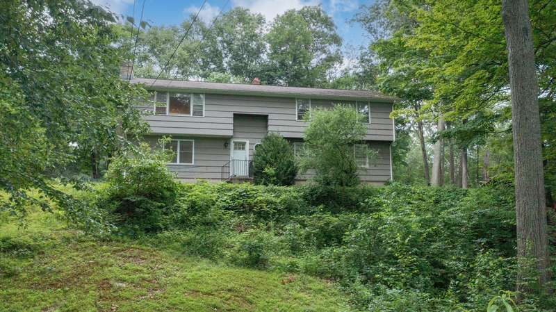 Expansive High Ranch on a secluded lot in a superb commute location! Gorgeous brand new bathrooms and large rooms throughout, with a versatile lower level with full bathroom that could easily function as an in-law suite with no steps. The main level features a large kitchen open to the dining room, with sliders to the beautiful three season screened porch and back deck. There are hardwood floors throughout the main level, with a large living room and three spacious bedrooms. The primary bedroom has a half bathroom and the hall bath has been renovated completely with new tile, flooring and vanity. The lower level has access to the two car garage, a beautiful brand new full bathroom, separate laundry room with barn door and a huge family room space that offers room for entertaining, a home gym, theater or office or a future in-law apartment. The home is set privately on a hillside, protected by trees all around and has a great level back yard space with a stone fire pit, ideal for outdoo