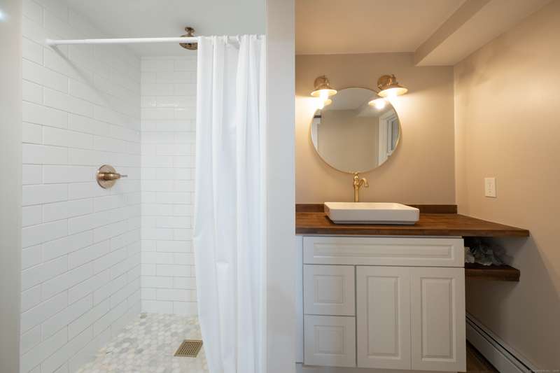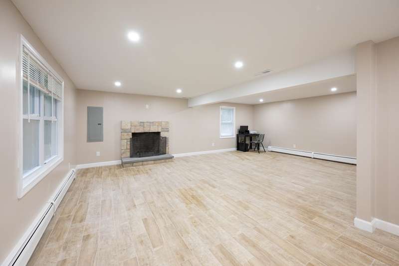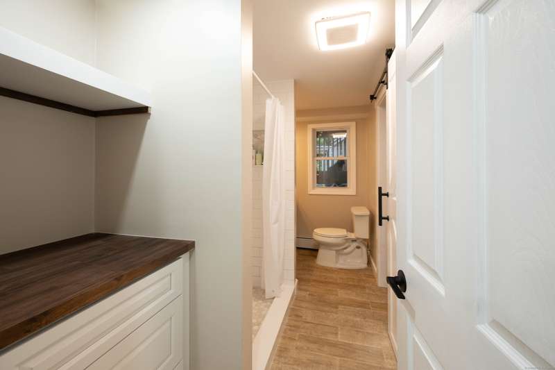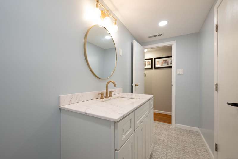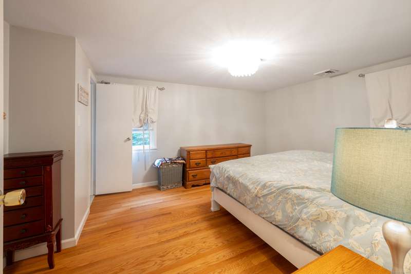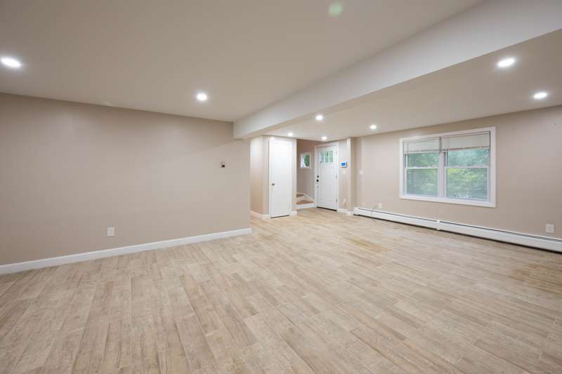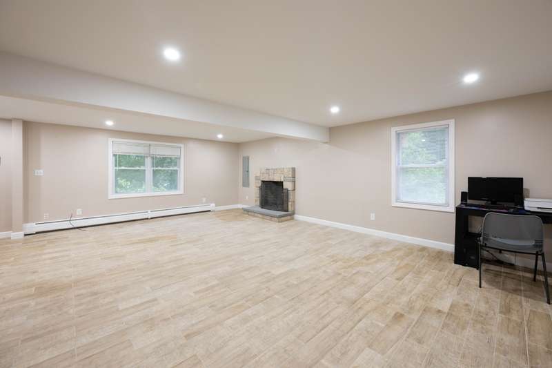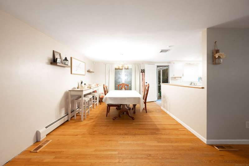 Expansive High Ranch on a secluded lot in a superb commute location! Gorgeous brand new bathrooms and large rooms throughout, with a versatile lower level with full bathroom that could easily function as an in-law suite with no steps. The main level features a large kitchen open to the dining room, with sliders to the beautiful three season screened porch and back deck. There are hardwood floors throughout the main level, with a large living room and three spacious bedrooms. The primary bedroom has a half bathroom and the hall bath has been renovated completely with new tile, flooring and vanity. The lower level has access to the two car garage, a beautiful brand new full bathroom, separate laundry room with barn door and a huge family room space that offers room for entertaining, a home gym, theater or office or a future in-law apartment. The home is set privately on a hillside, protected by trees all around and has a great level back yard space with a stone fire pit, ideal for outdoo