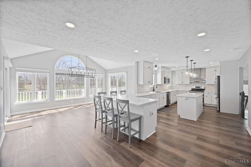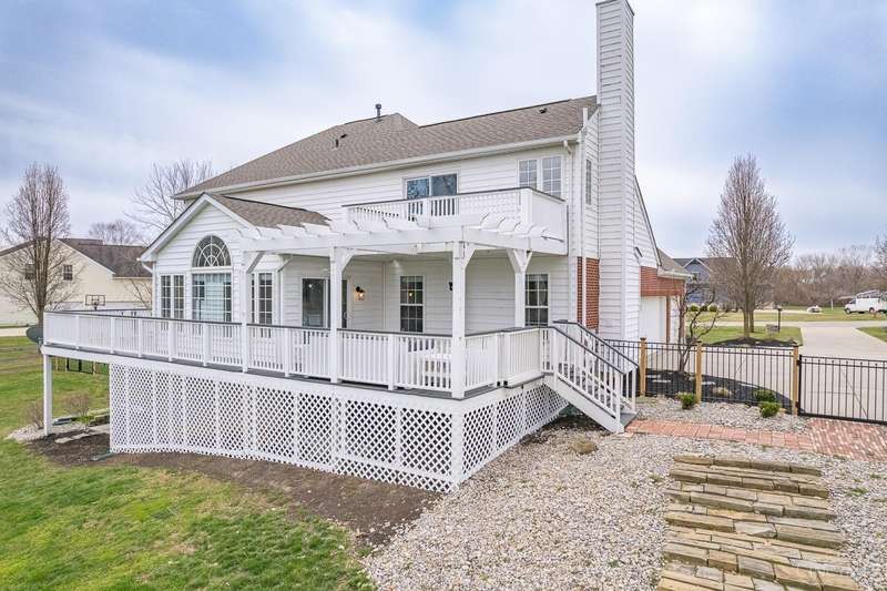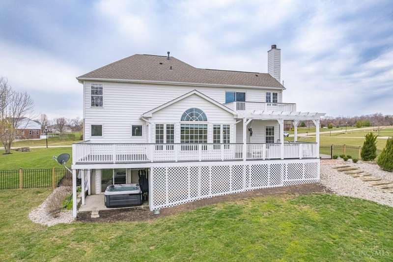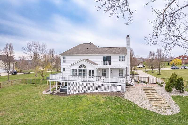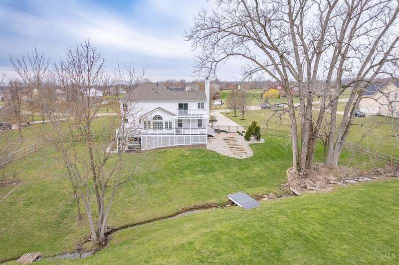 Video Walk Through Worth The Watch! 5 Bed/3.5 Bath sits on 1.5 acres within Silver Lake Subdivision in Waynesville. Springboro School District. Annual HOA $610. Nearly 3,500 Sq Ft (2,454 Above Grade/1,206 Below Grade). Flooded with natural light, the spacious eat-in kitchen is flanked with two walks outs, both leading to the sprawling deck with pergola. Second floor primary bedroom with ensuite bath walks out to private deck overlooking serene landscape, creek and pond. Finished Lower Level walks out to covered patio with hot tub and includes 5th bedroom, full bath, flex room (possible 6th bedroom), rec room & theater room with seating for 6. 1st Floor centrally located Laundry. 3 Car Garage. Fenced back yard (2025) with Fire Pit. Fresh Paint (2025), Carpet (2025), Lower Level Flooring/Carpet (2025), Lower Level receptacles/switches (2025)