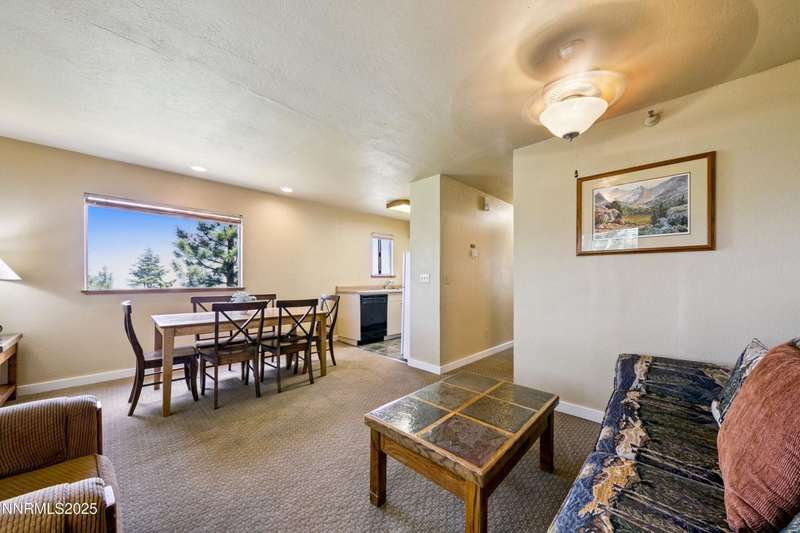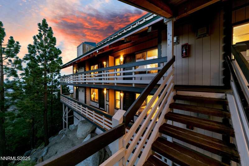 Fantastic value and priced to sell for this fully furnished, two bedroom, one bath unit in a brand new development, called 305 Galaxy Lane, HOA. Located in a very private setting, this eight plex, has panoramic forest views, with even some views of the Carson Valley. The unit has a gas log fireplace in living room with ceiling fan, stackable washer/dryer in bedroom closet. Thermostat in hallway works fireplace. Each bedroom has it's own thermostat with electric baseboard heat. Other features include individually wired Wi-Fi, fire sprinkler system, freshly painted exterior and stair case, metal roof, & ski locker for each unit near loading zone. Parking is located in nearby common Tahoe Village parking lot. Tahoe Village HOA covers trash (located in parking lot), cable TV, snow removal for all common areas and streets. Tahoe Village is also the beneficiary of a brand new community pool and clubhouse, currently under construction, and paid for by the 323 Peak Development project. Located within walking distance to Heavenly Valley's Stagecoach Ski Lift, as well as the local bar/grill, The Fox and Hound and mini market. Close to miles of hiking and biking trails, including the Tahoe Rim Trail. Perfect for a low priced NV address, a short term rental or second home getaway.