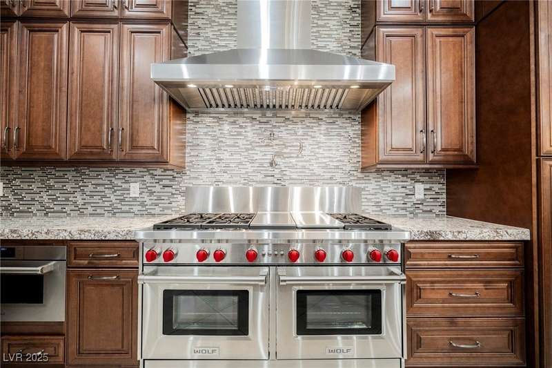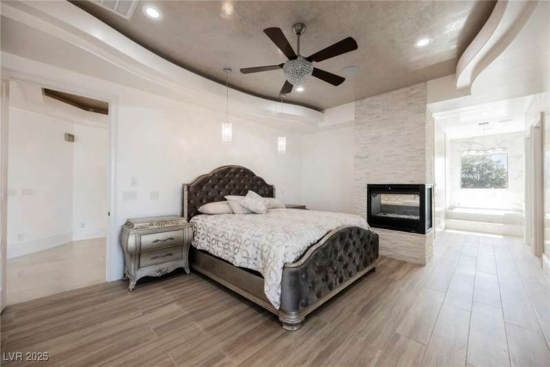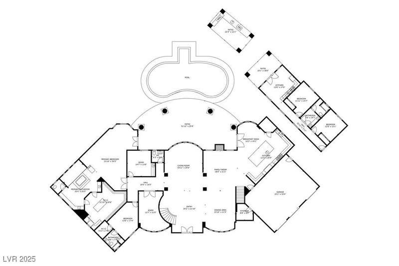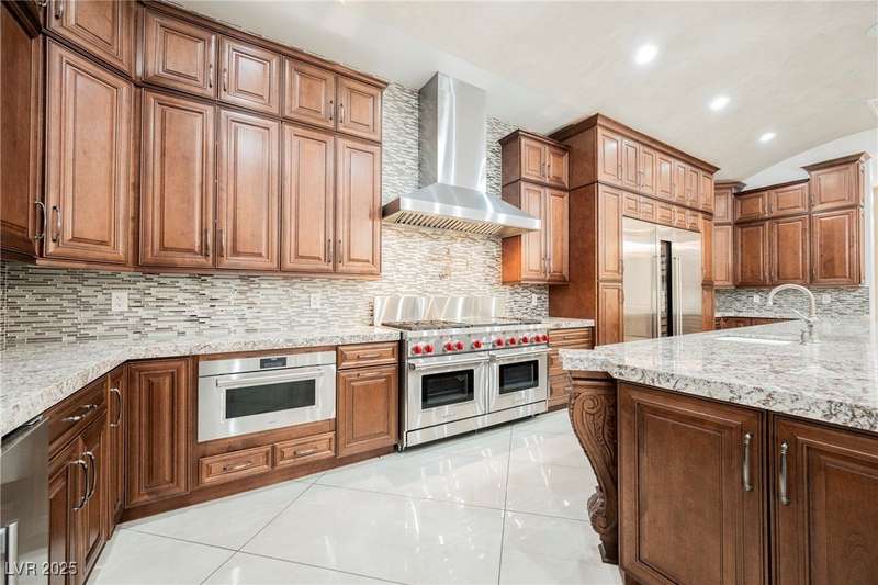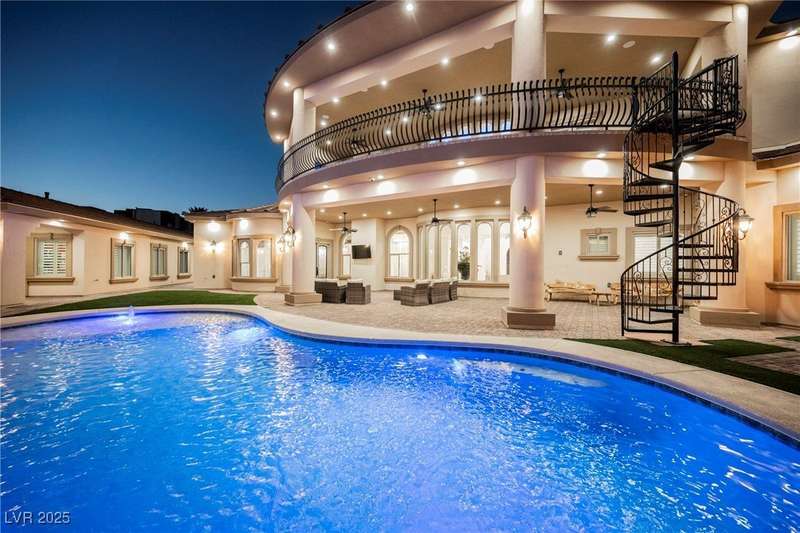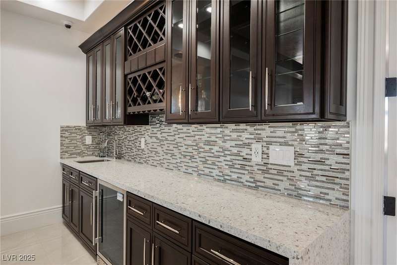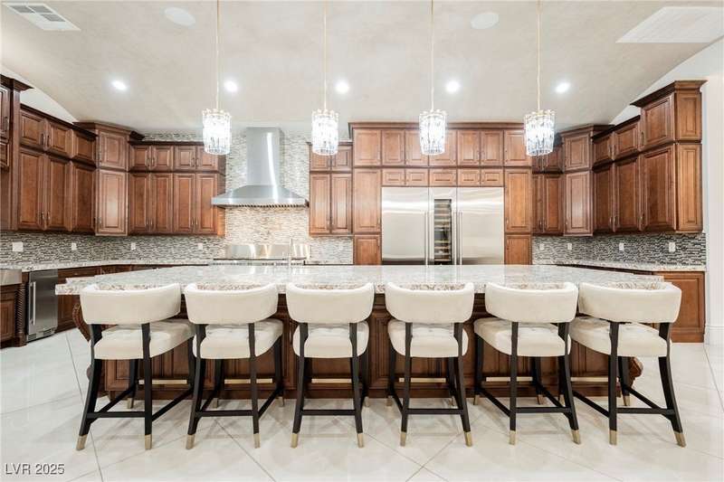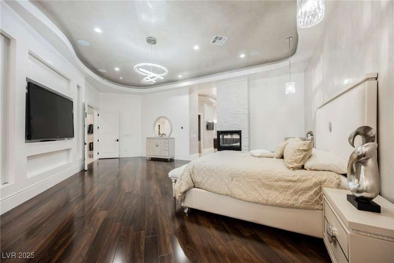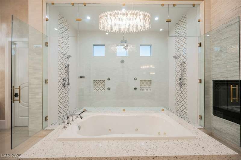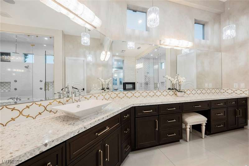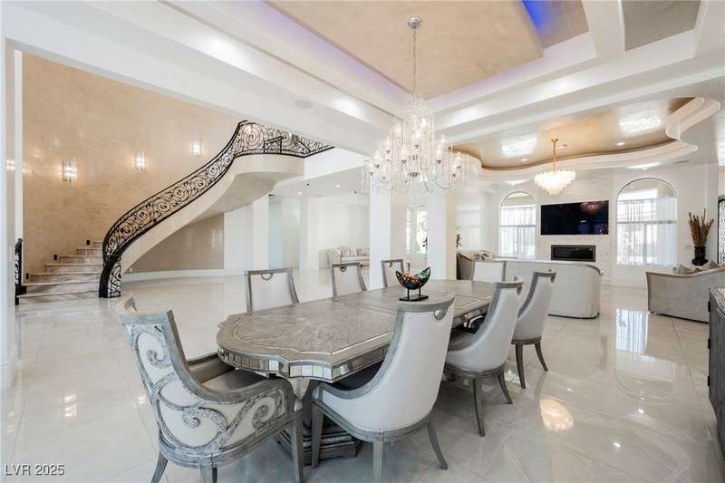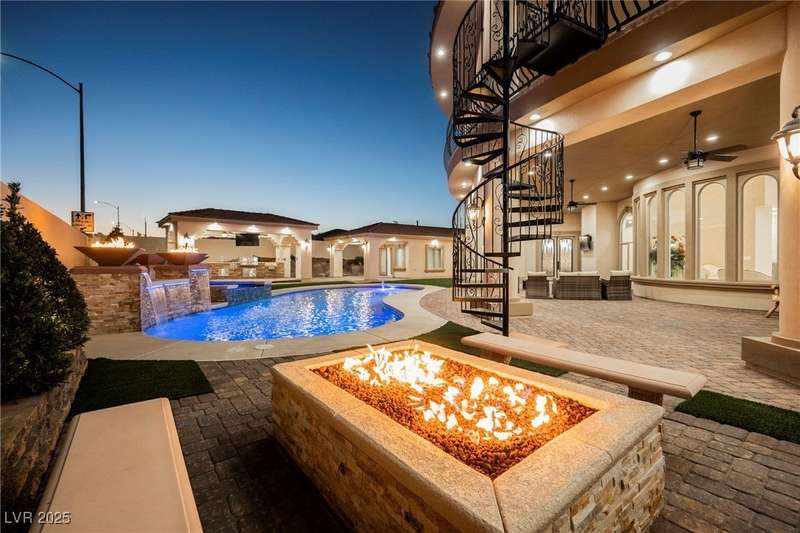 Extraordinary custom home that takes luxury living to the next level. This home boasts over 9000 sq.ft of lavish living space between the main house and guest house. The gourmet kitchen features Commercial Wolf appliances, custom cabinets and custom pantry. Primary Suite with fireplace, a spa like bathroom and custom closet with a washer and dryer inside. All the bedrooms feature en suite bathrooms and walk in closets. 2 dens downstairs perfect for office and or a fitness room. Custom Venetian plaster walls and ceiling accents throughout. LED accent lighting and chandeliers throughout. Dual staircases to upstairs and loft with wet bar and a theater room. Private Casita/guest house with two bedrooms a full kitchen and 2 car garage. Backyard paradise with huge patio overlooking the stunning pool and spa with 4 fire bowls and waterfall features. Outdoor kitchen with bar, grill, refrigerator and granite counters. There is over 2000sf of covered outdoor living space and a 5 car garage.