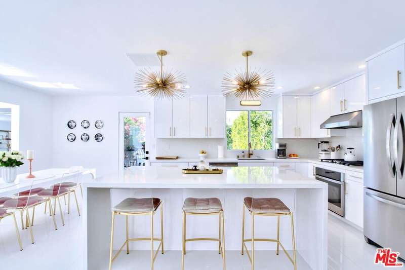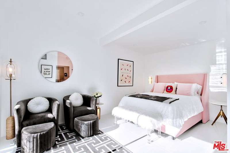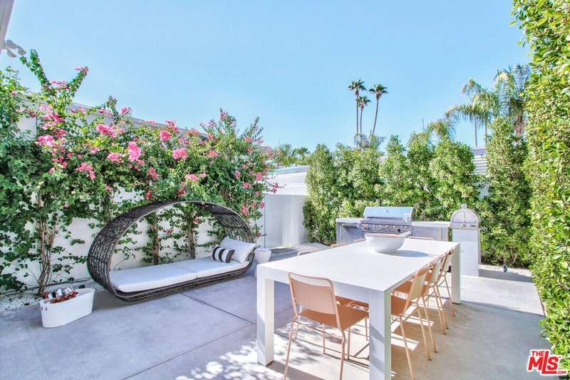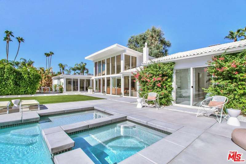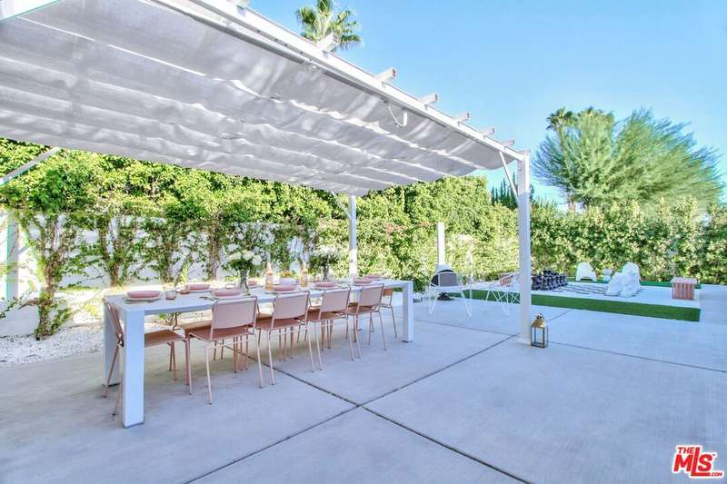 Behind iconic mid-century pink doors, this completely private, walled and gated estate has been meticulously transformed by an award-winning designer. Spanning a generous footprint, the property offers every luxury amenity imaginable: a modern saltwater pool with integrated spa, expansive lawns, mature fruit trees, lush landscaping framed by tall ficus hedges, a natural gas barbecue, fire table, outdoor shower, bocce and chess courts, pergolas, multiple lounge and entertainment areas. Panoramic mountain views steal the show from nearly every vantage point, especially through the dramatic double height windows soaring above the main living area. Sunlight pours into the open concept floor plan, where lofty ceilings and seamless indoor/outdoor flow create an effortless sense of resort living. The showpiece all white gourmet kitchen boasts sleek custom cabinetry and a striking waterfall island that seats eight, ideal for gathering and hosting. A fully equipped second chef's kitchen stands ready for large scale entertaining. The spacious dining area accommodates twelve, complemented by a breakfast nook for eight and three al fresco dining sites, perfectly positioned for effortless service from both kitchens. The primary suite is a serene private escape, featuring an oversized en-suite with double rain shower, dual vanity, and private entry. Additional generously sized guest suites each offer their own en-suite bath for comfort and privacy. A detached casita complete with its own bath and patio provides a versatile retreat for visitors, work or wellness. This coveted property is fee simple (you own the land) with no HOA and no power lines interrupting the spectacular views. Proven as an income producing "event home," it has served as a backdrop for weddings, fashion shoots, brand activations and has been featured in HGTV, Hello! and Palm Springs Life magazines. Located in the heart of Palm Springs, this five star estate perfectly blends style, privacy and unforgettable desert living.