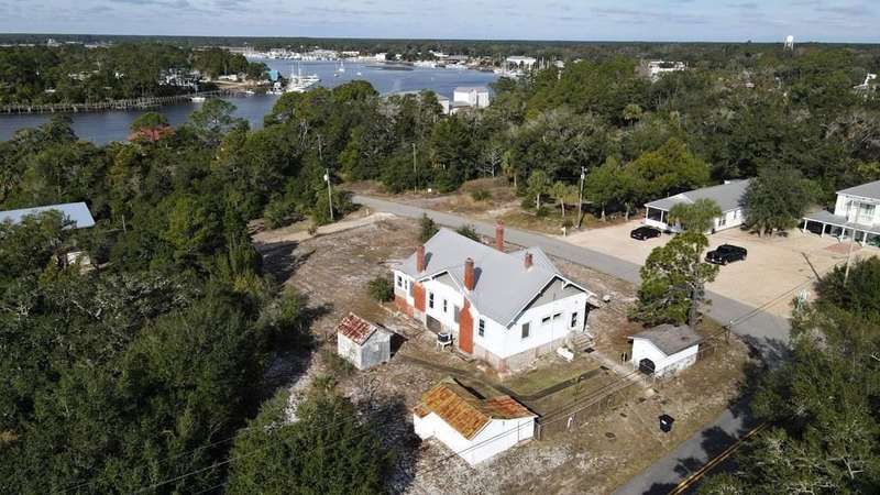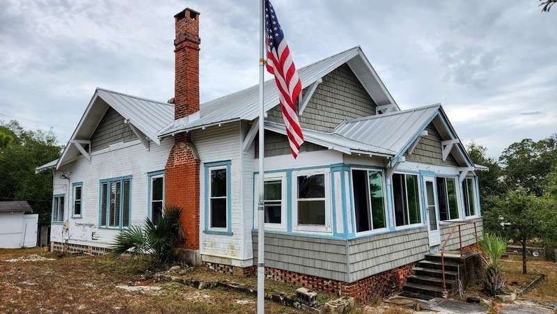 This Charming 1910 Home in Downtown Carrabelle needs some TLC. Located in an X Flood Zone , high on a sand hill, with limited views othe the river. Discover the elegance of yesteryear in this beautiful 1910 home, ideally located on a spacious parcel within easy walking distance of downtown Carrabelle. This residence boasts: Elegant Architecture: Ten-foot ceilings and wide doorways throughout, preserving the grandeur of the early 20th century. Historical Details: Some original woodwork and cabinetry that add a touch of vintage charm, ready for your personal touch. Modern Comforts: Central heating and air conditioning, along with ceiling fans, ensure year-round comfort. Cozy Fireplaces: Enjoy the ambiance of two fireplaces—one in the living area and one in the main bedroom. Additional Features: Several outbuildings for extra storage or projects. This home offers a blend of historic charm and modern convenience, making it a unique opportunity for those who appreciate classic architecture with the benefits of contemporary living. This property needs some TLC, take a look today ! !