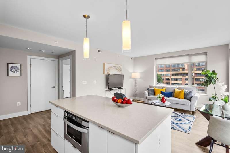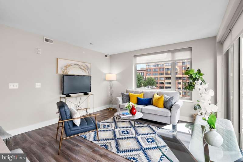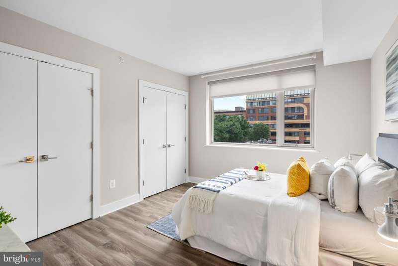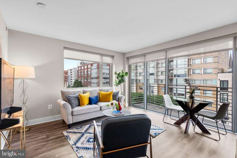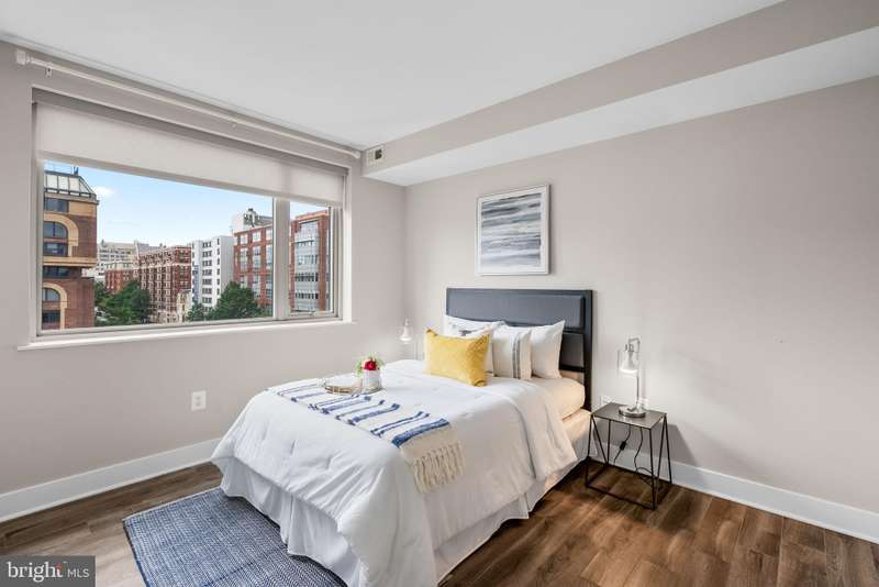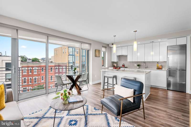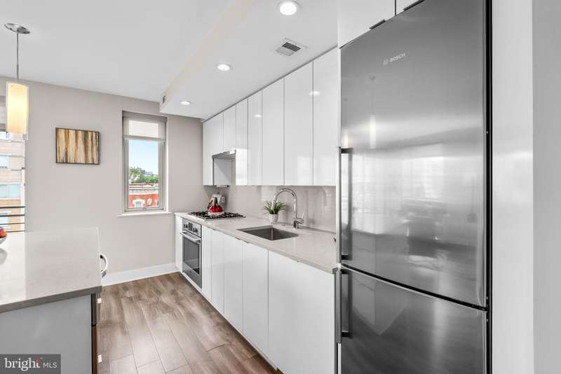 Stunning Corner Unit in Coveted Logan13* Welcome to this beautifully designed condo in one of DC's most sought-after boutique buildings. From the stylish lobby to the convenient elevator access, every detail of Logan13 exudes modern urban living. This sunlit corner unit is wrapped in walls of windows and features wide-plank LVP flooring throughout. The open Living Room and Dining Room layout is perfect for entertaining, flowing seamlessly into the sleek Euro-style center island kitchen-ideal for barstools and casual gatherings. The kitchen boasts a striking quartzite countertop, Bosch gas cooktop and wall oven, Bosch refrigerator, stainless steel undermount sink, and eye-catching pendant lighting. Step outside onto your private balcony and take in the beautiful views, or head to the building's rooftop deck for even more outdoor space to relax (and grill) and enjoy the city skyline. The spacious bedroom offers double closets with custom organizers. The luxurious full bath features a floating vanity, upgraded floor tile, and a designer tub/shower surround. Additional highlights include an in-unit Bosch washer and dryer, one assigned garage parking space (no more parking headaches!), and an unbeatable location just steps to Whole Foods, Trader Joe's, 14th Street's vibrant dining scene, shops, and Metro. Urban living at its finest in Logan Circle!