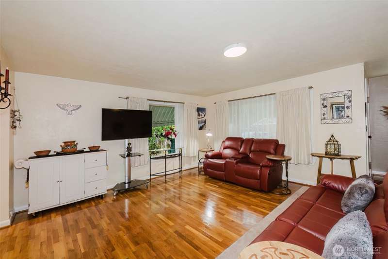 Beautiful Mid-Century Modern home in the coveted Rocky Point neighborhood! This charming 2-bedroom, 1-bath gem features a versatile bonus/flex room and is situated on a large, level lot. Thoughtfully updated while preserving its original charm, with stunning refinished hardwood floors, fresh interior paint, newer roof, double-pane windows, and an newer economic gas furnace and newer water heater. Enjoy newer stainless-steel appliances and abundant natural light throughout. The deep driveway, detached garage, and carport provide ample parking. Mature landscaping with fruit trees—pear, plum, peach, fig, and a multi-graft apple tree—create a serene setting. Don’t miss this opportunity to own a true Bremerton classic!