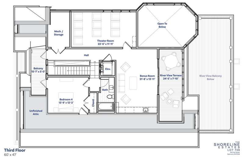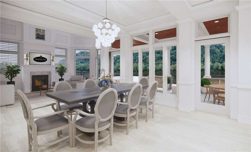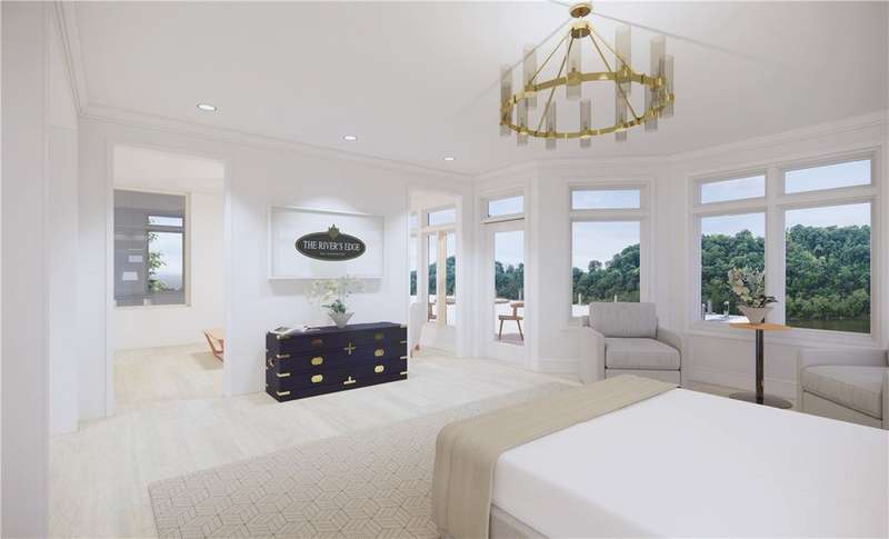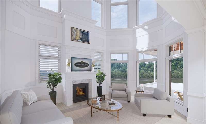 Final opportunity to own a Shoreline home at The River's Edge of Oakmont! This is the last one and it's located on the second-largest Shoreline lot in this exceptional riverfront community. Elevated above the water's edge of the Allegheny River, the Shoreline homes boast breathtaking views from expansive windows, glass doors, spacious porches, and private decks. Currently under construction, this home gives buyers the opportunity to make interior selections & truly customize the home. Thoughtful design details include in-home elevator for easy access to all levels; 10-ft ceilings on main level; wide-plank wood flooring; coffered ceiling and a built-in bar in dining area; open-concept kitchen w/ large island; and a luxurious primary suite overlooking the water. The River's Edge amenities include the residents' clubhouse with fitness center, and infinity pool. The HOA takes care of lawn care, common areas, & snow removal for stress-free living.Renderings for marketing purposes only.